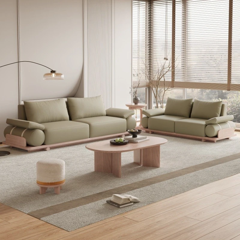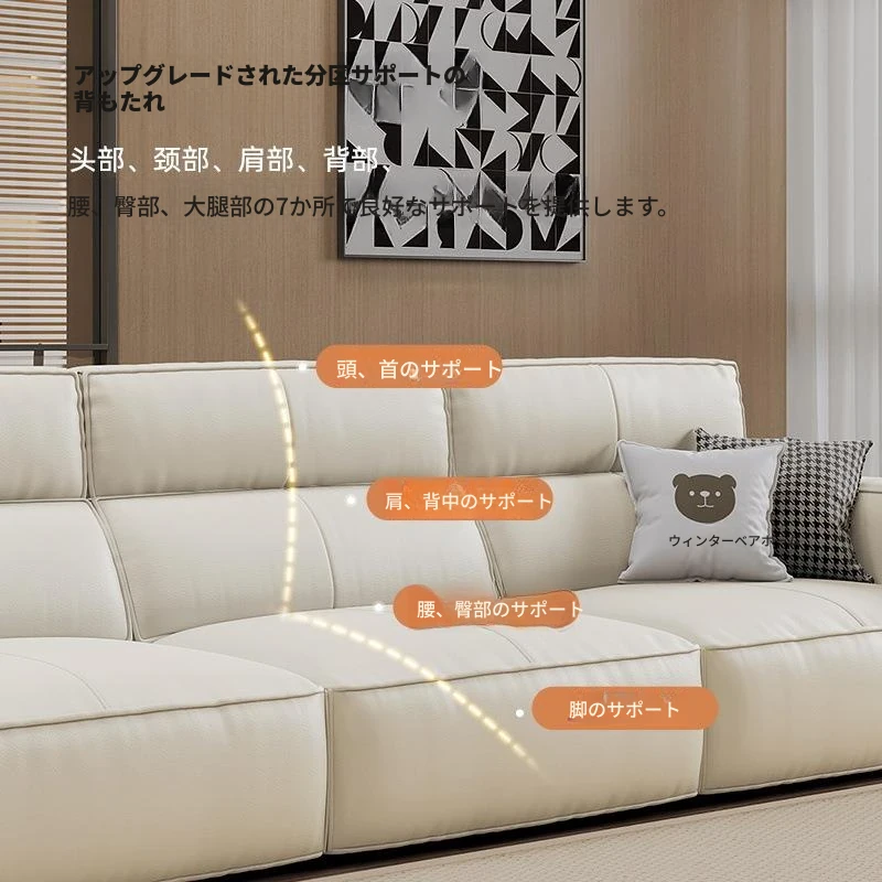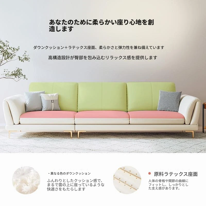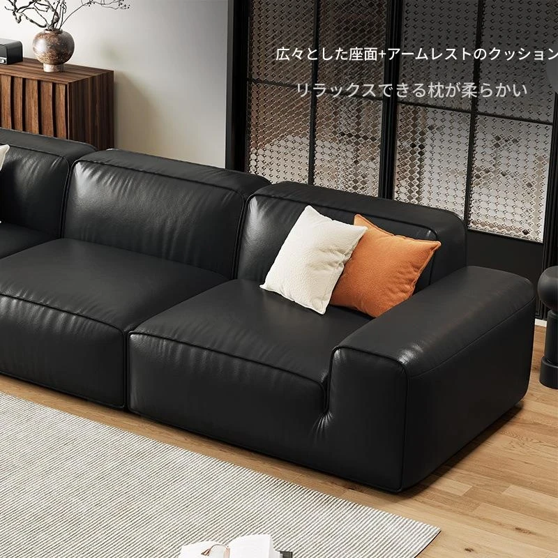 イタリアンミニマル本革ソファー|クリーミーな風合いのシンプルでラグジュアリーなデザイン|小型住宅に最適なストレートレイアウト・ラテックス真皮ソファ