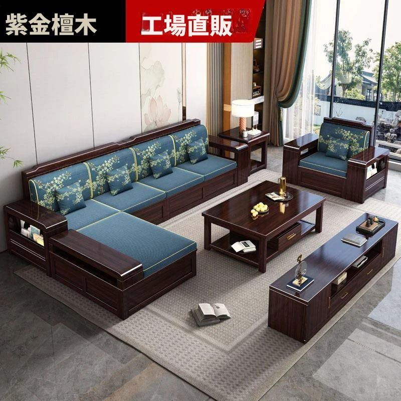 現代中式紅檀木ソファー - シンプルでラグジュアリーなスタイルの実木リビング家具、貴妃型コンビネーションソファーをメーカー直販でお届け!あなたの居間に上質な風格を。