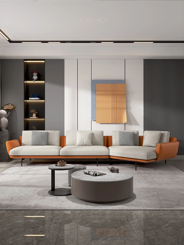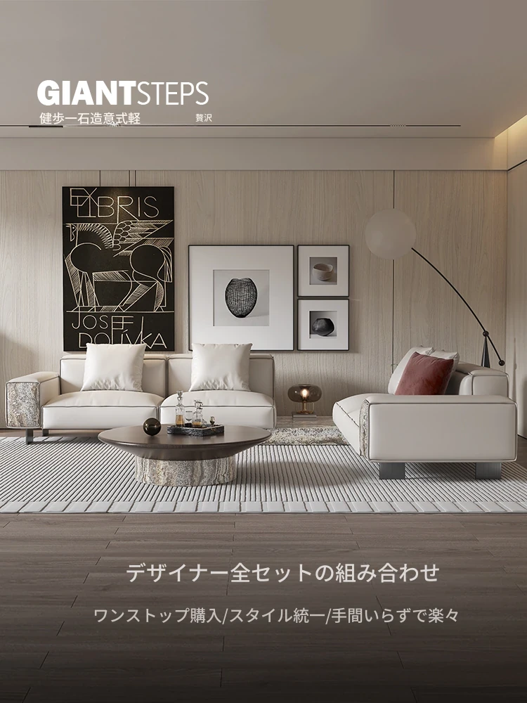 シンプルで洗練されたイタリア直輸入ブランドの軽奢華ソファ|本革製・モダンデザインのクリエイティブな家具で、あなたのリビングルームをスタイリッシュに演出します!