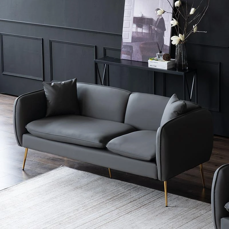 イタリアングレー本革ソファ 小型リビング向け 高級革使用 モダンシンプルなデザイン エレガントなライトラグジュアリーソファセットで、あなたの空間をスタイリッシュに演出します!