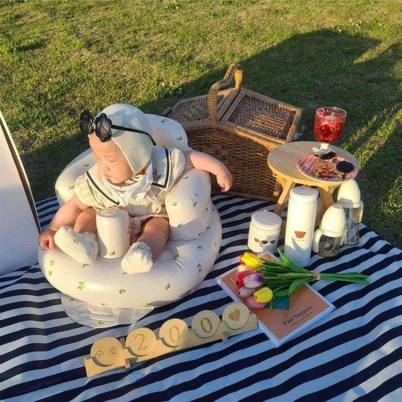 赤ちゃんのための学習用座椅子!お出かけに最適な充気ソファ。生後100日のお祝いにもぴったりな子供用玩具。持ち運びに便利なデザインで、楽しく安全に座る練習ができます。