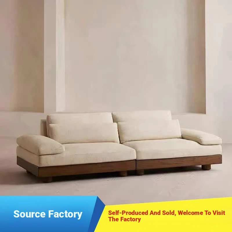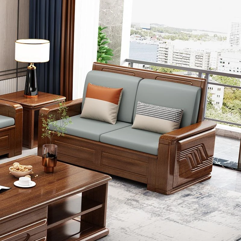 Walnut Solid Wood Sofa Set for Small Living Rooms - Versatile Chinese Style Chaise Lounge with Storage, Perfect for Year-Round Comfort