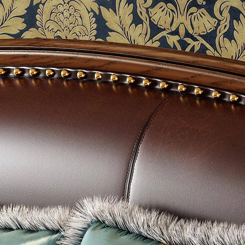 Luxury European Leather Sofa Set for High-End Villas - Exquisite Solid Wood Carving, Elegant Red Sandalwood Finish, Complete American Style Furniture Combination (123)