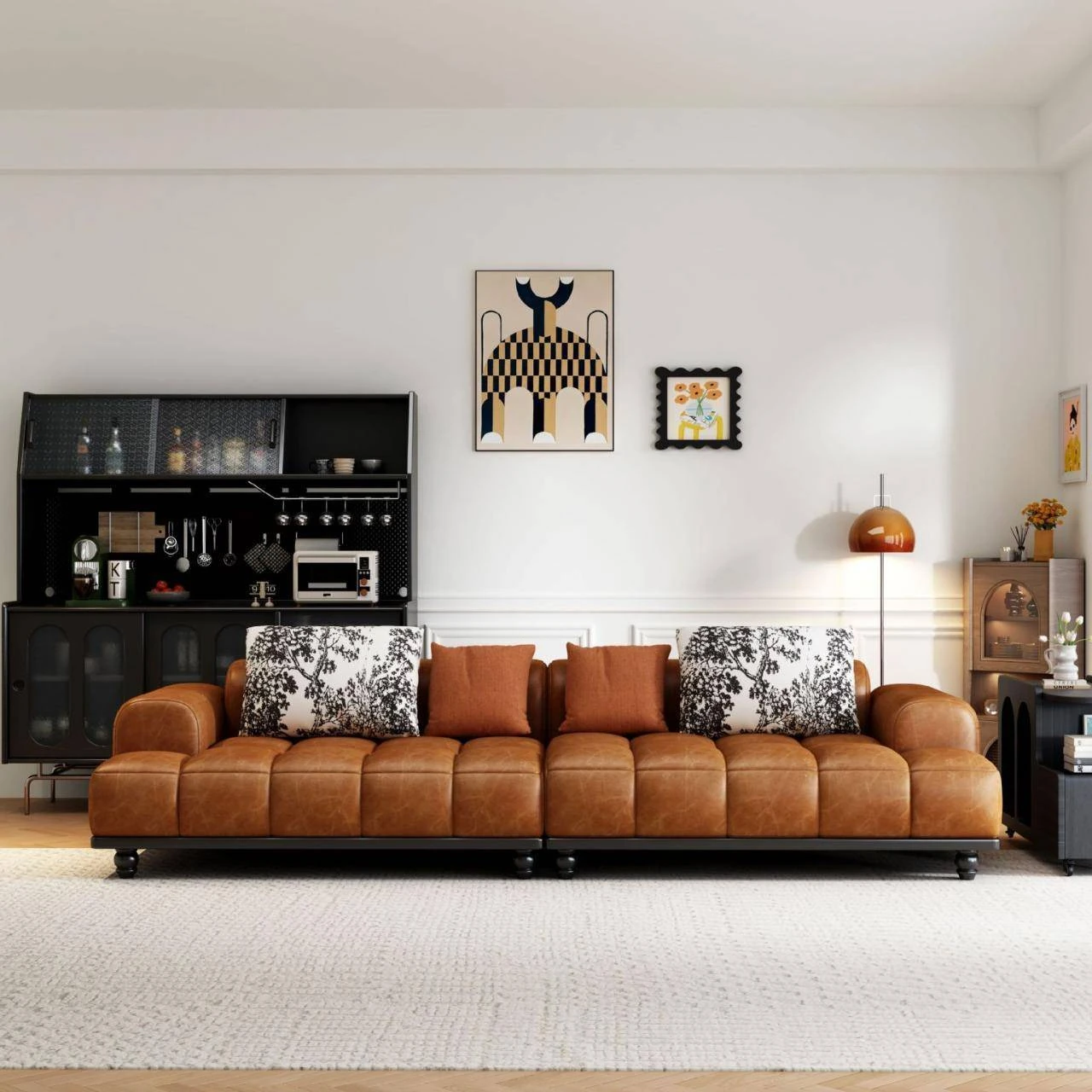 Italian Minimalist Genuine Leather Sofa - Rocci Castle Scenario - Spacious Design for Villas and Large Living Rooms with Adjustable Depth for Maximum Comfort