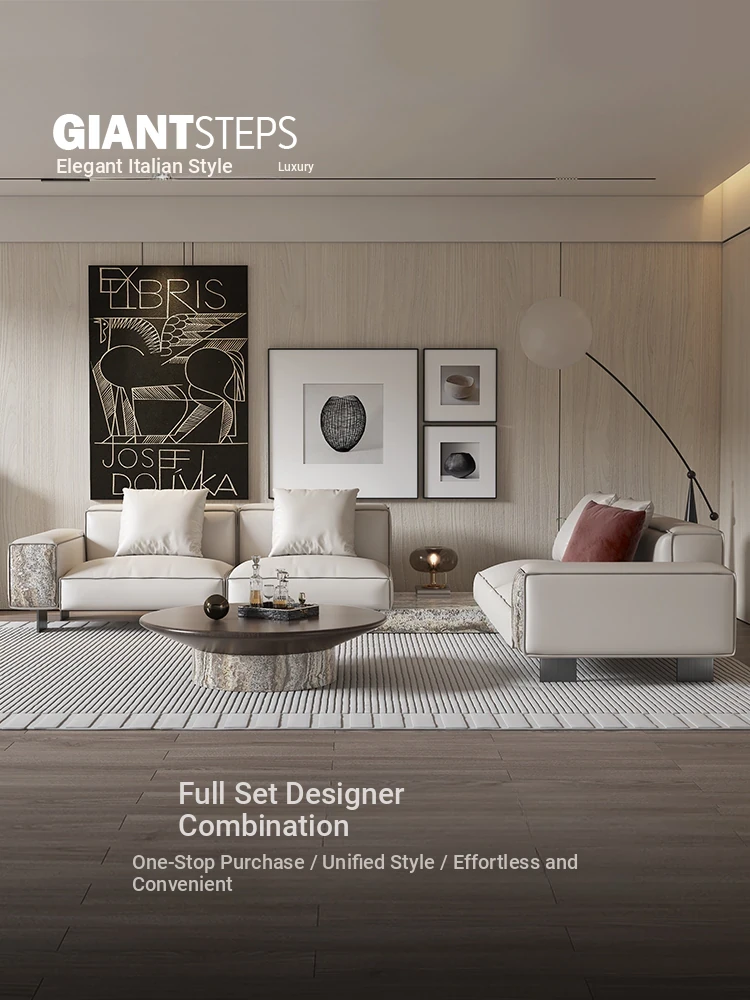 2025 New Luxury Italian Minimalist Genuine Leather Sofa - Modern Modular Furniture for an Upscale Living Room Setup