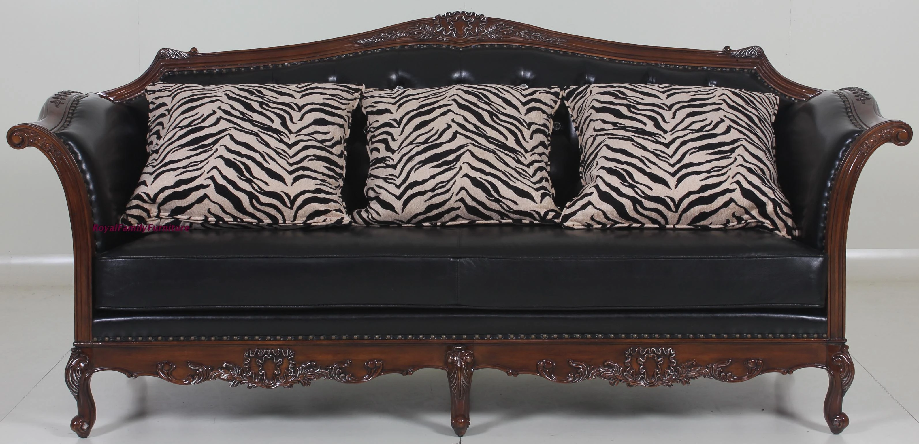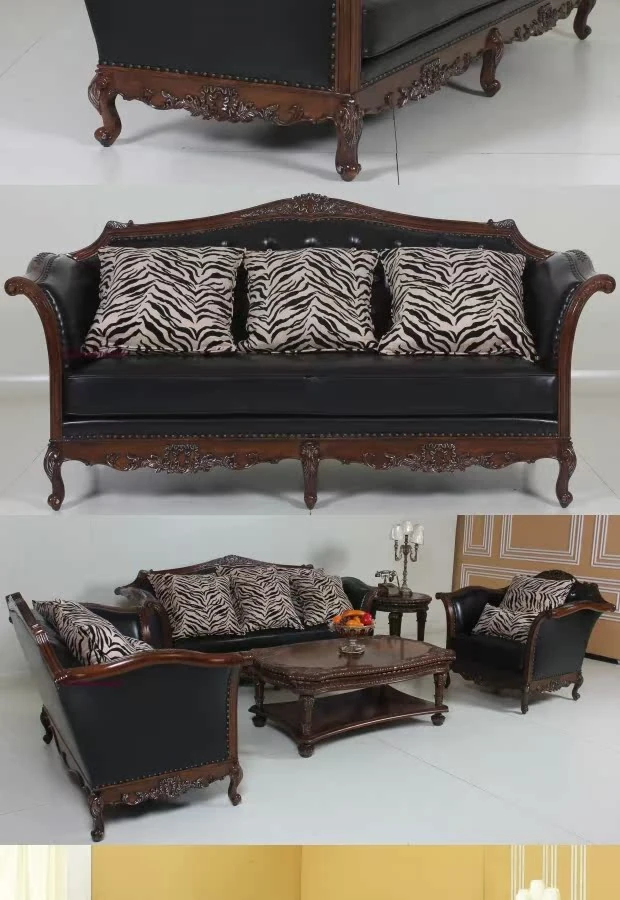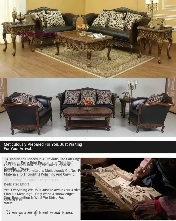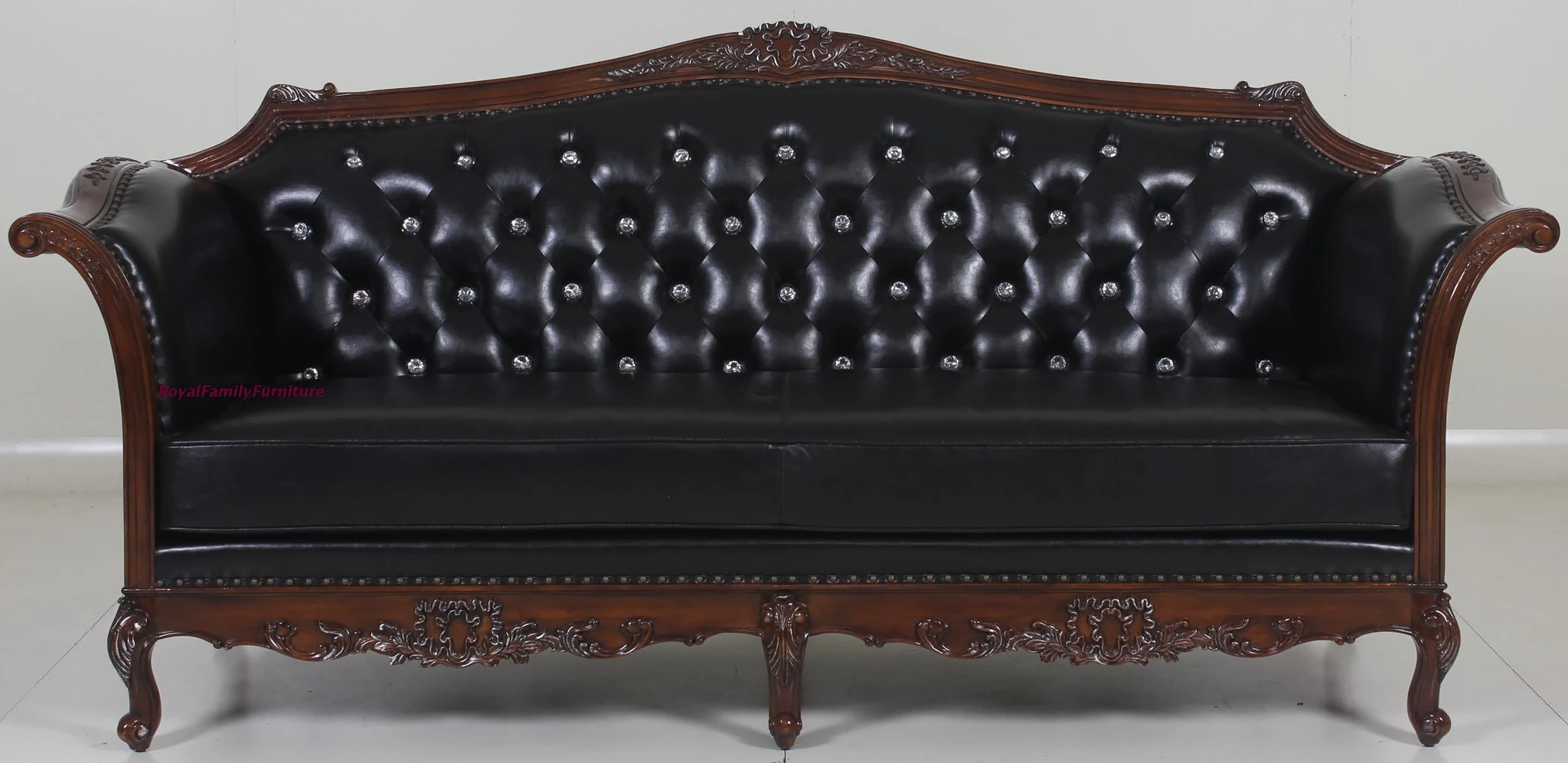 Authentic American Export Furniture: 2.3m Solid Wood Carved Leather Buttoned Sofa Set for Living Room - Ready to Ship!