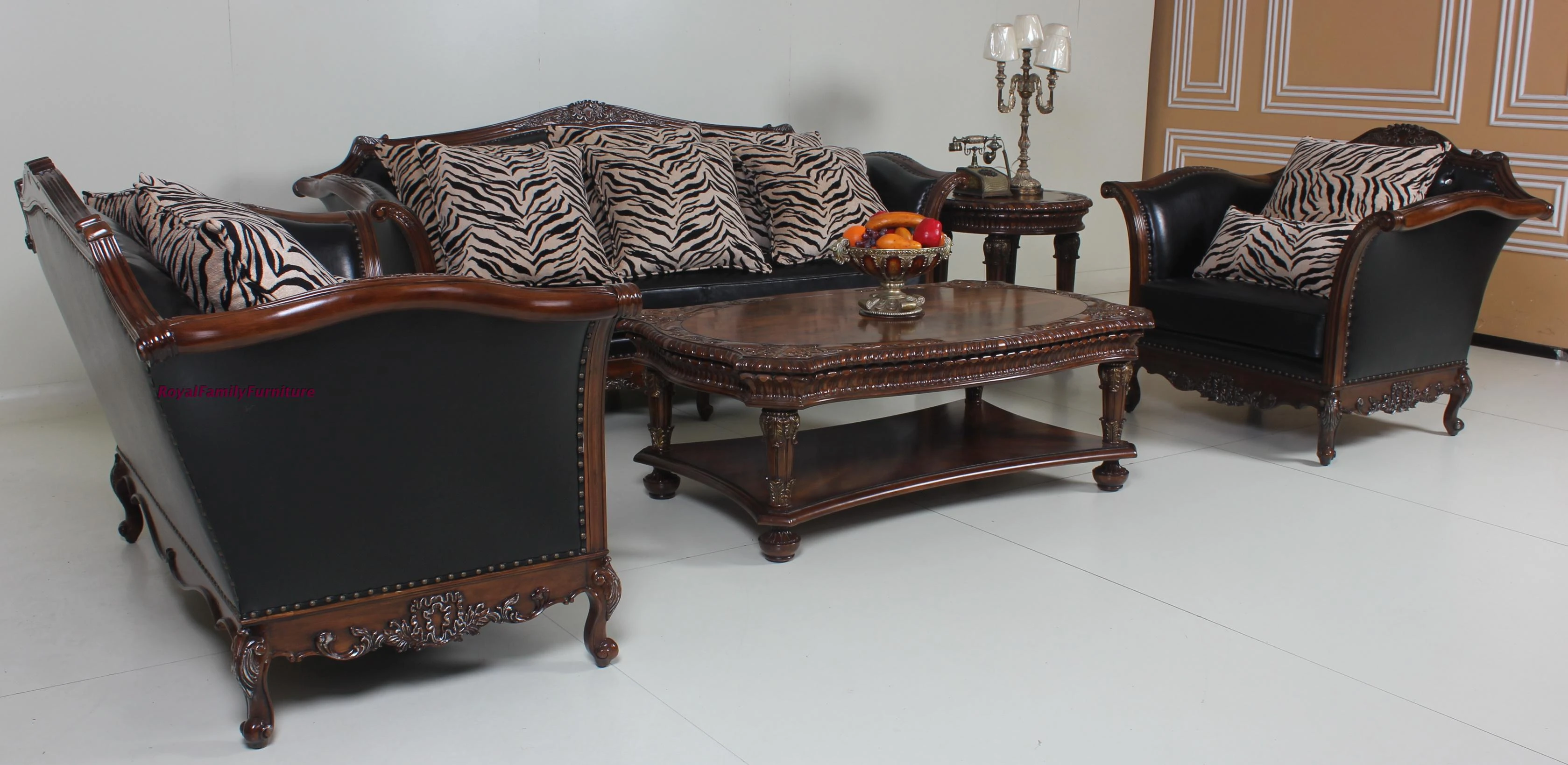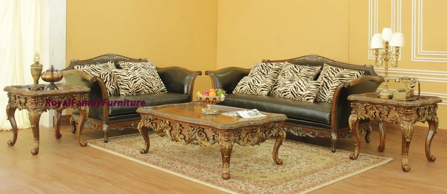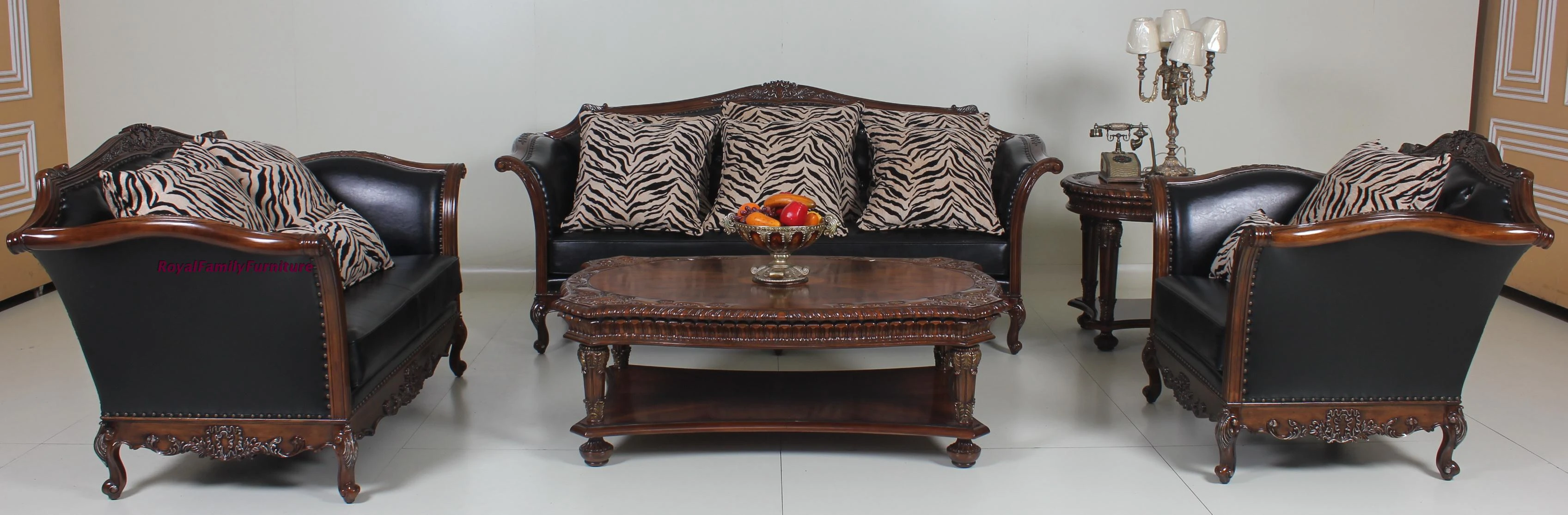 Authentic American Export Furniture: 2.3m Solid Wood Carved Leather Buttoned Sofa Set for Living Room - Ready to Ship!