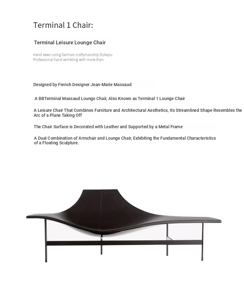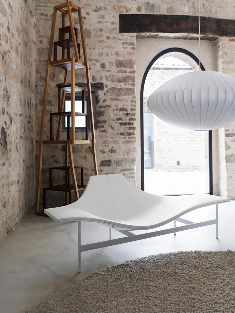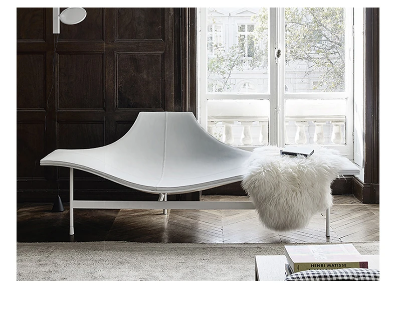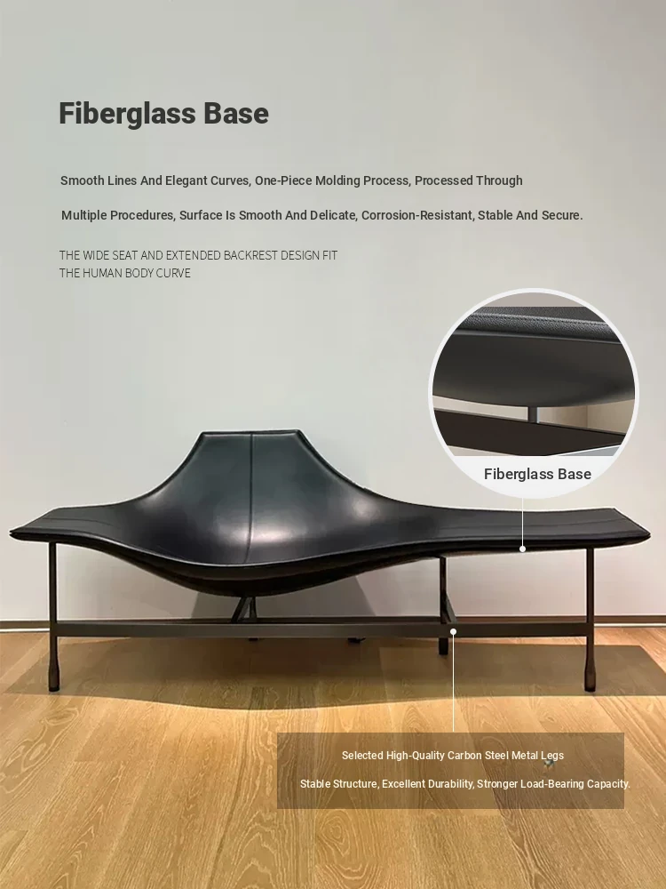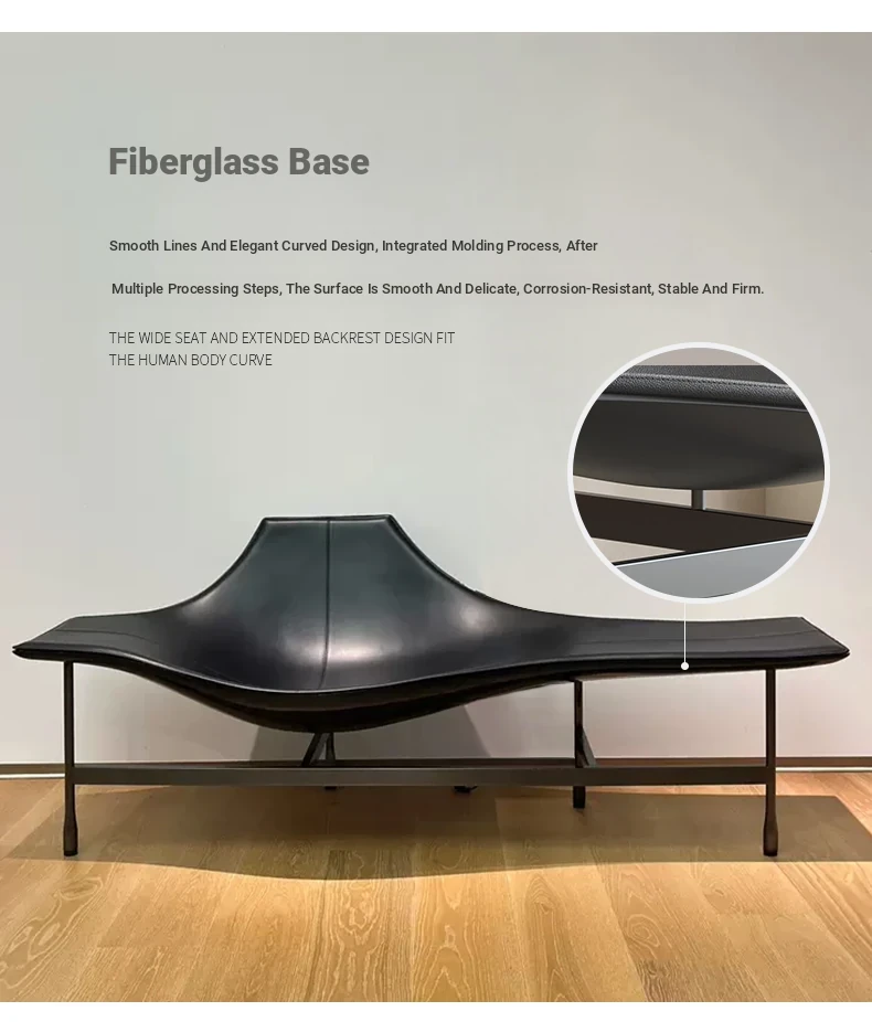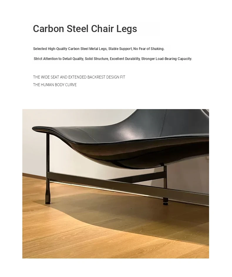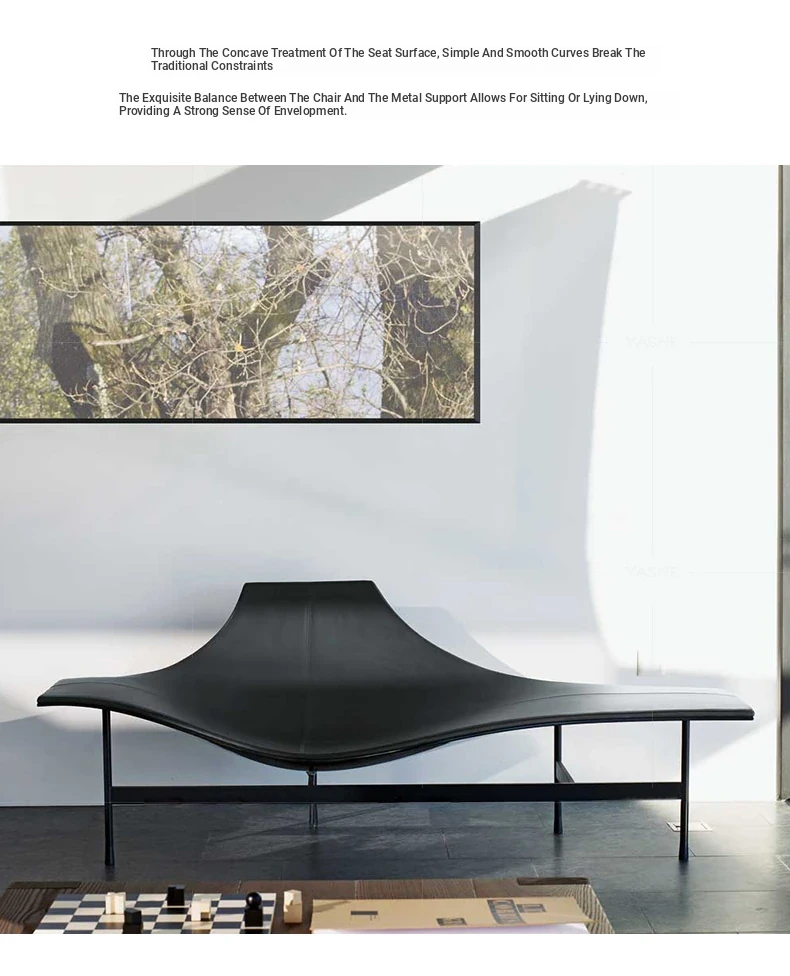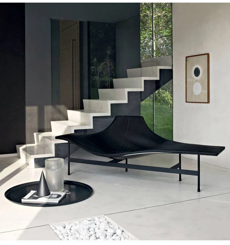 B&B Italian Minimalist Chaise Lounge - 2m Designer Creative Leisure Chair in Black Leather with Stainless Steel Frame for Stylish Living Rooms