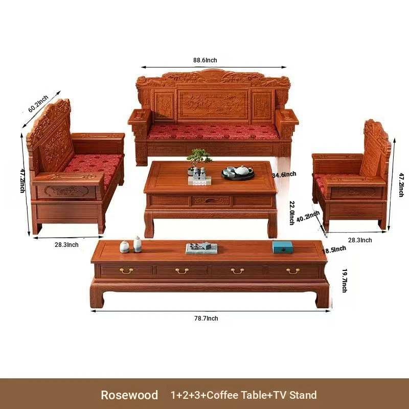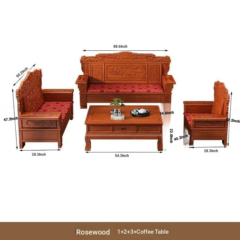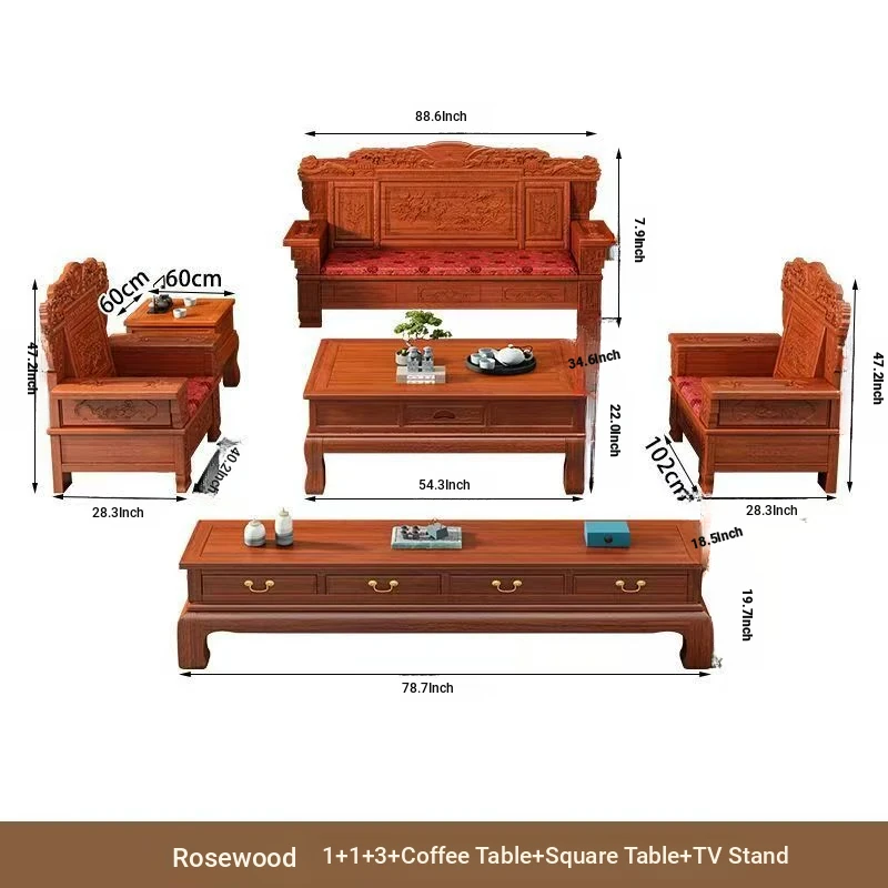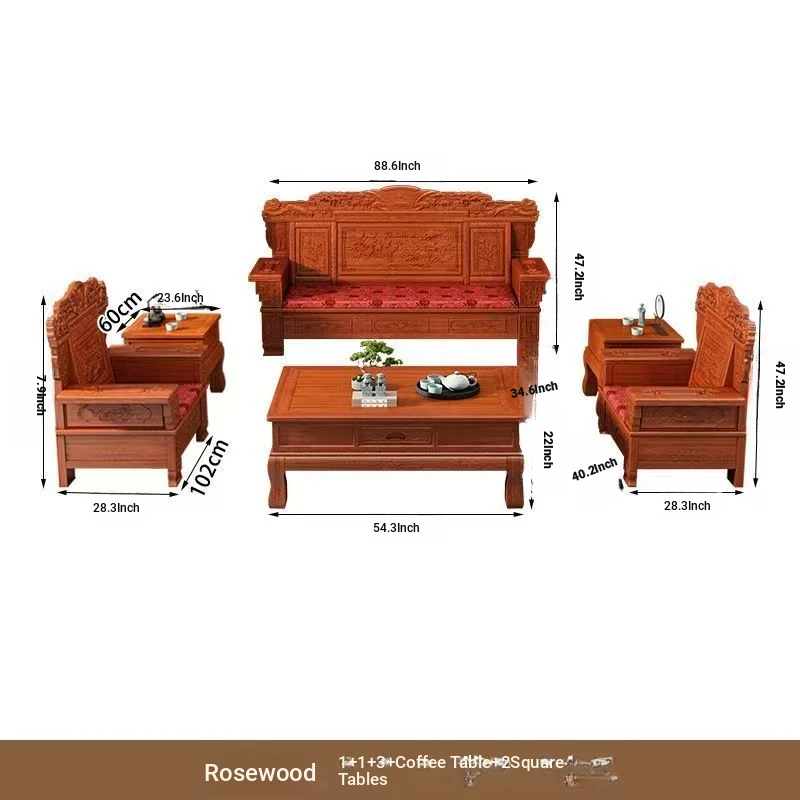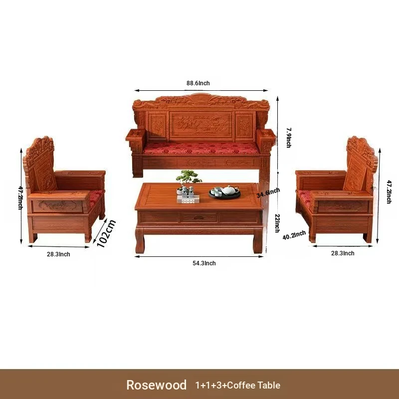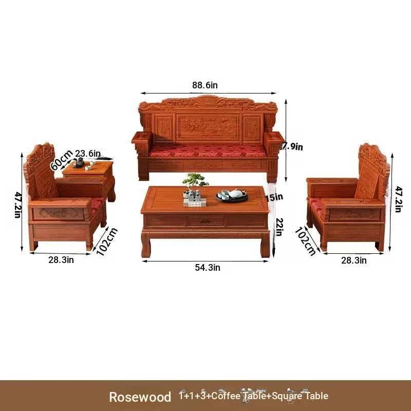 Golden Rosewood (cushion) with tea table plus tempered glass