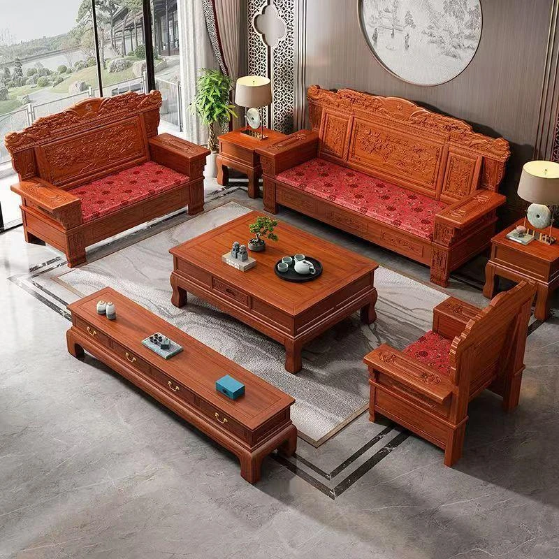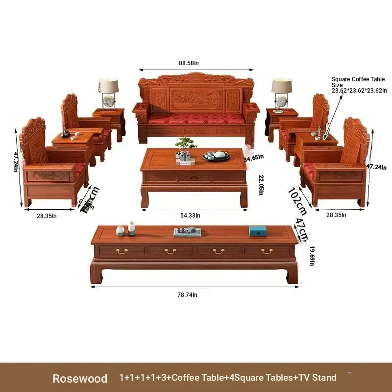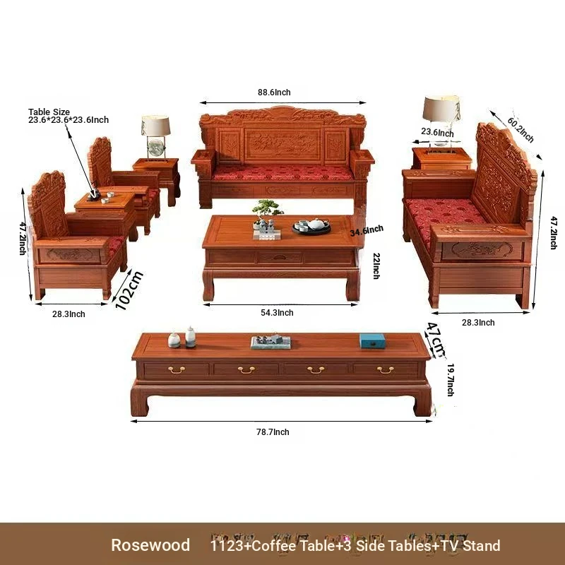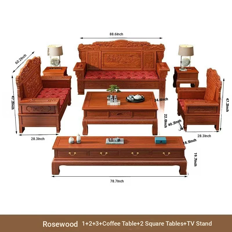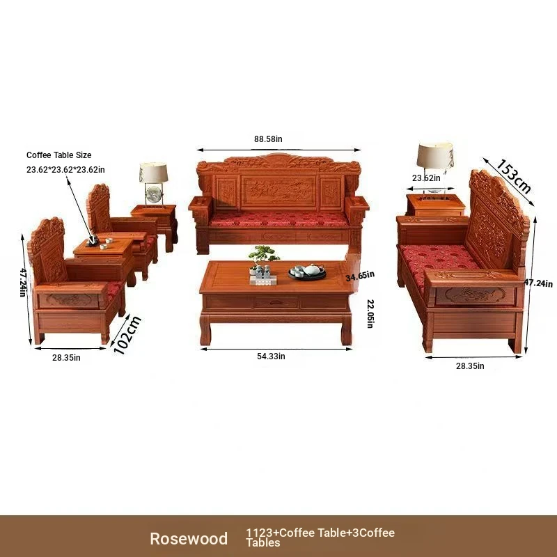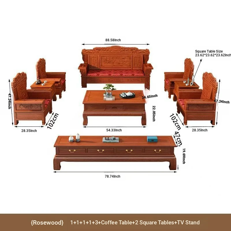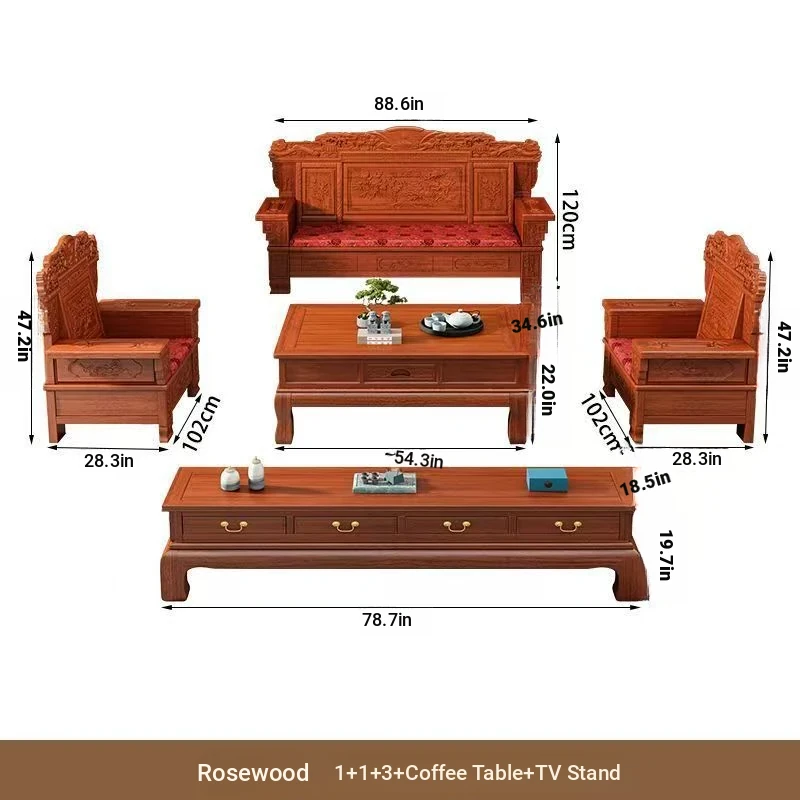 Golden Rosewood (cushion) with tea table plus tempered glass