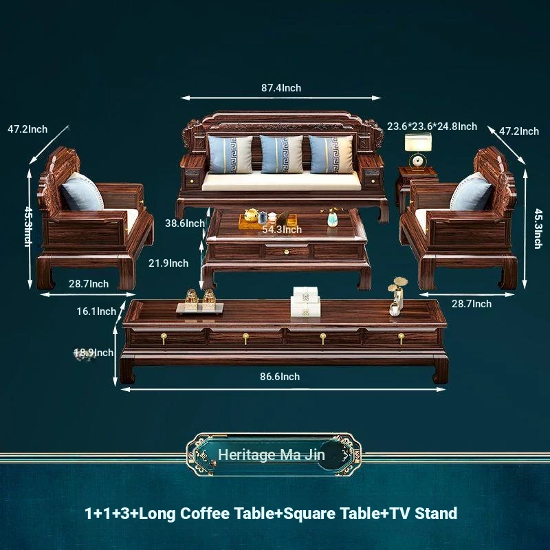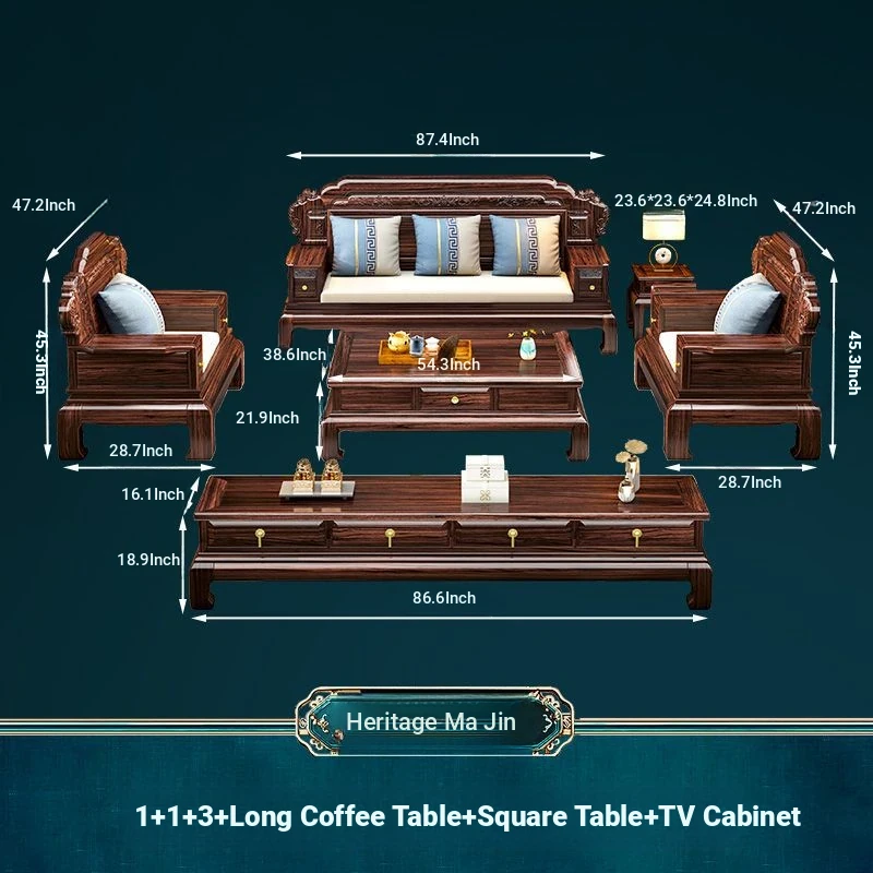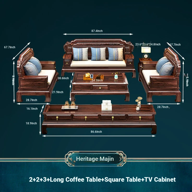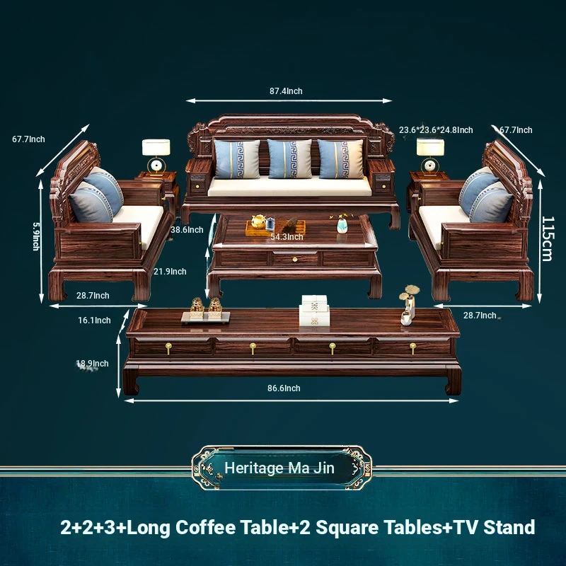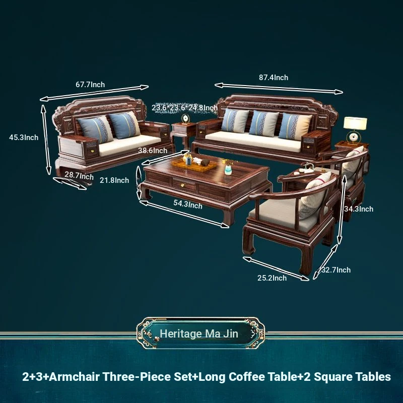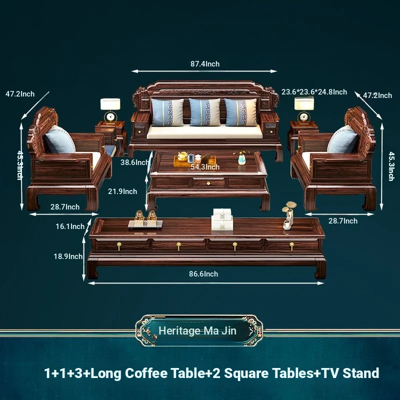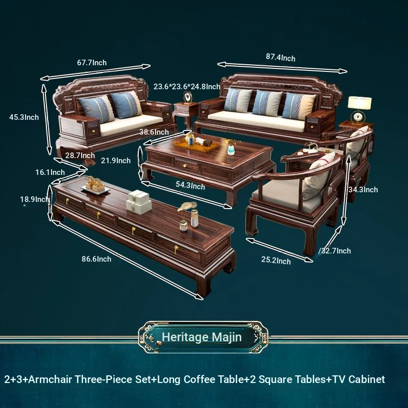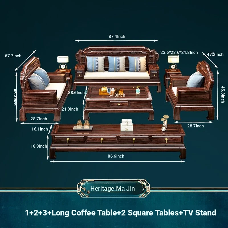 & 2+3 + Master Chair Combination + Long Tea Table +2 Square Tables + TV Cabinet