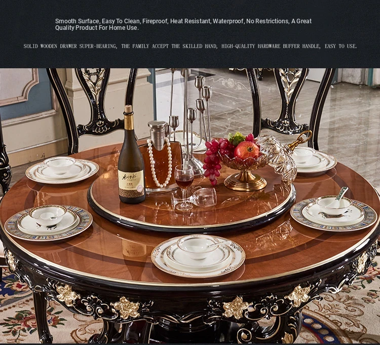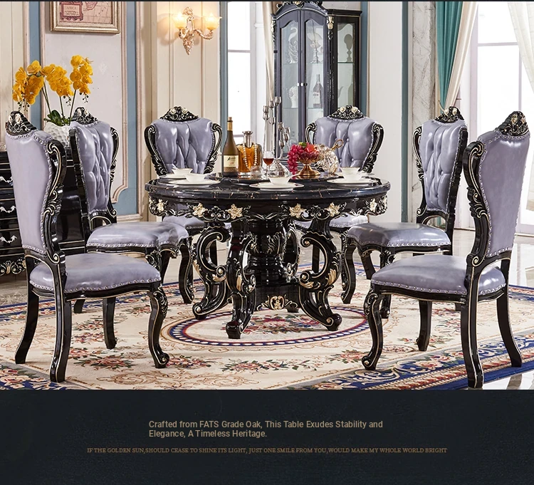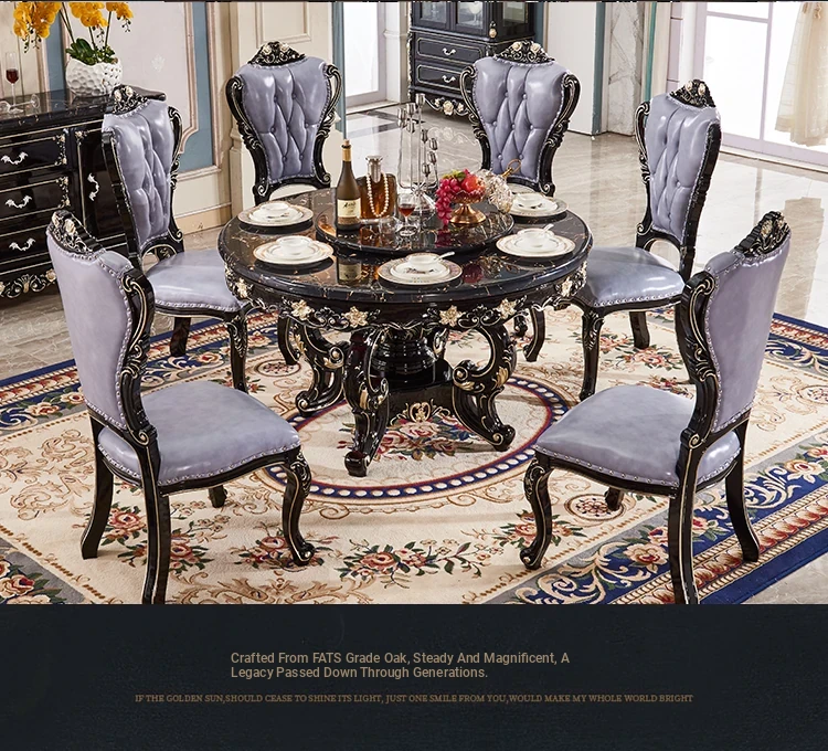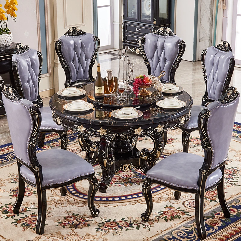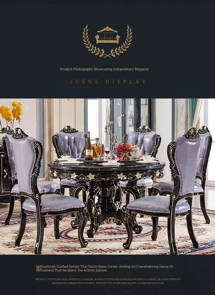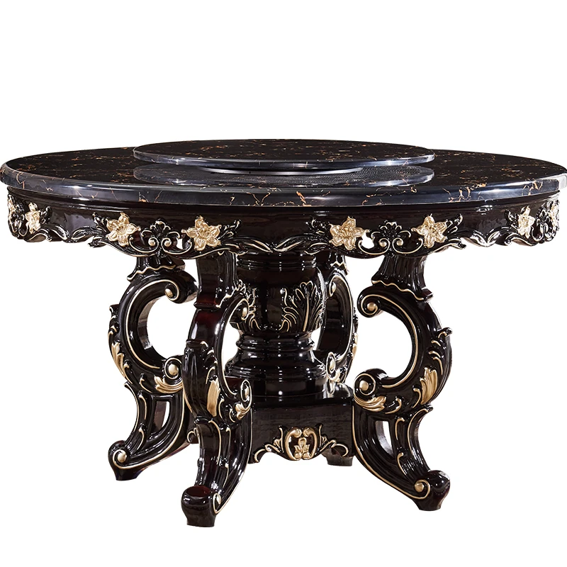 Elegant European Marble Dining Table Set - American Style Round Table with Black Walnut Finish, French Solid Wood Design, Perfect for Small Homes