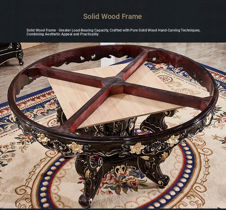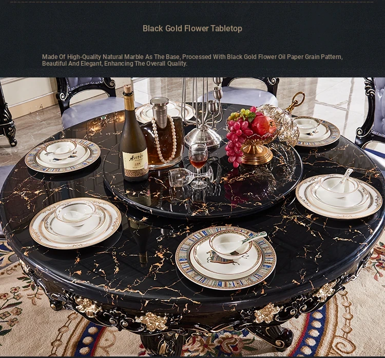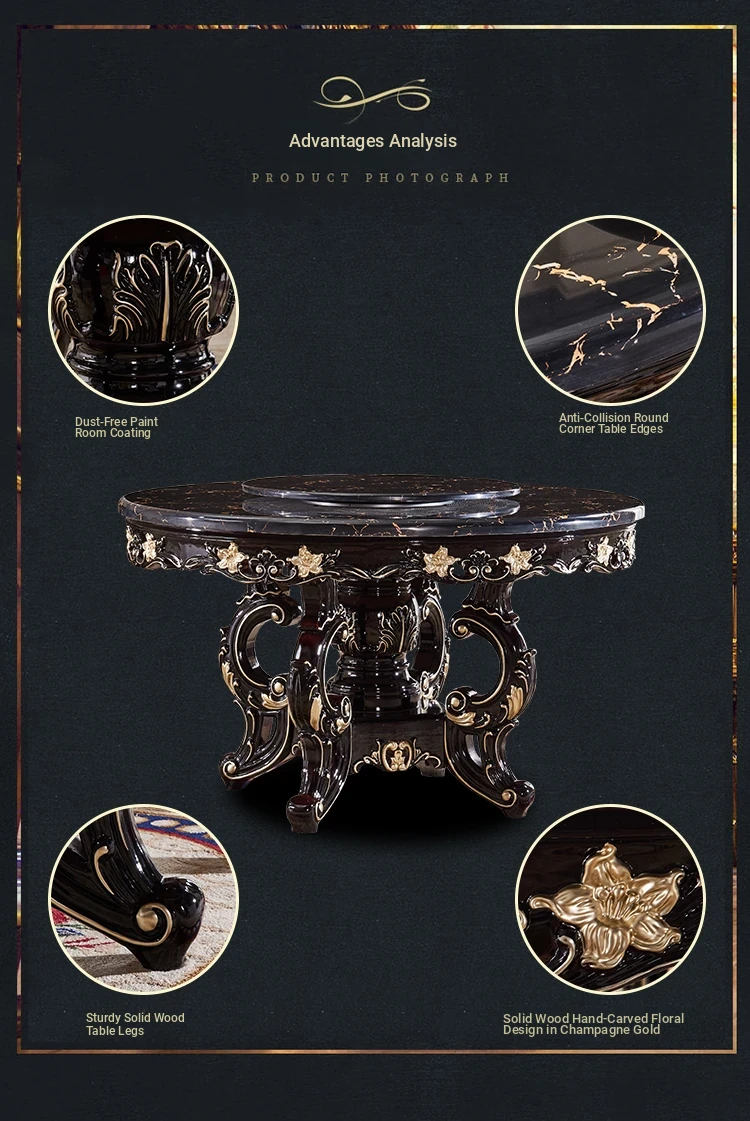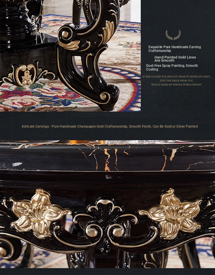 51.18 in dining table [all solid wood + Black golden flower noodles]]