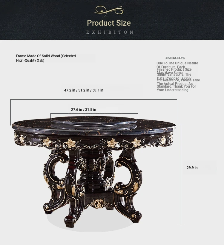 47.24 in dining table [all solid wood + Black golden flower noodles]]