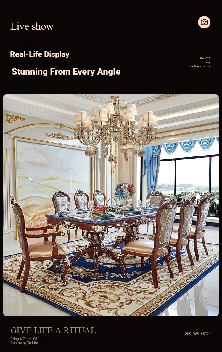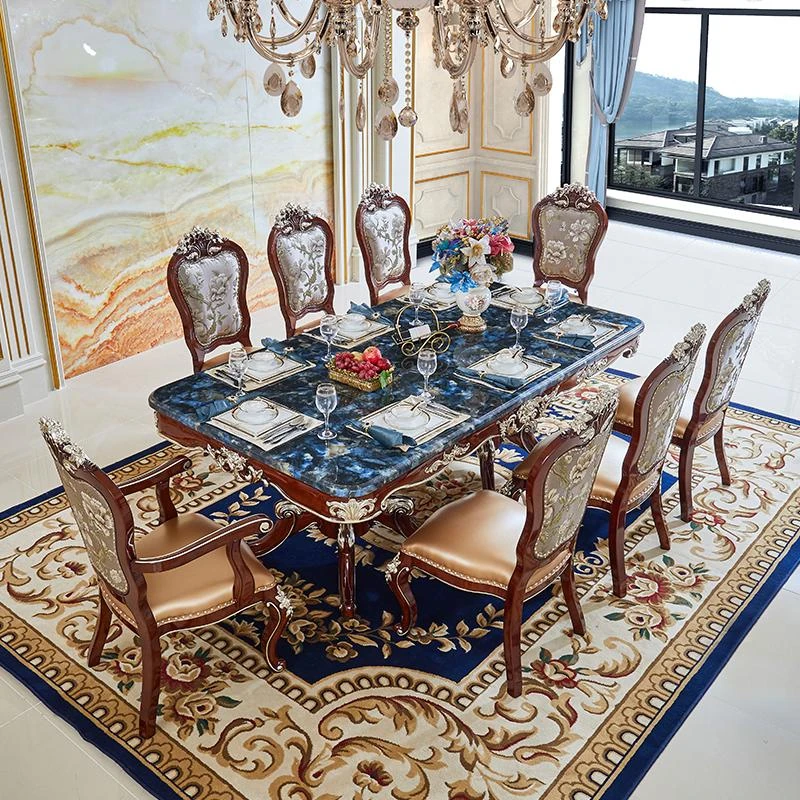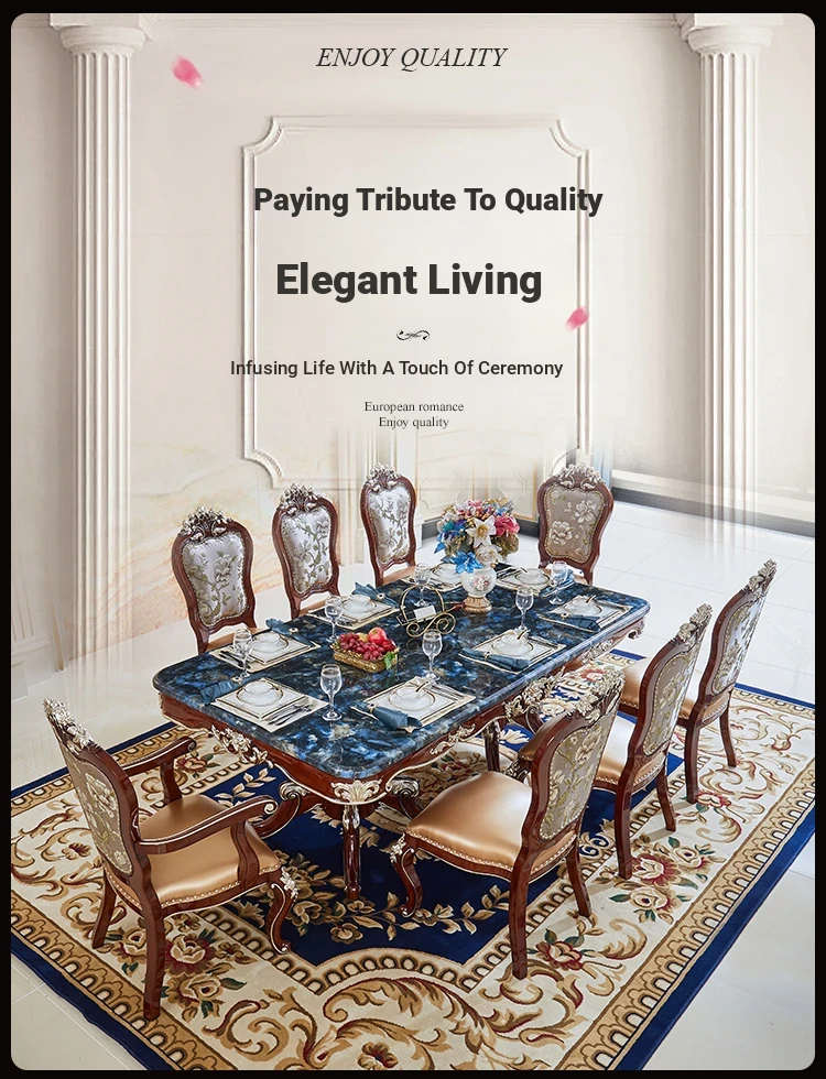 Elegant European Style Dining Table and Chair Set for Villas - High-End, Modern Minimalist Marble Dining Table and Chairs for Small Spaces, Perfect for Luxurious Home Dining Experiences.
