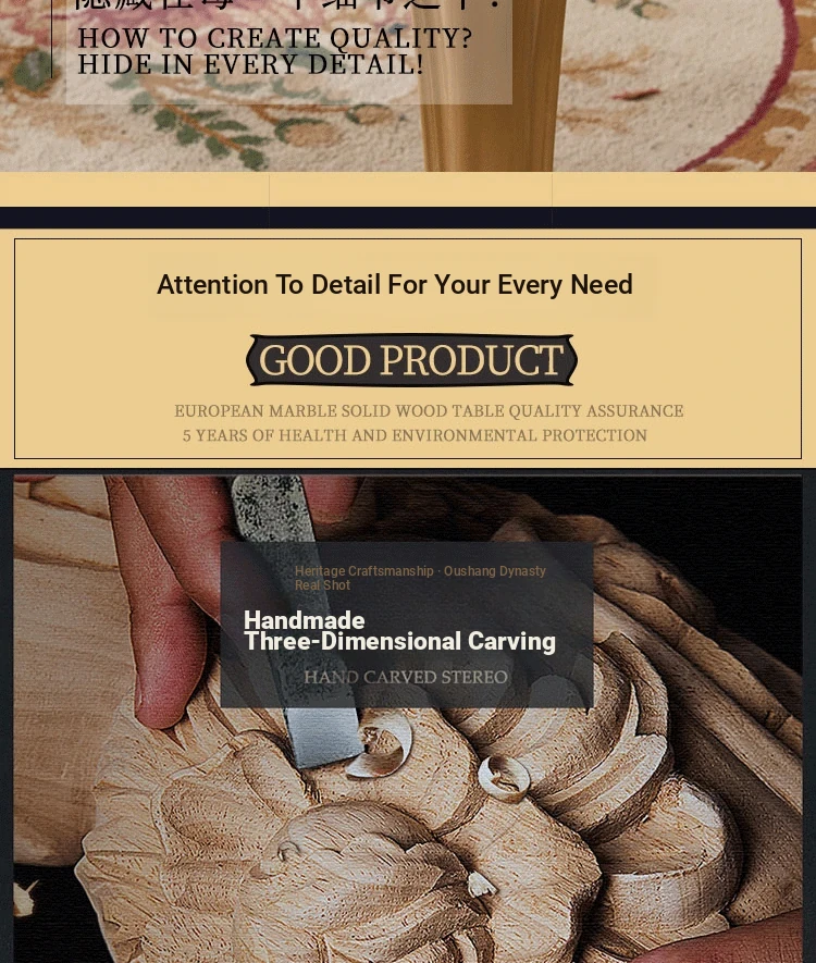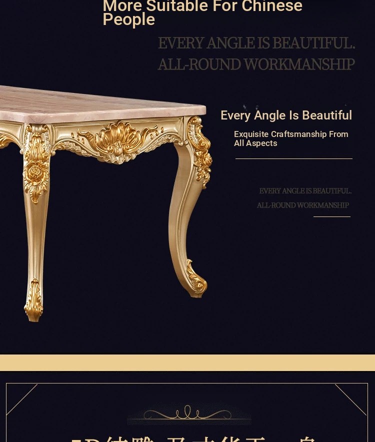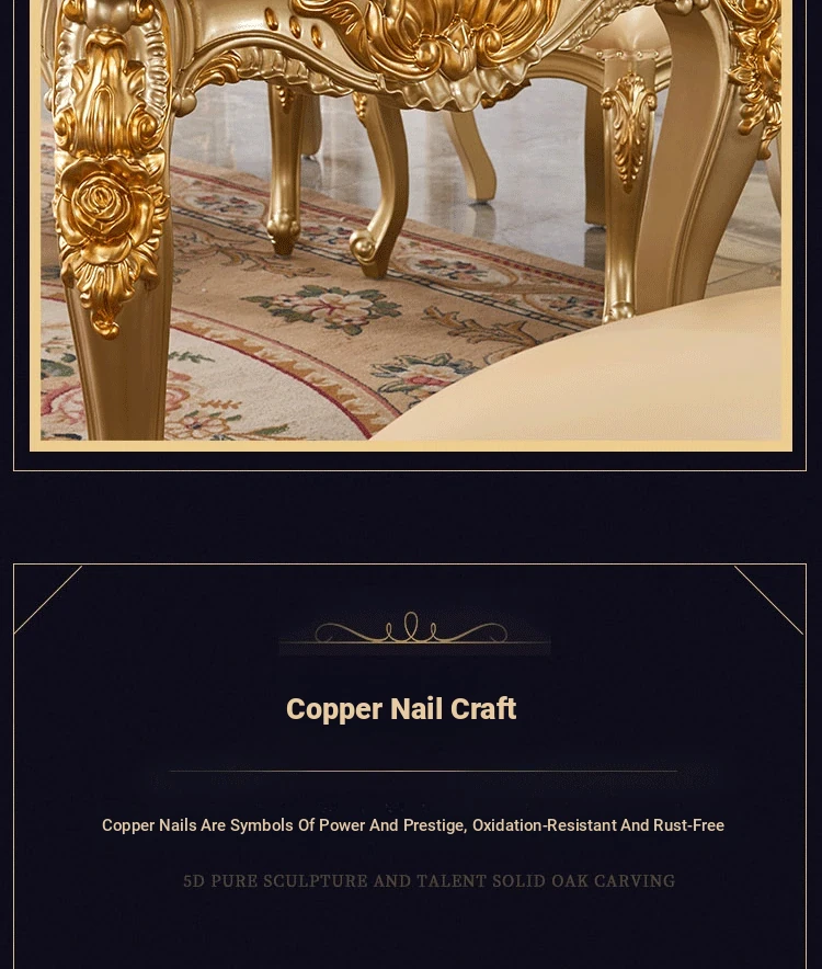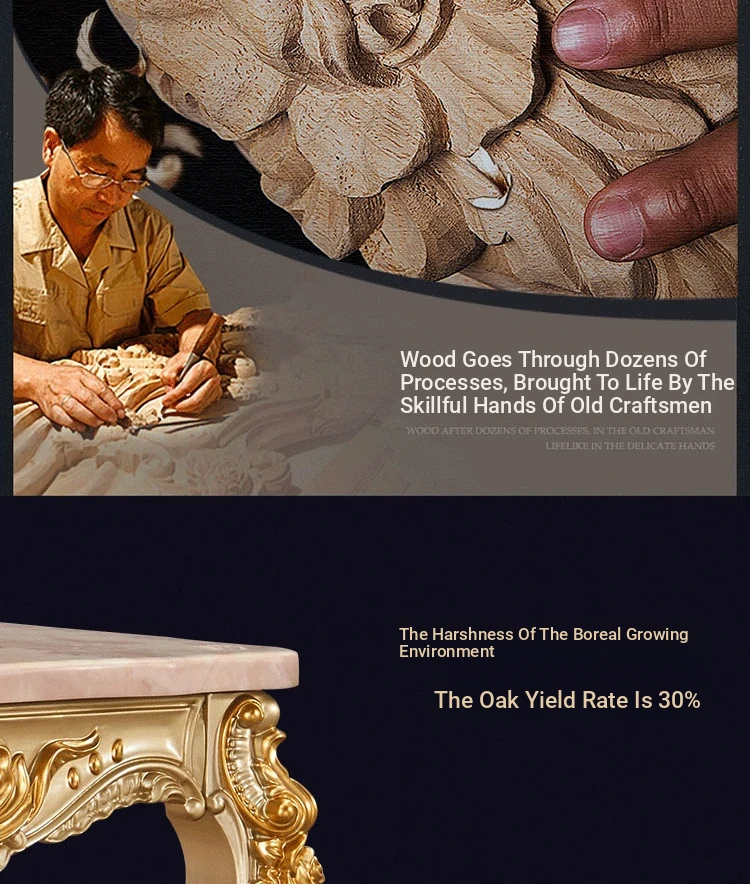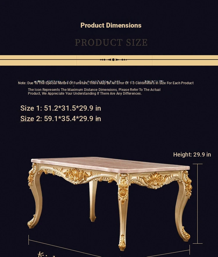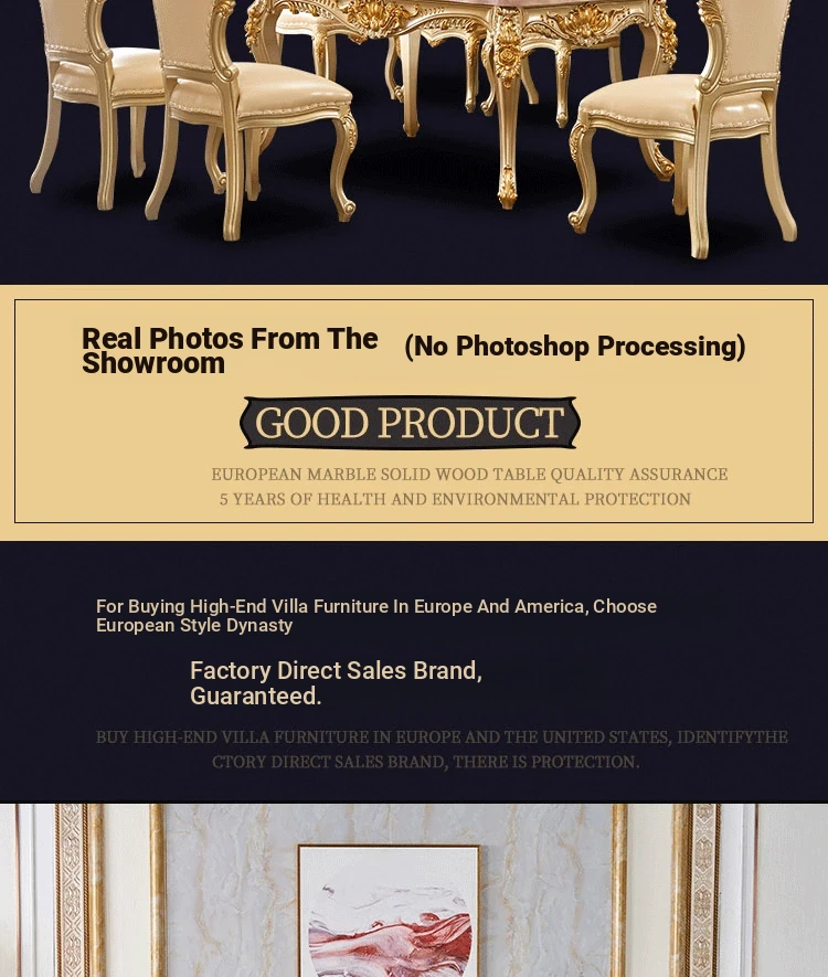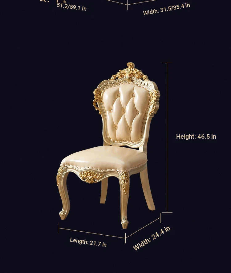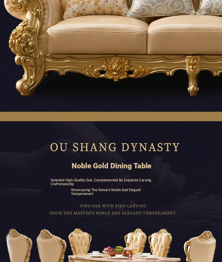 Elegant European Style Marble Top Gold Rectangular Dining Table Set - Minimalist Solid Wood Carved Dining Table and Chairs for Small Living Spaces