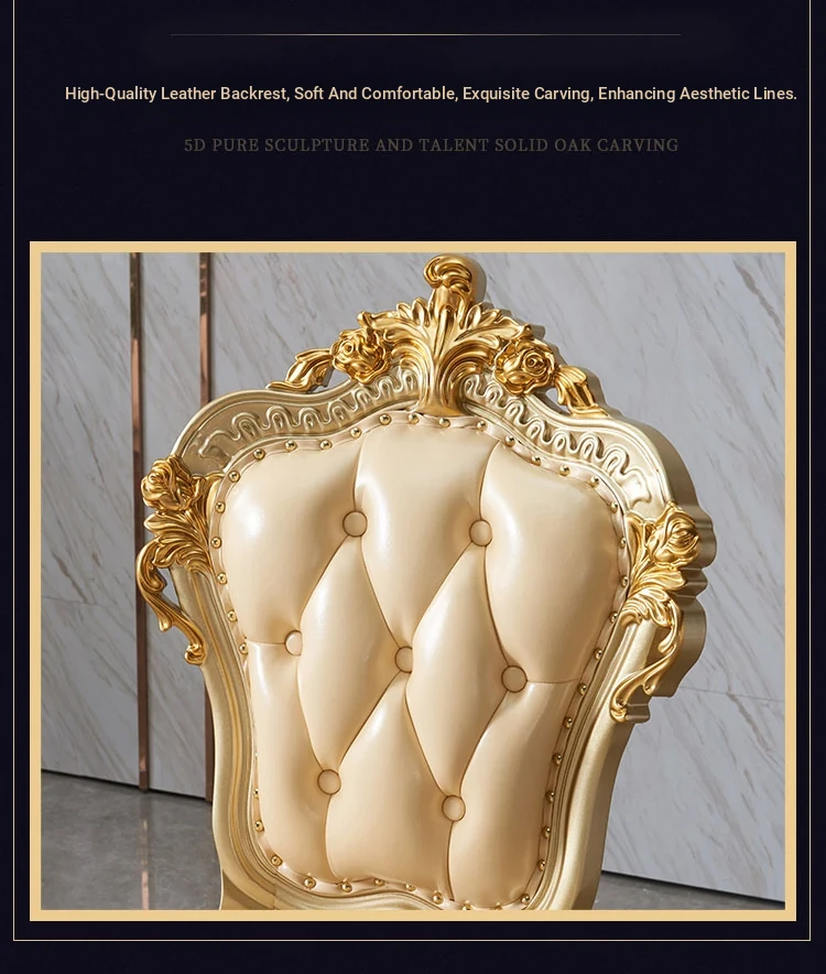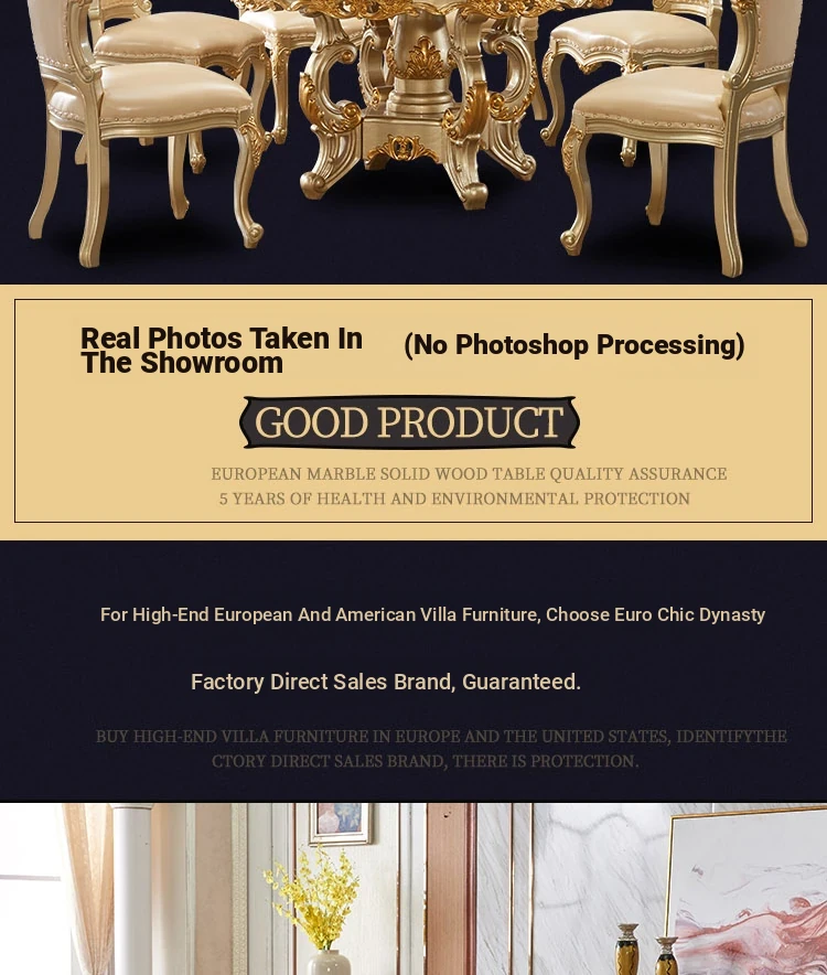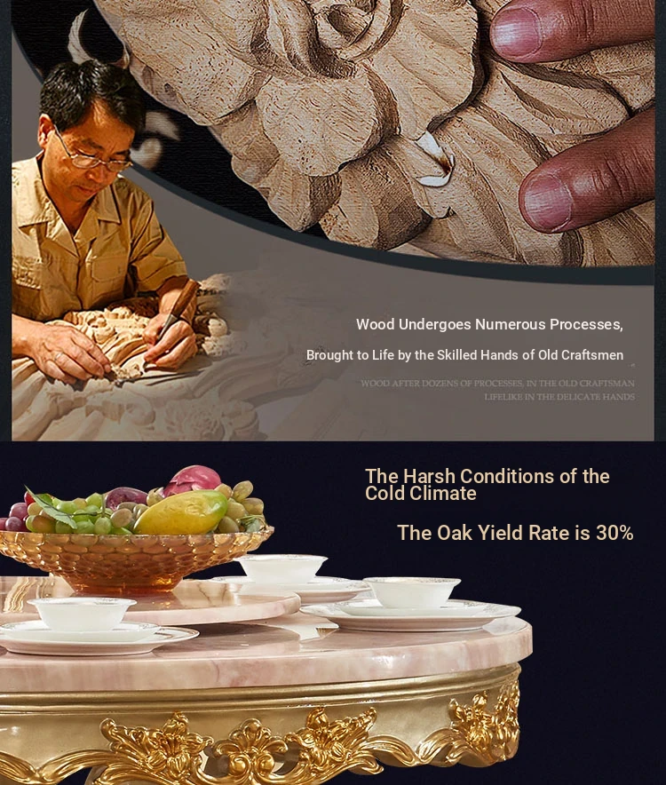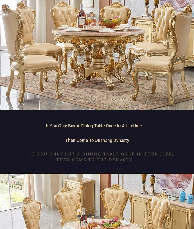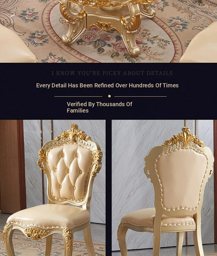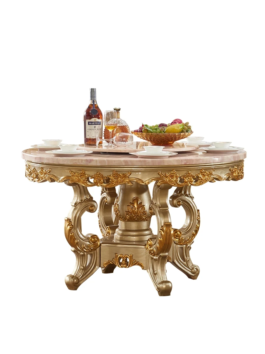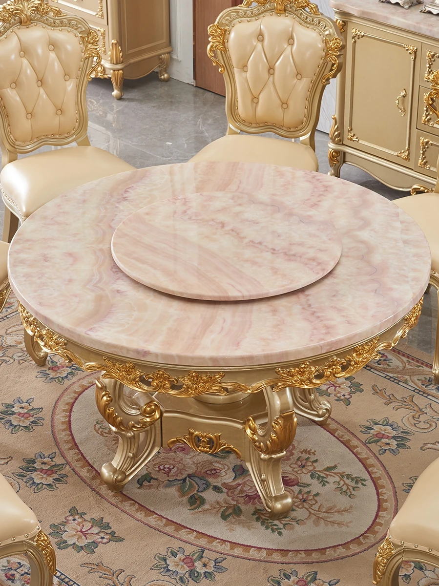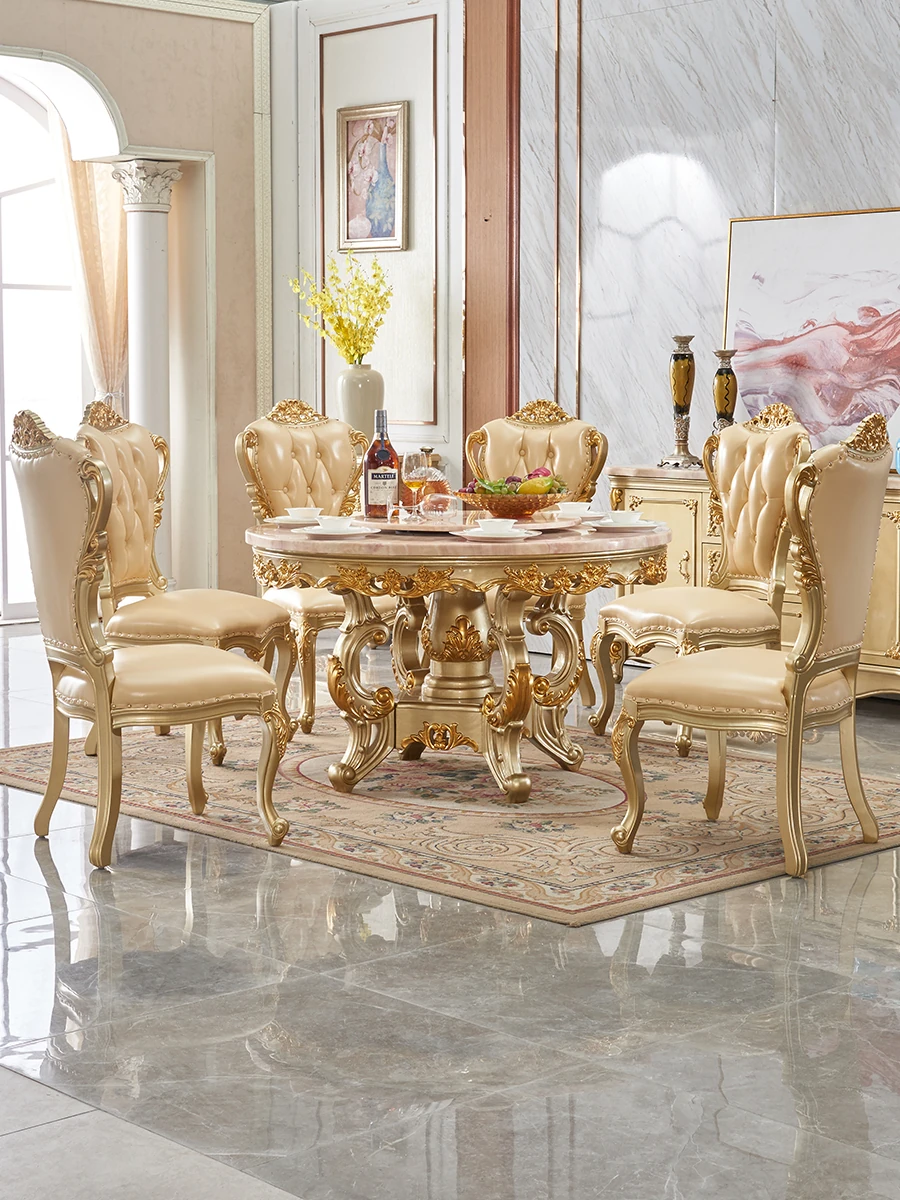 Elegant European Style Round Marble Dining Table - Solid Wood, Light Luxury Champagne Gold, Home Use Round Table and Chair Set