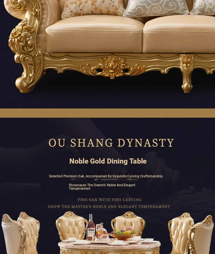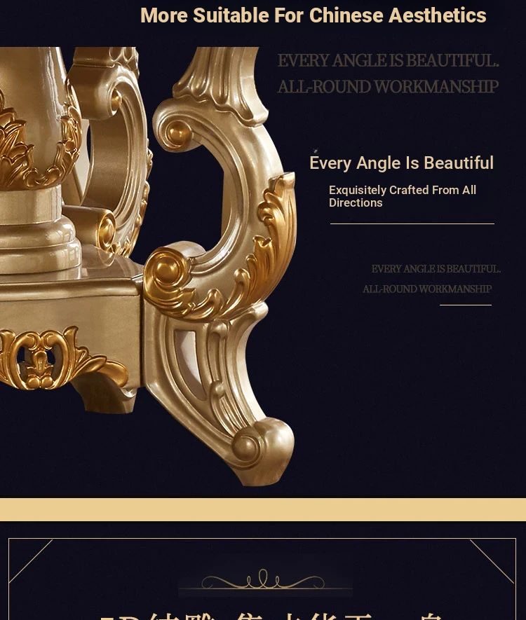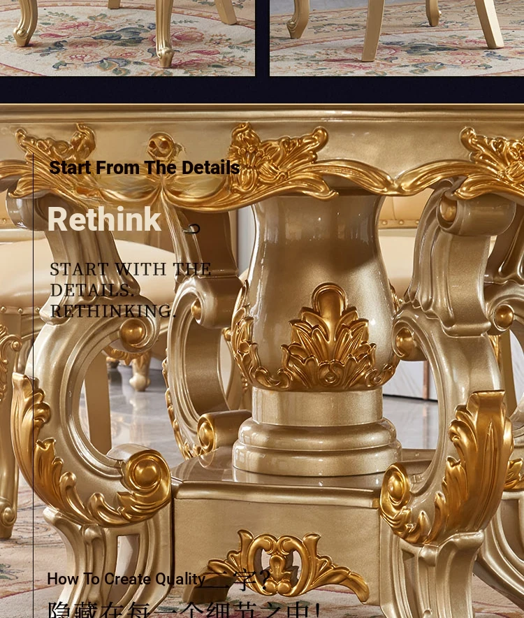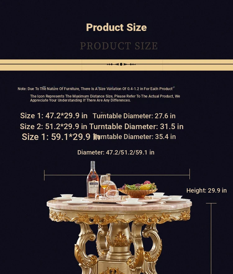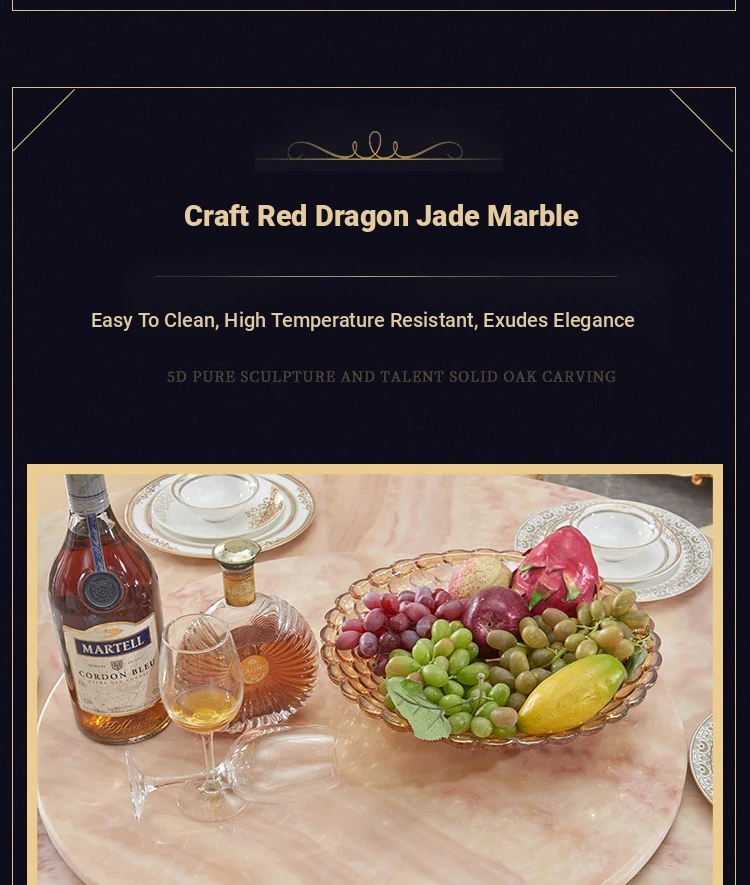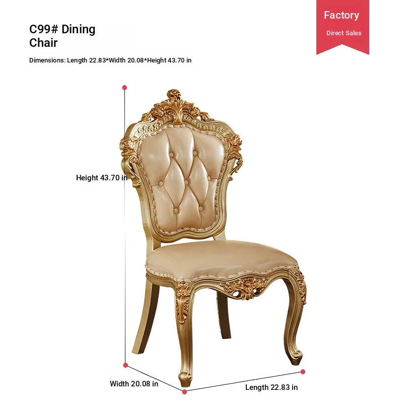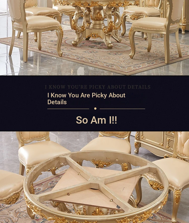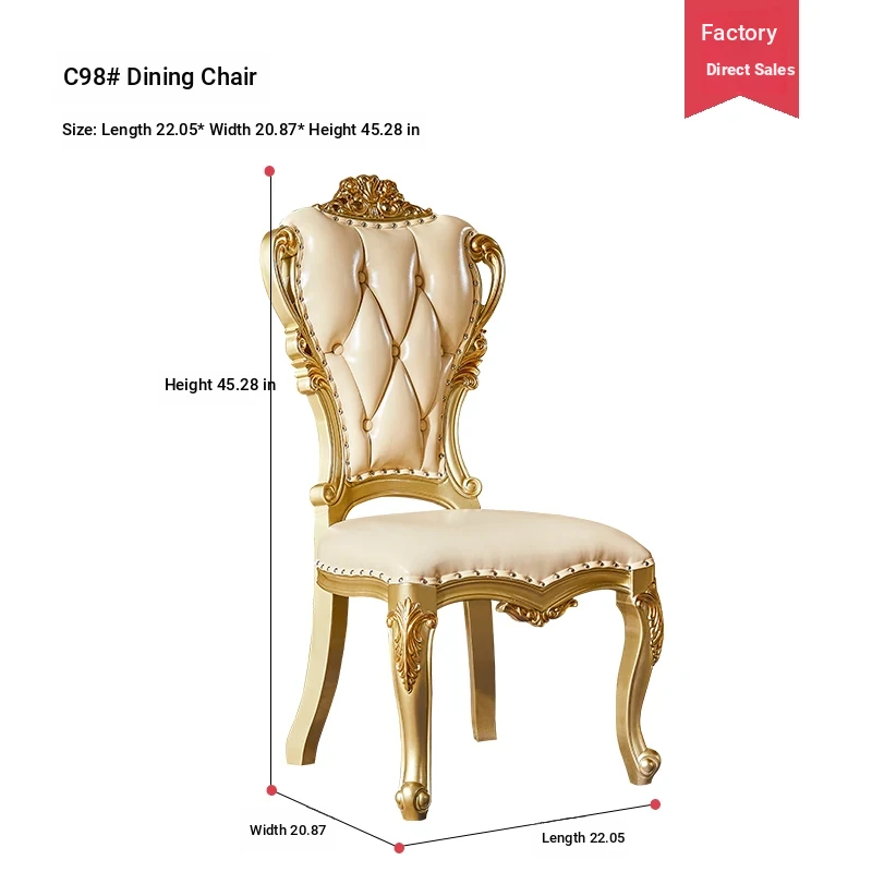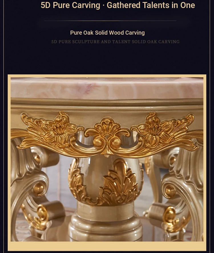 Elegant European Style Round Marble Dining Table - Solid Wood, Light Luxury Champagne Gold, Home Use Round Table and Chair Set