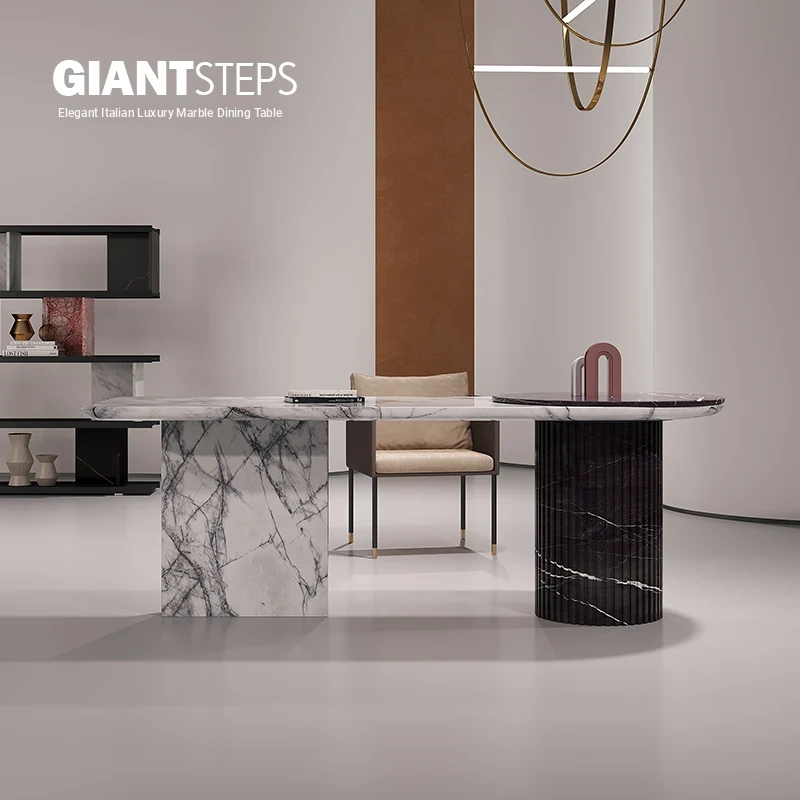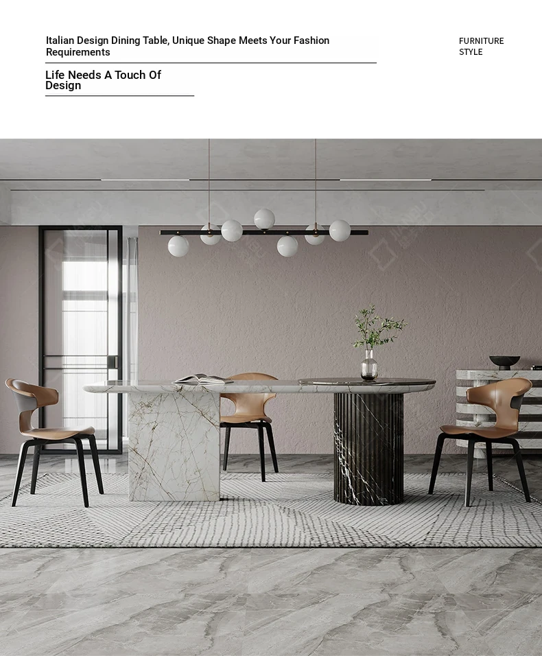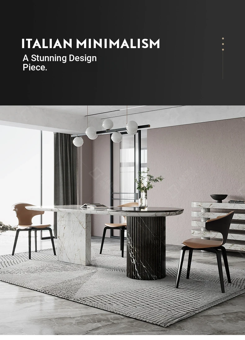 Elegant Italian Minimalist Natural Marble Dining Table and Chair Set - Rectangular Modern Design for a Stylish Dining Experience