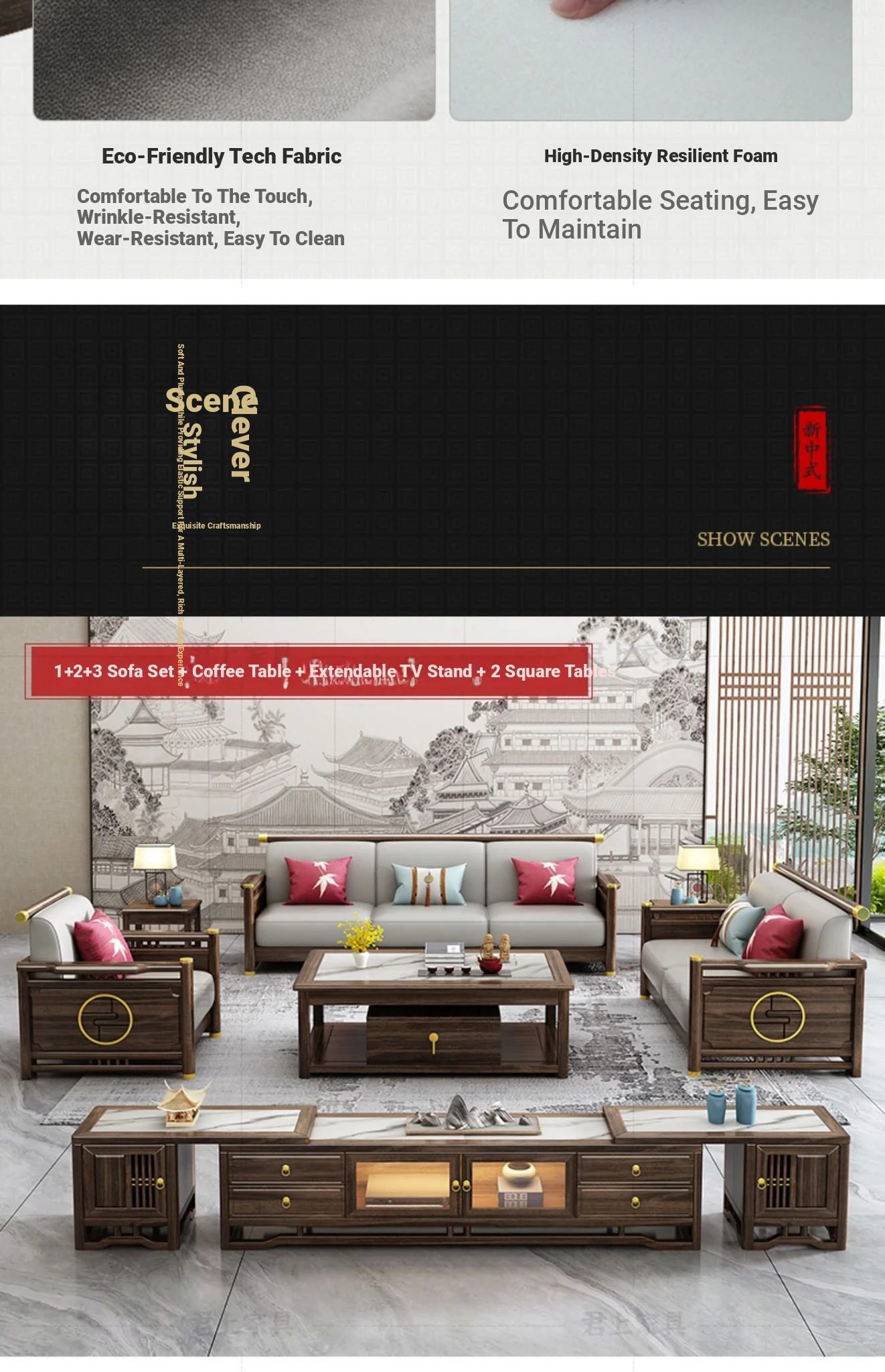 Taishi chair three-piece set +2+3 + tea table + square * 2 + TV cabinet multi-color cloth set optional