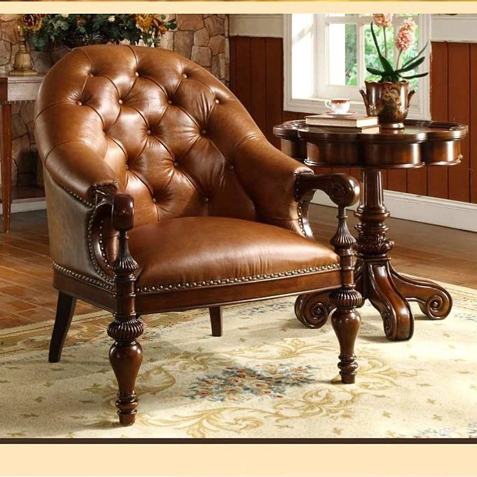 Elegant Solid Wood Single Modern Luxury Tiger Chair - Stylish Leather Sofa for Living Room, Perfect for Relaxation and Entertaining (Model 80876)