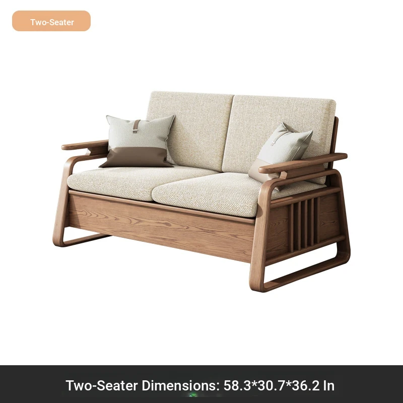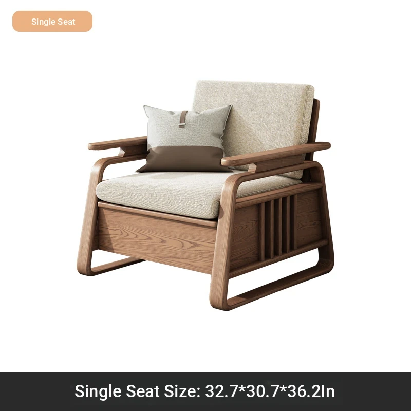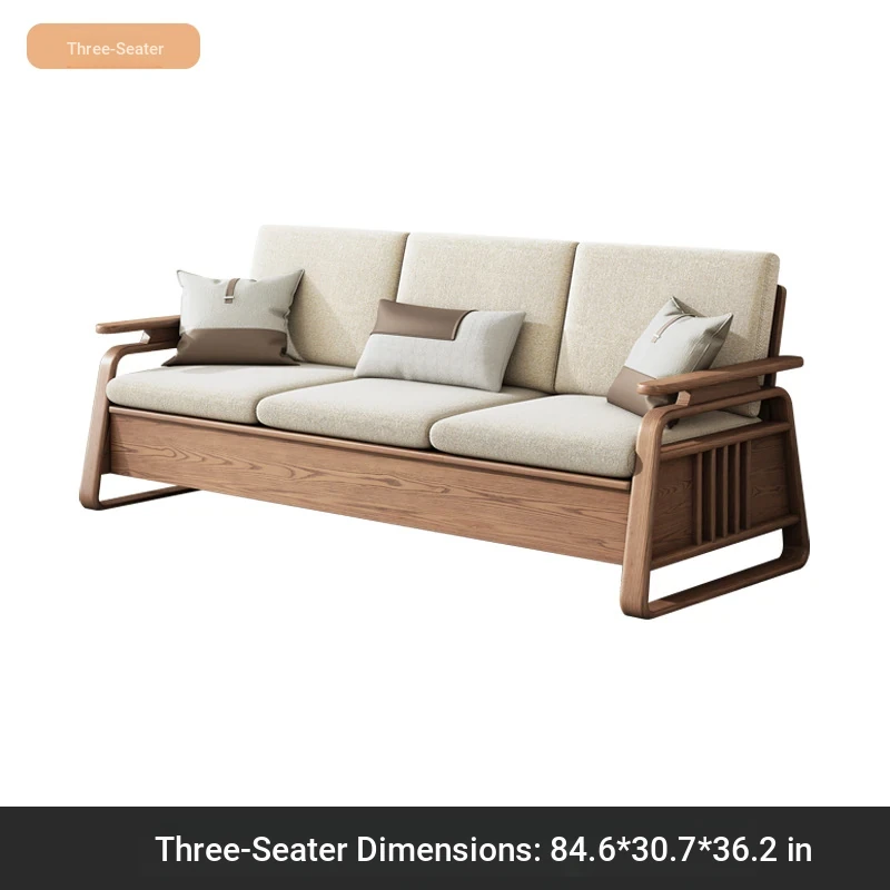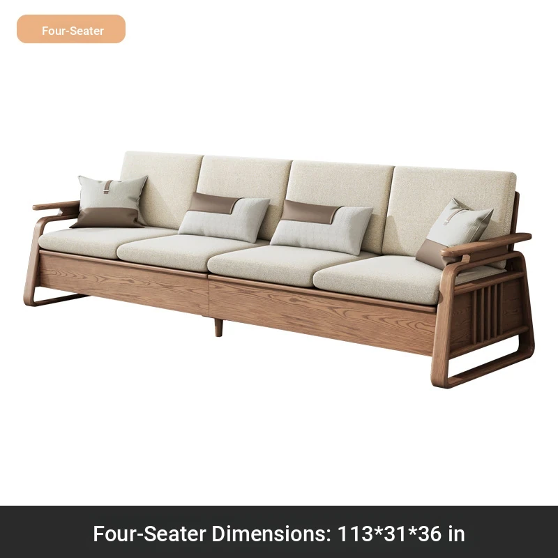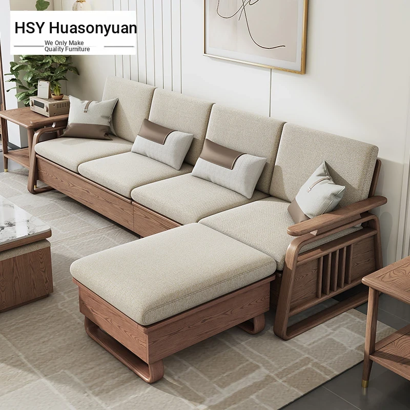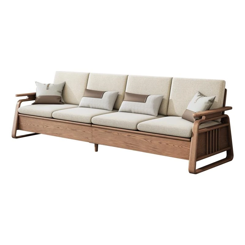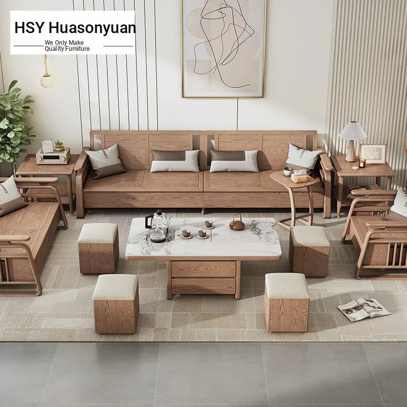 Elegant Solid Wood Sofa Set with Storage - New Chinese Style Ash Wood Sofa for Living Room, Perfect for Year-Round Use in Winter and Summer