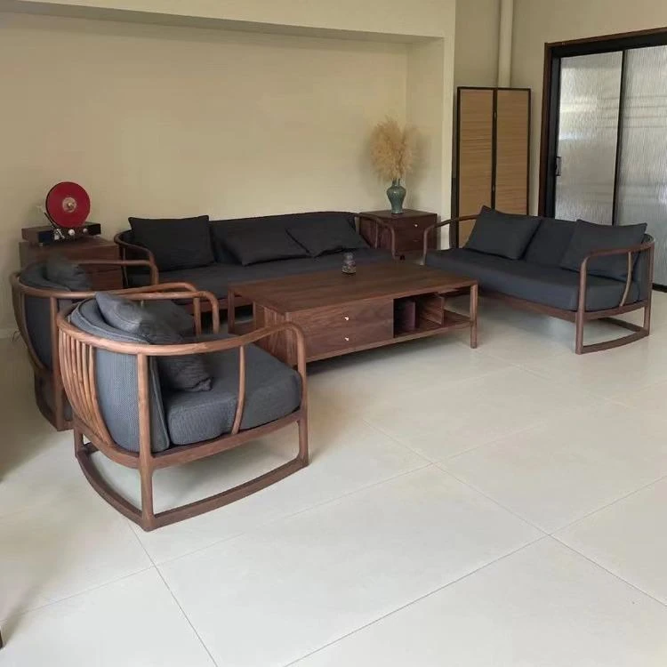 Elegant Zen-inspired New Chinese Style North American Black Walnut Sofa Set - 123 Combination for Minimalist Living Room and Office Furniture