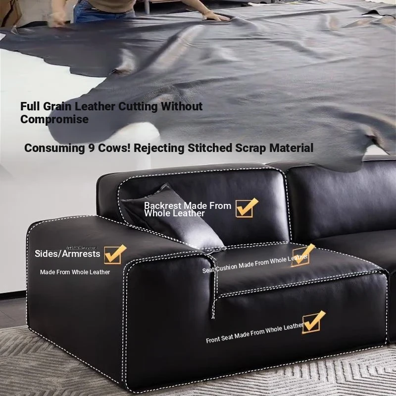 Genuine Leather Black Bull Sofa - Premium Top Grain Leather, Summer Collection, Inspired by Wild Bison - Perfect for Your Living Room!
