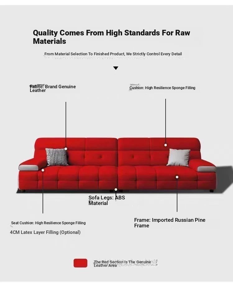 _Fully wrapped top layer cowhide + natural latex cushion + Import Pine