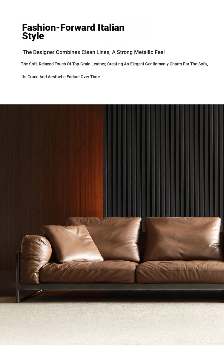 Italian Leather Sofa for Small Living Rooms - Luxurious Yet Simple Feather-Down Design for Modern Homes - Foshan Furniture