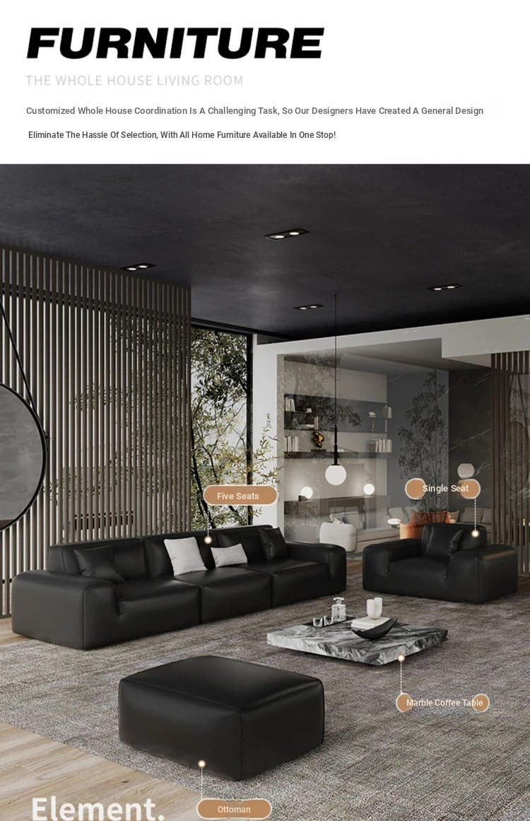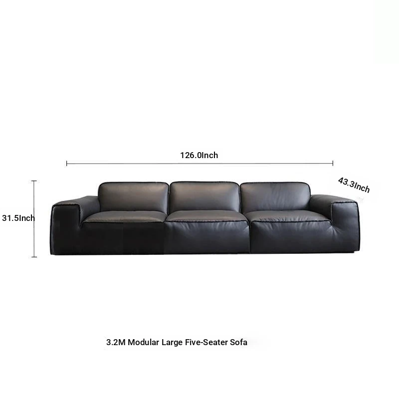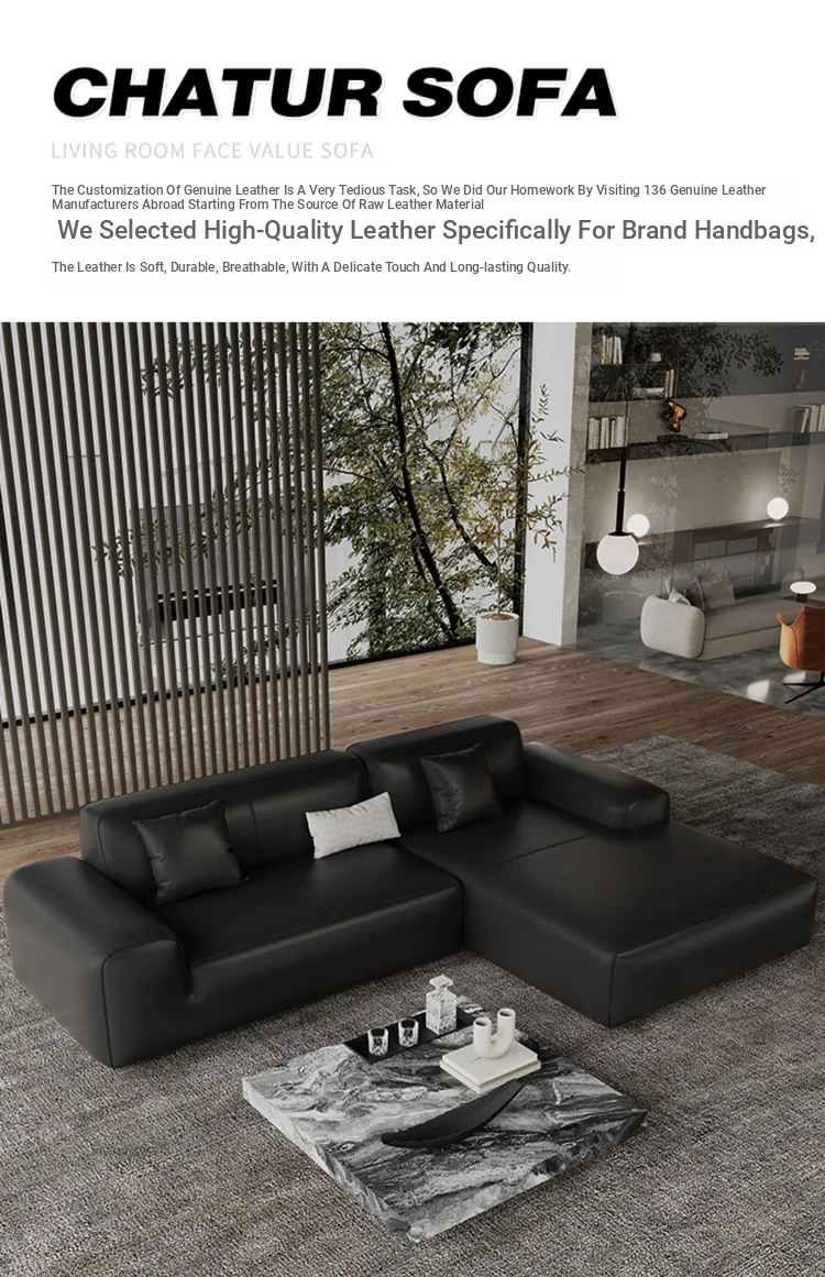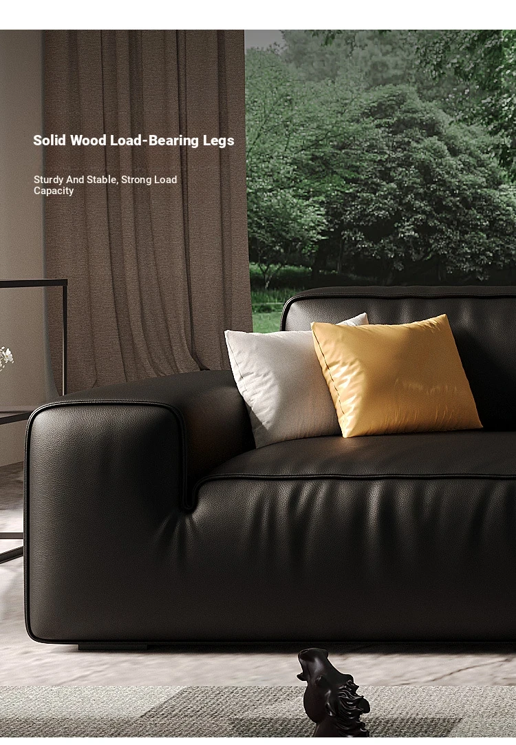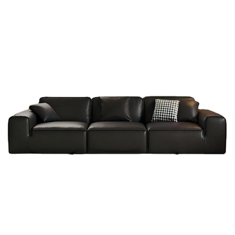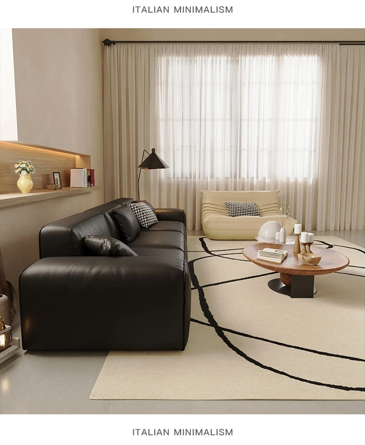 Italian Minimalist Black Leather Sofa - Premium Quality Black Top-Grain Leather Living Room Set for a Luxurious Touch