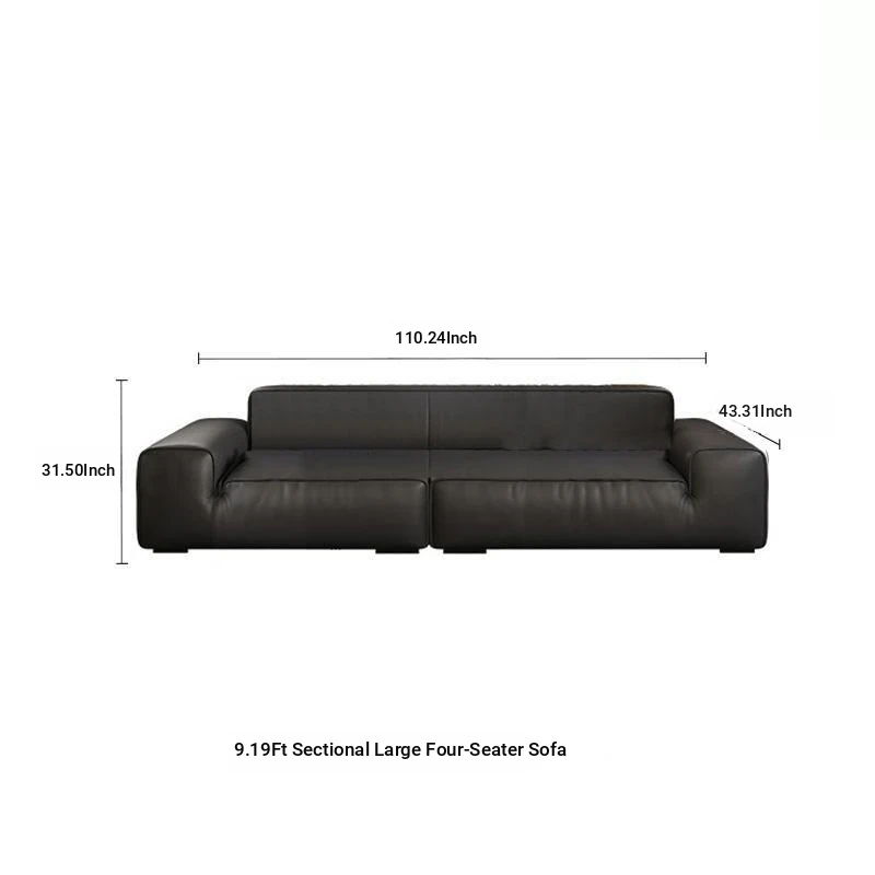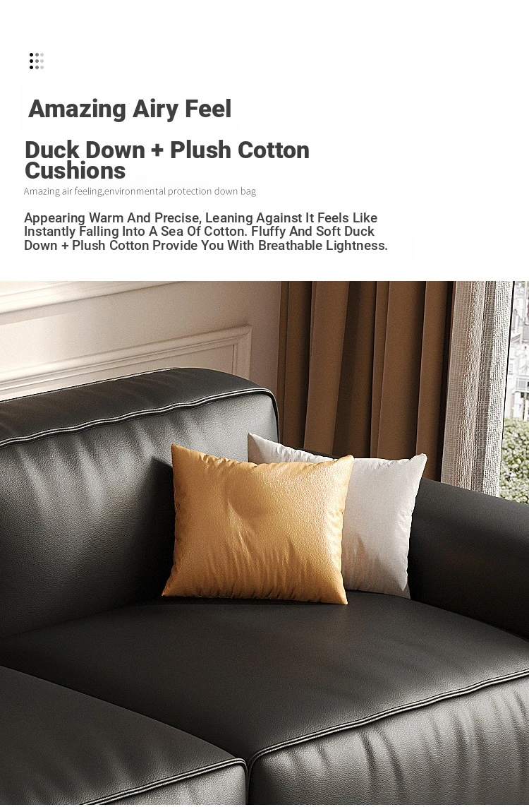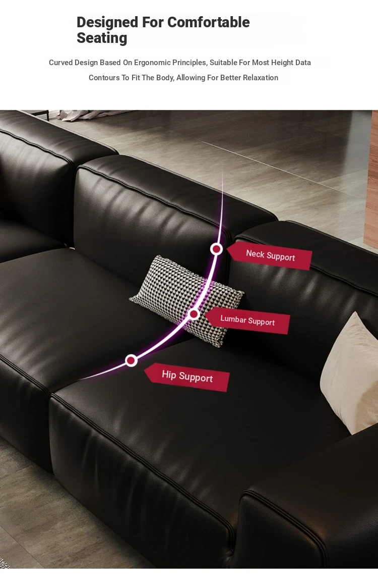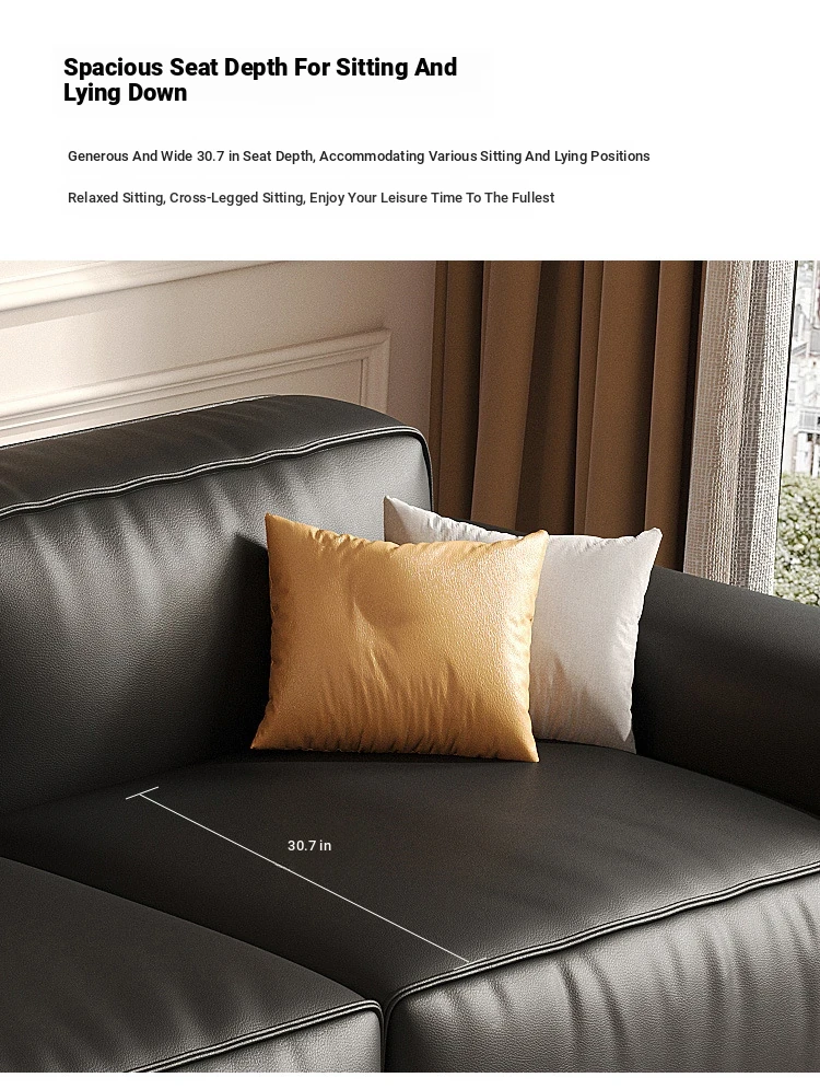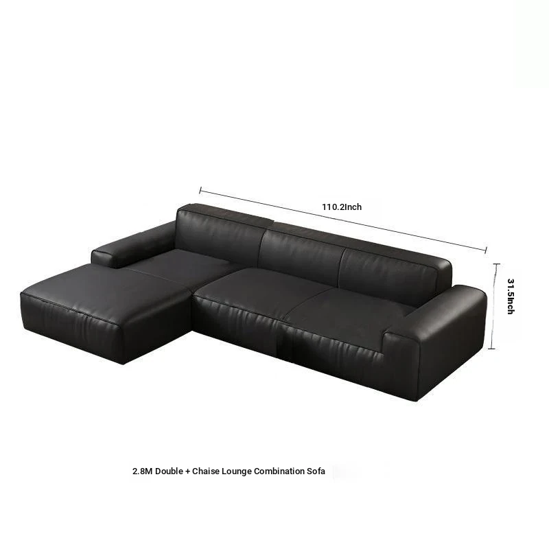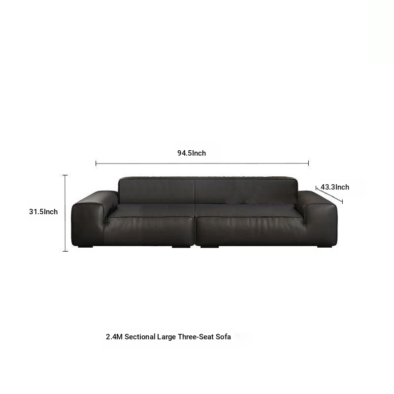 Italian Minimalist Black Leather Sofa - Premium Quality Black Top-Grain Leather Living Room Set for a Luxurious Touch