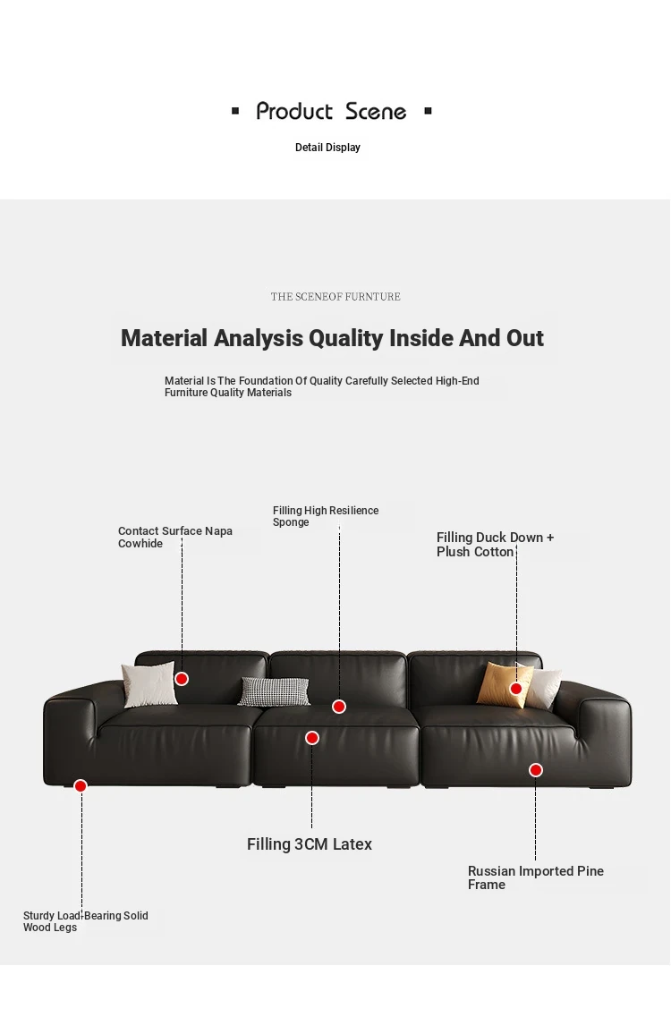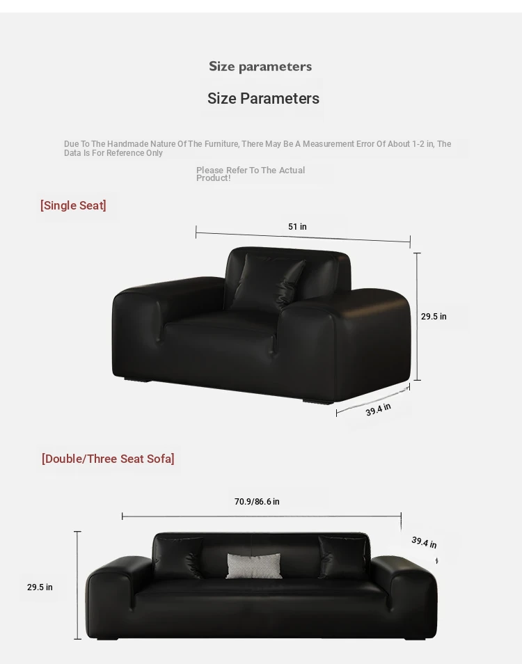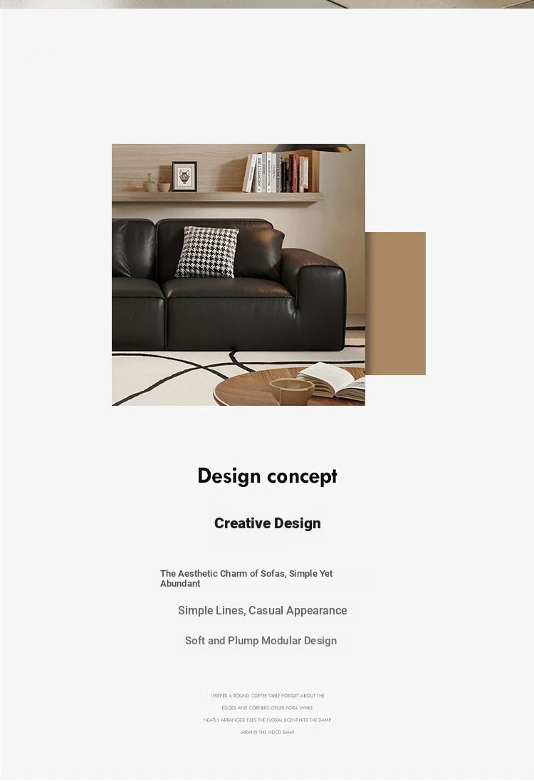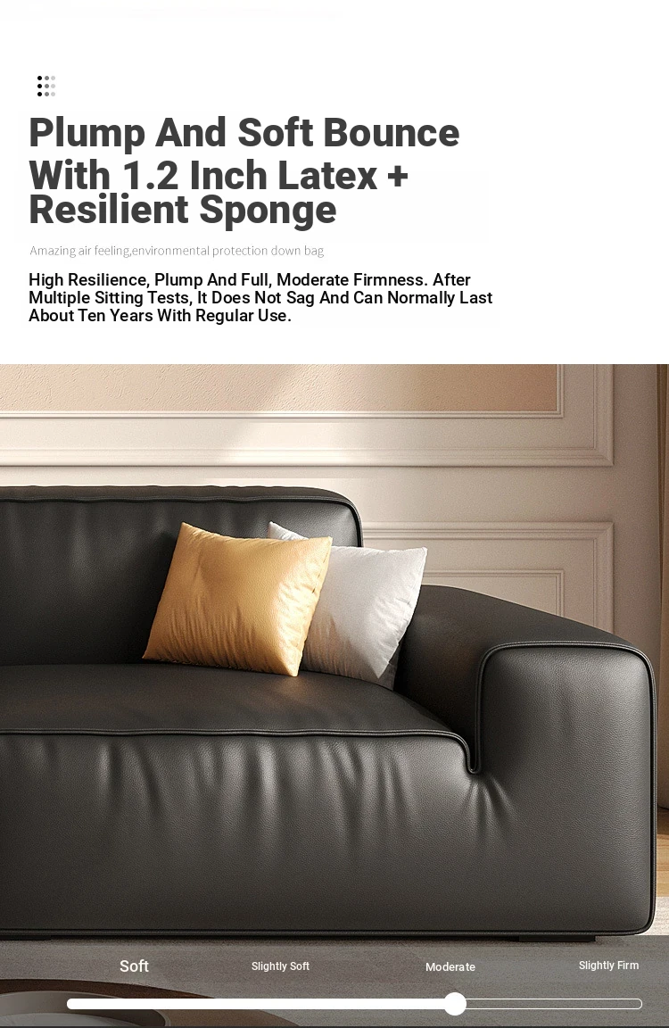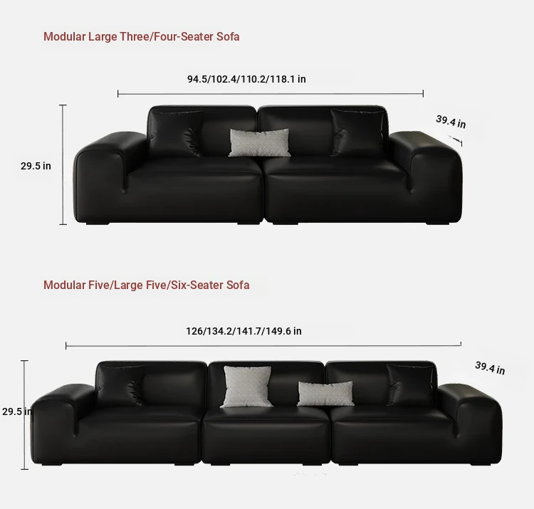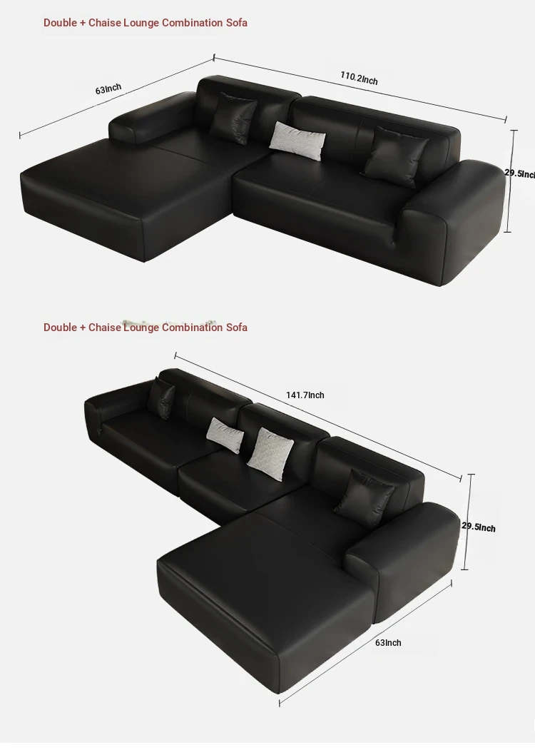 Italian Minimalist Black Leather Sofa - Premium Quality Black Top-Grain Leather Living Room Set for a Luxurious Touch