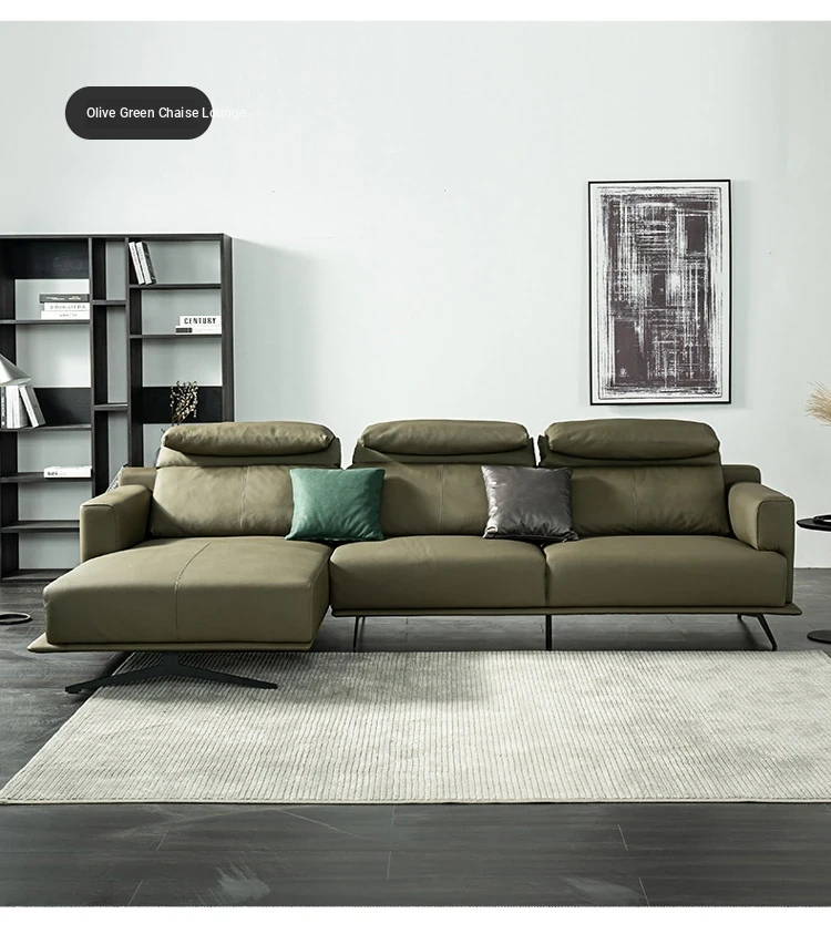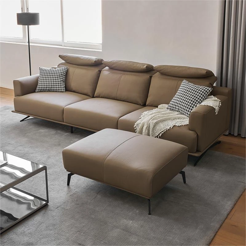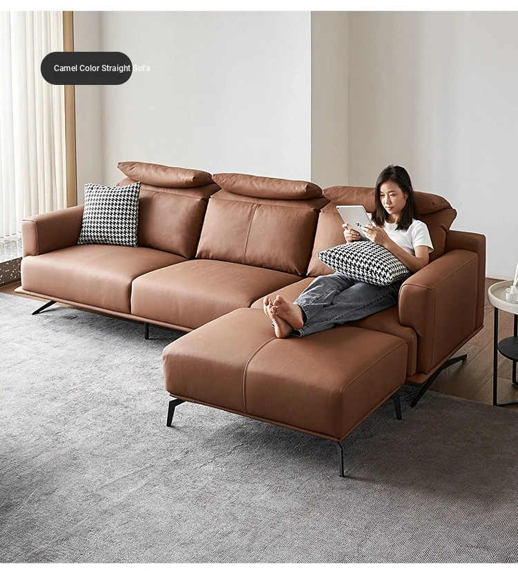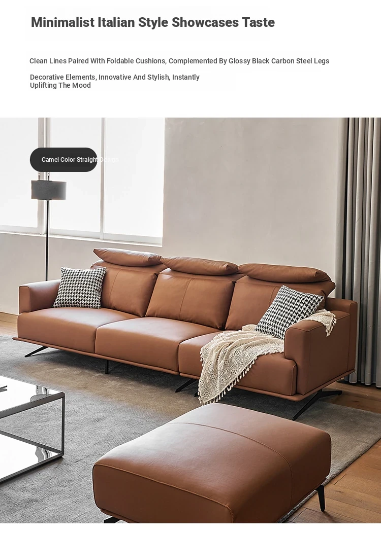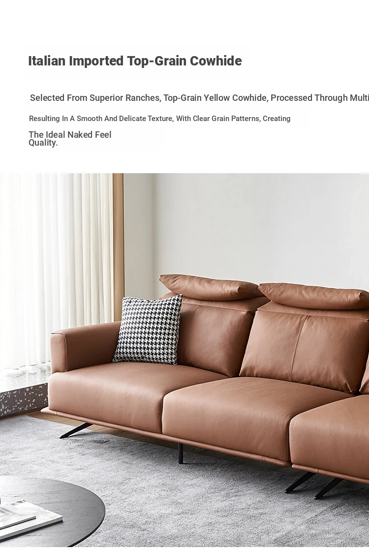 Italian Minimalist Genuine Leather Sofa - Top-Grain Cowhide Designer Lounge for Small Luxury Living Rooms - Elegant Chaise Lounge Corner Set