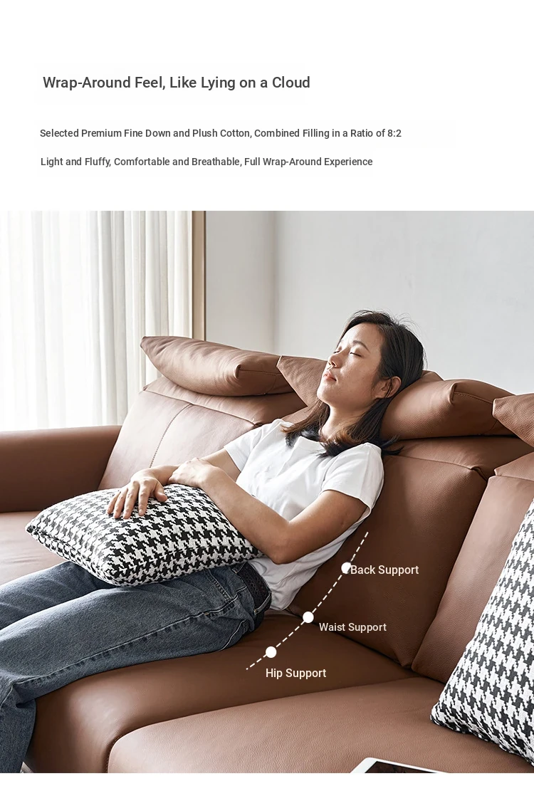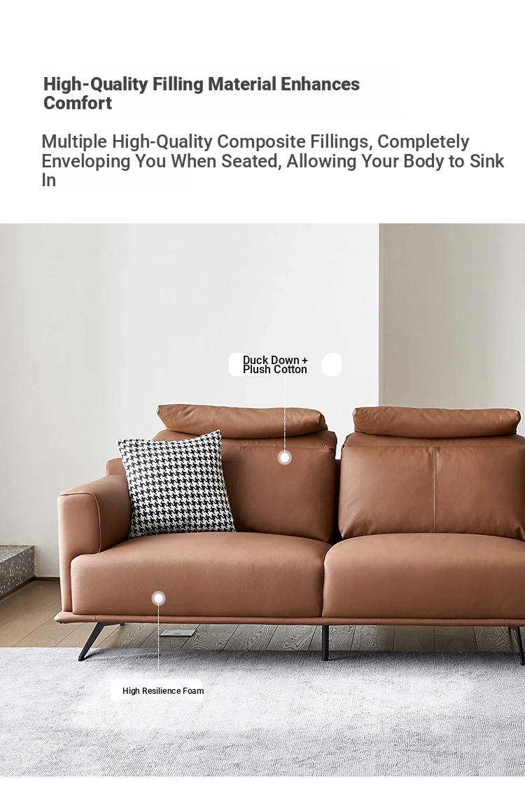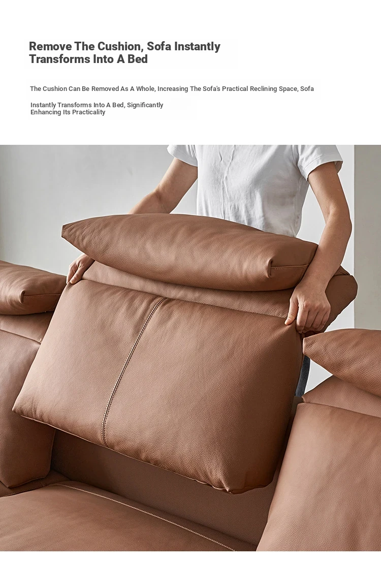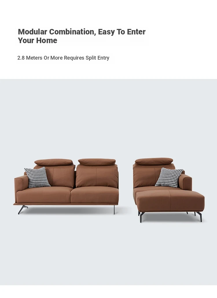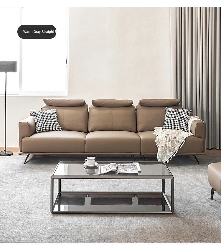 Italian Minimalist Genuine Leather Sofa - Top-Grain Cowhide Designer Lounge for Small Luxury Living Rooms - Elegant Chaise Lounge Corner Set