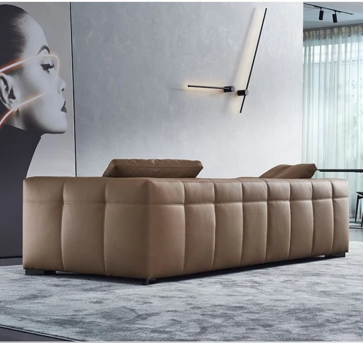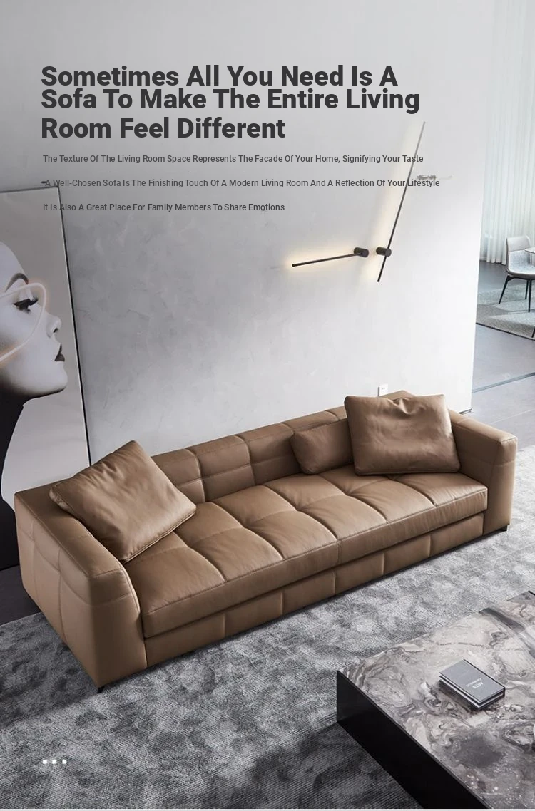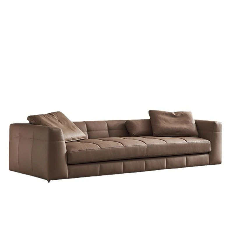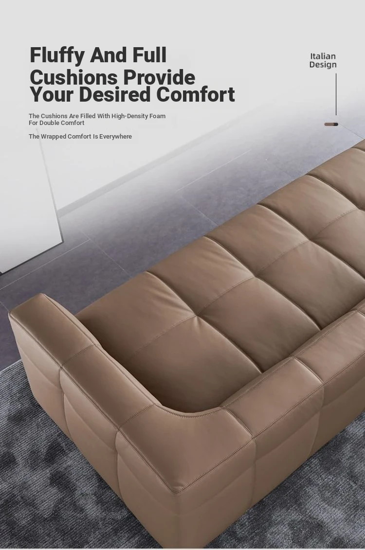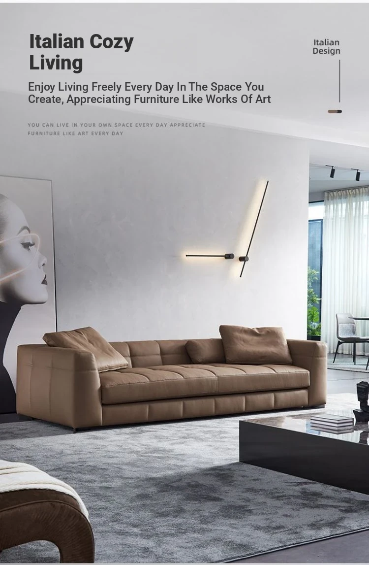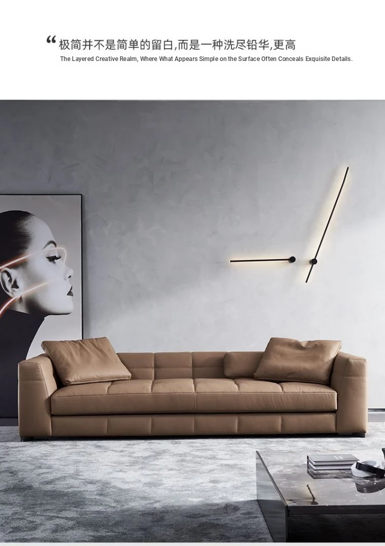 Italian Minimalist Leather Sofa - Modern Simple Living Room Set in Top Grain Cowhide, Stylish and Comfortable Design for Your Home