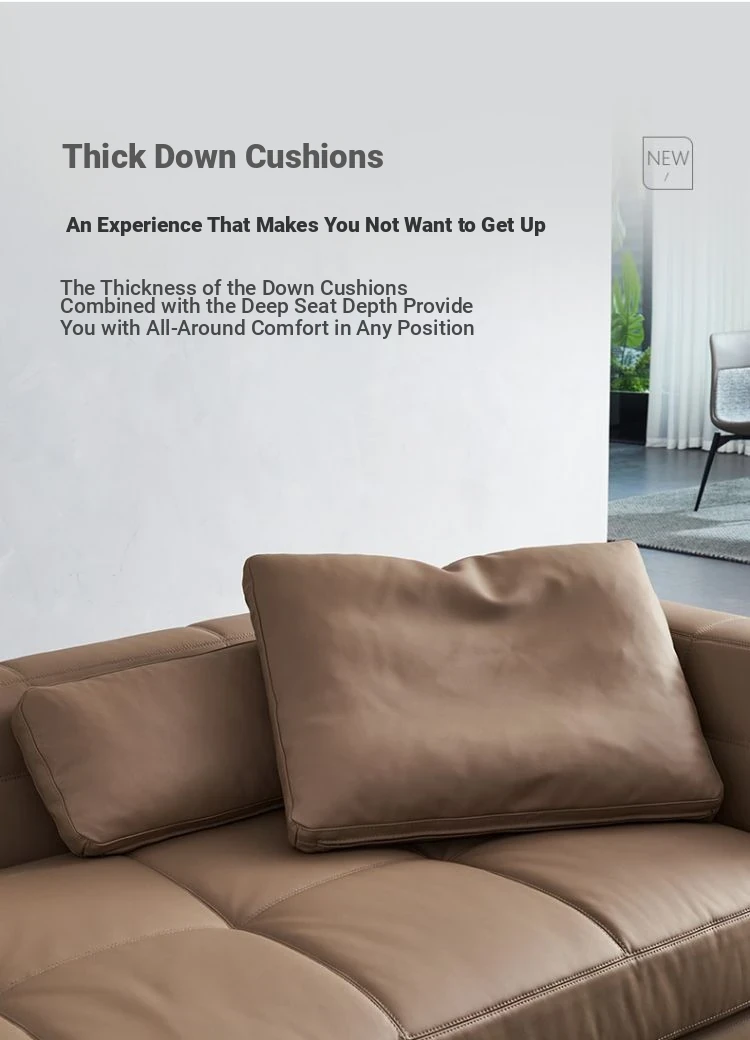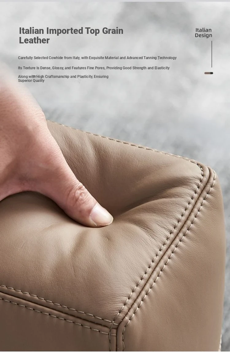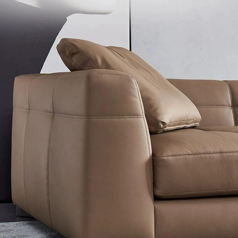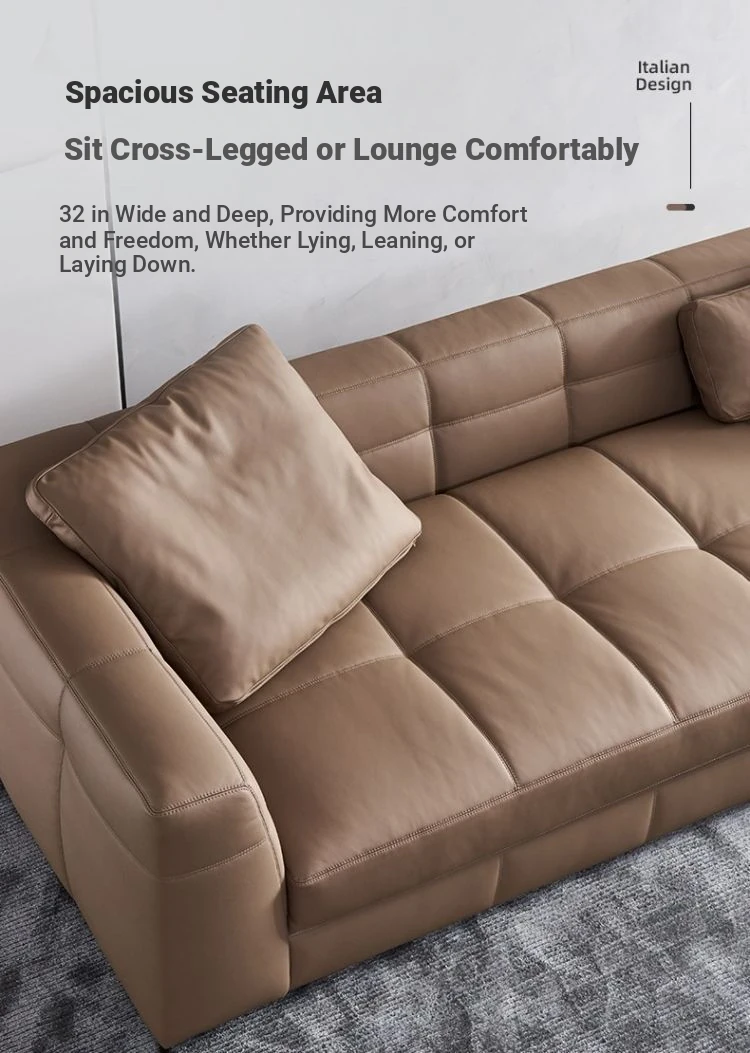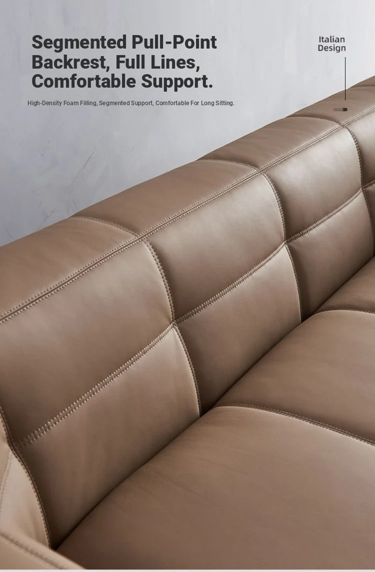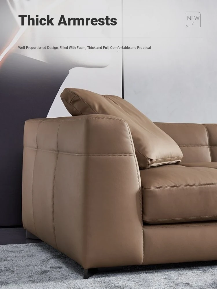 Italian Minimalist Leather Sofa - Modern Simple Living Room Set in Top Grain Cowhide, Stylish and Comfortable Design for Your Home