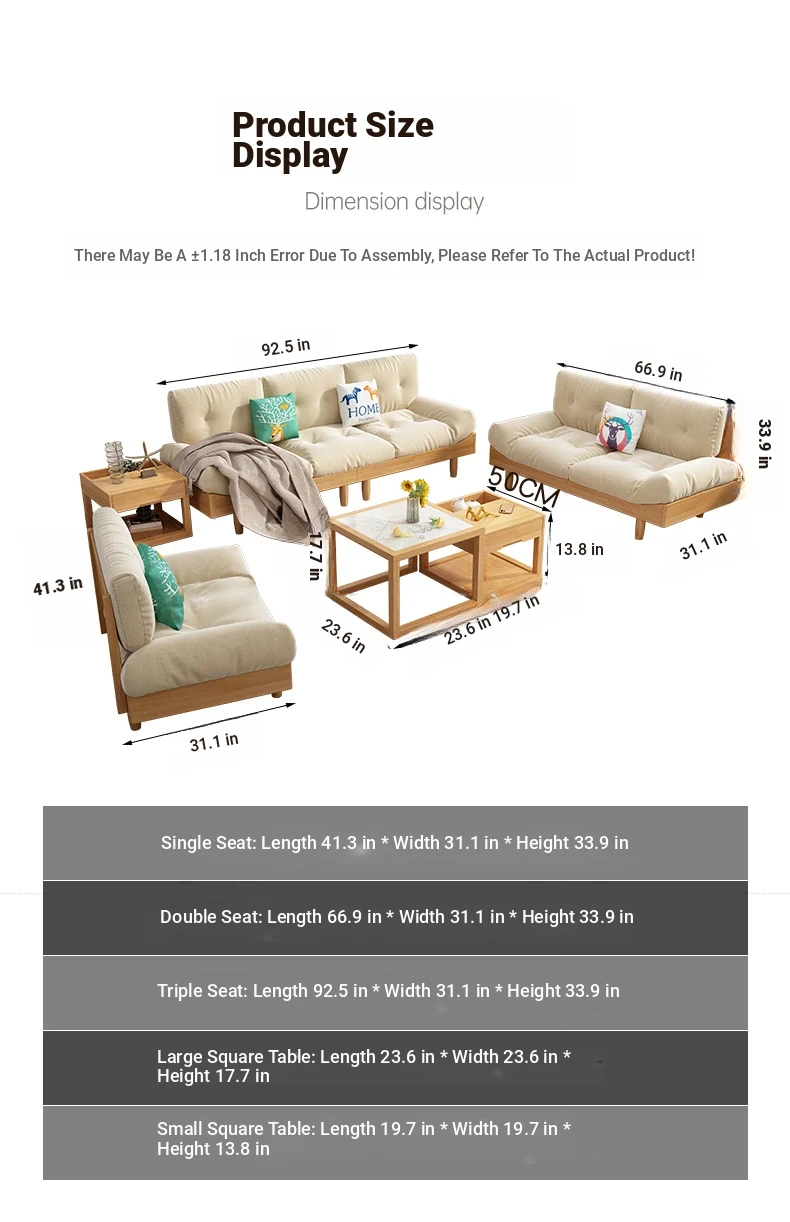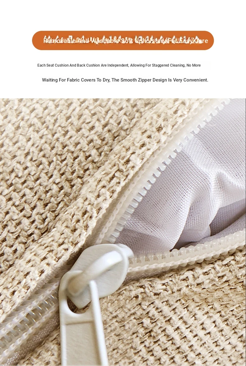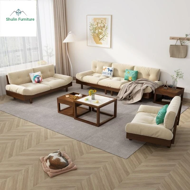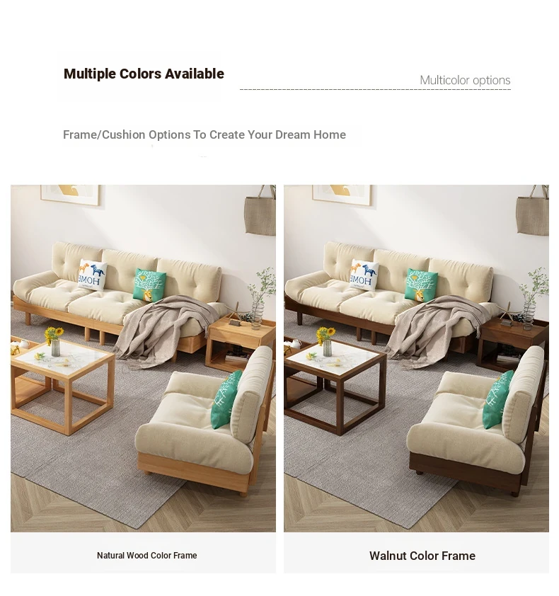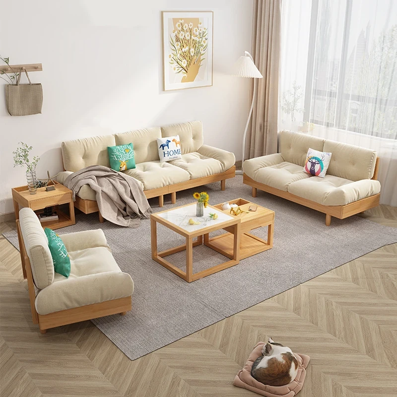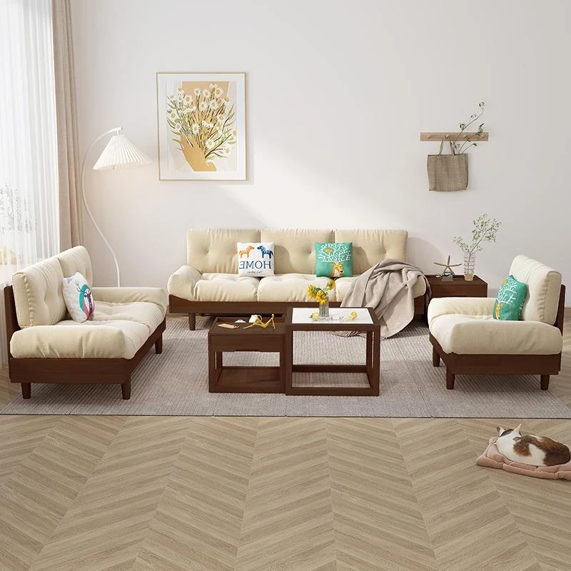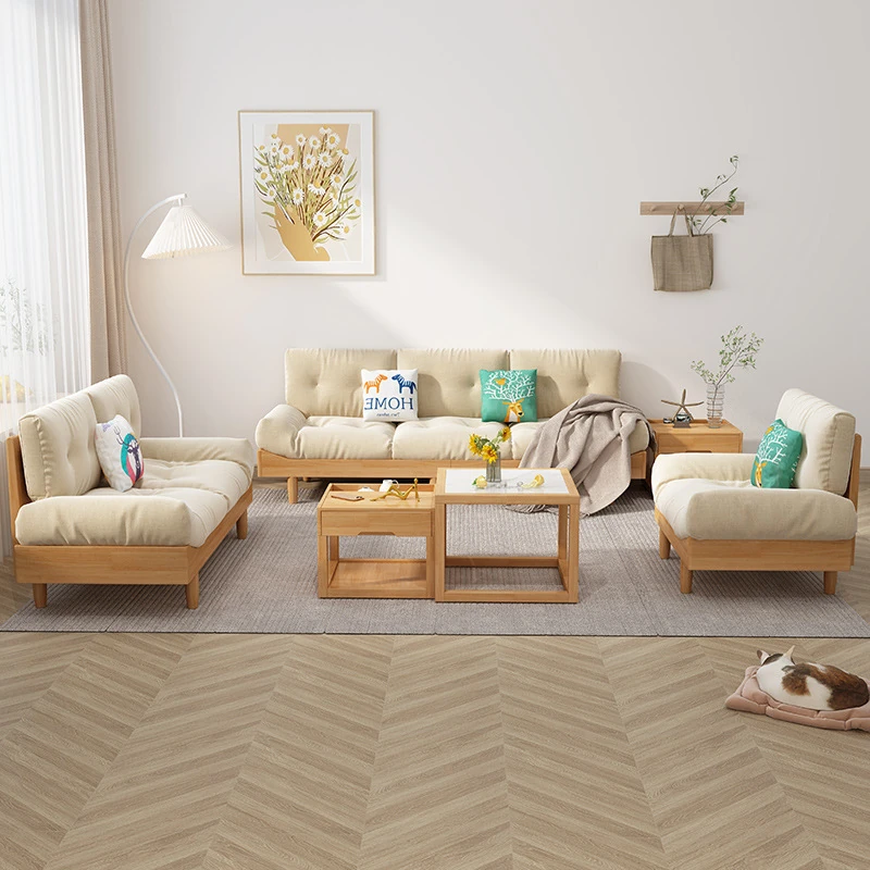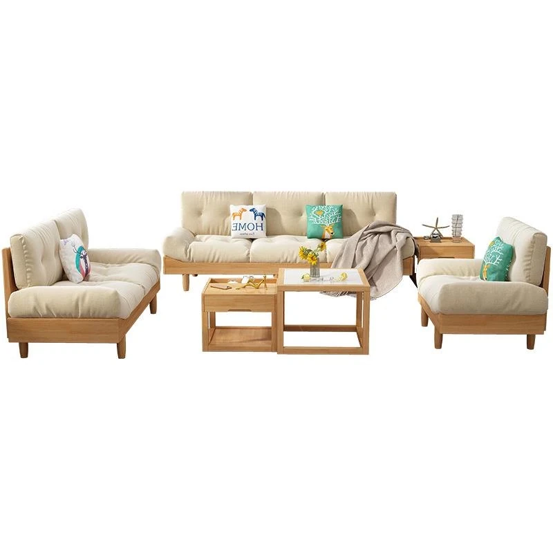 Japanese Cloud Sofa - Minimalist Modern Wabi-Sabi Style, Cream Wood Finish, Full Solid Wood Upholstered Couch for Small Living Spaces