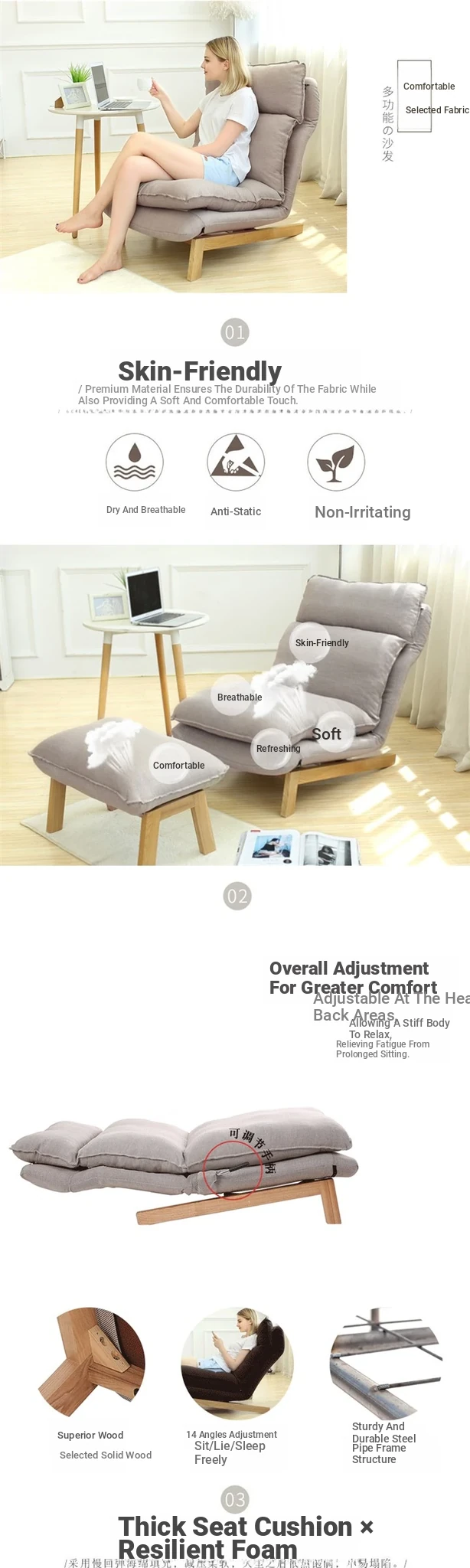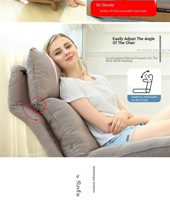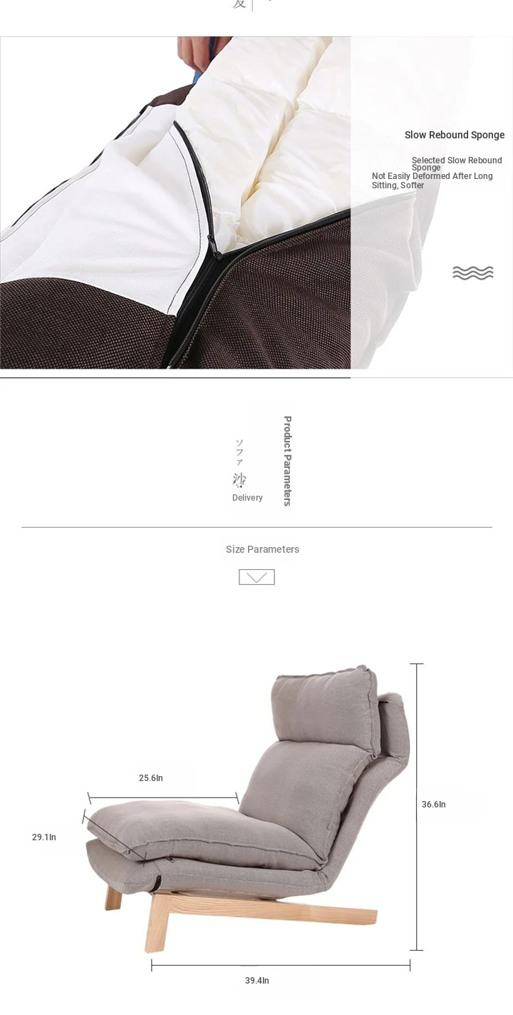 Japanese Style Lazy Sofa Chair for Living Room and Bedroom - Creative Adjustable Fabric Recliner with Ottoman for Ultimate Relaxation
