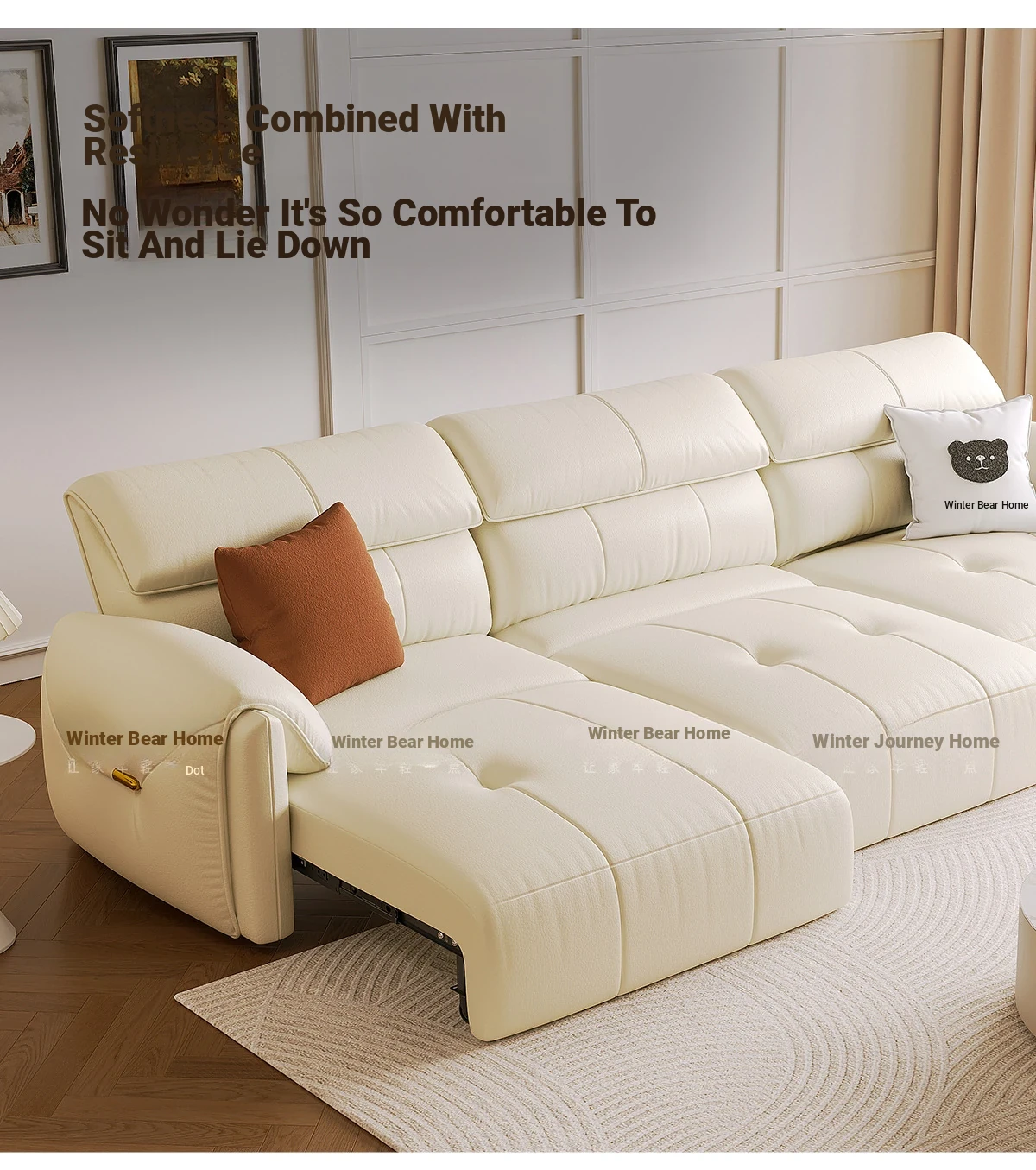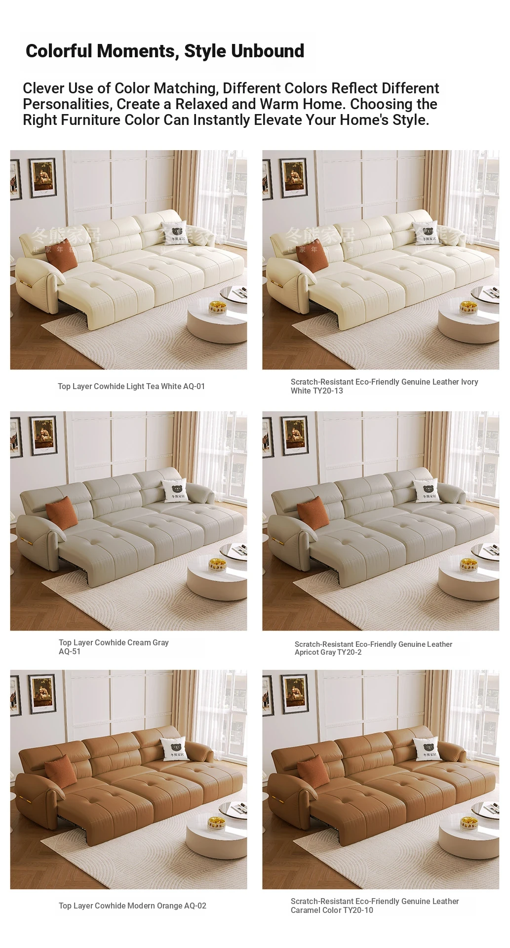 "Ji Elephant Ear Electric Multifunctional Genuine Leather Sofa - Space-Saving Convertible Sofa Bed for Small Apartments"