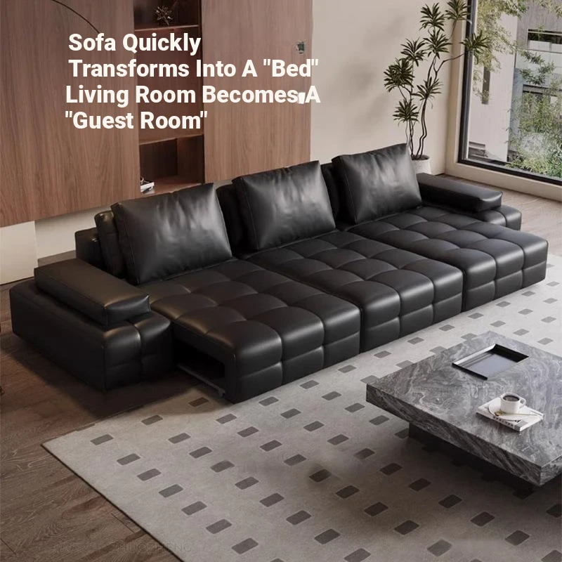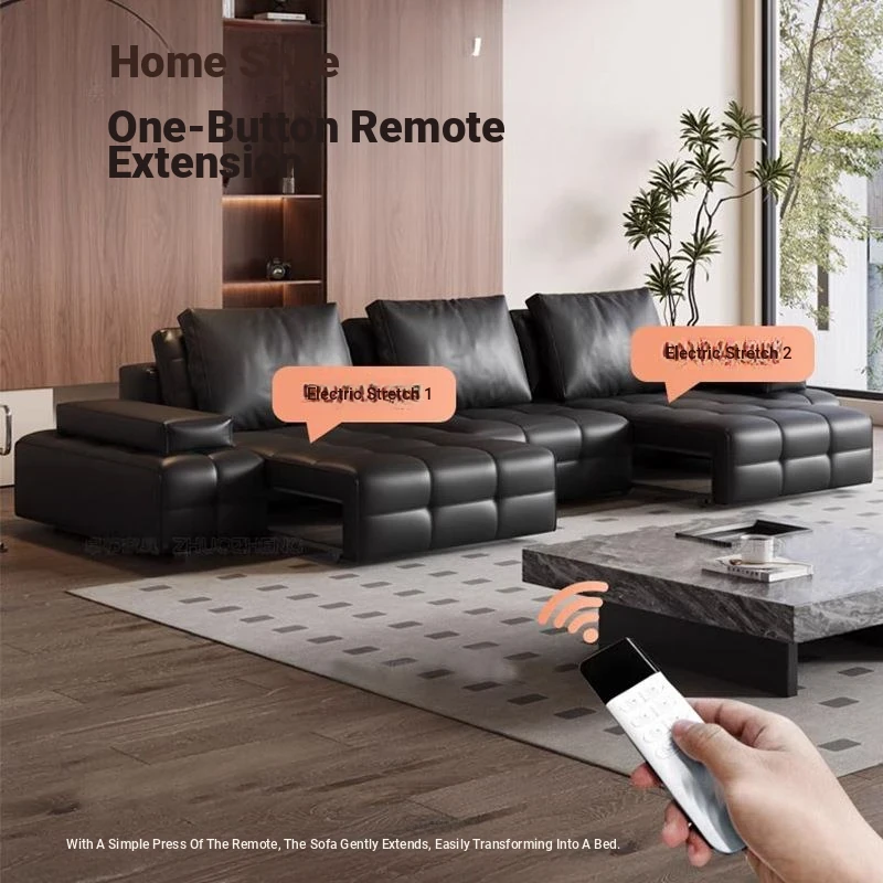 Lawrence Smart Electric Sofa Bed - Italian Minimalist Design, Multifunctional Stretchable Real Leather Sofa for Living Room, Dual-Use with Direct Layout, Perfect for Comfort and Style