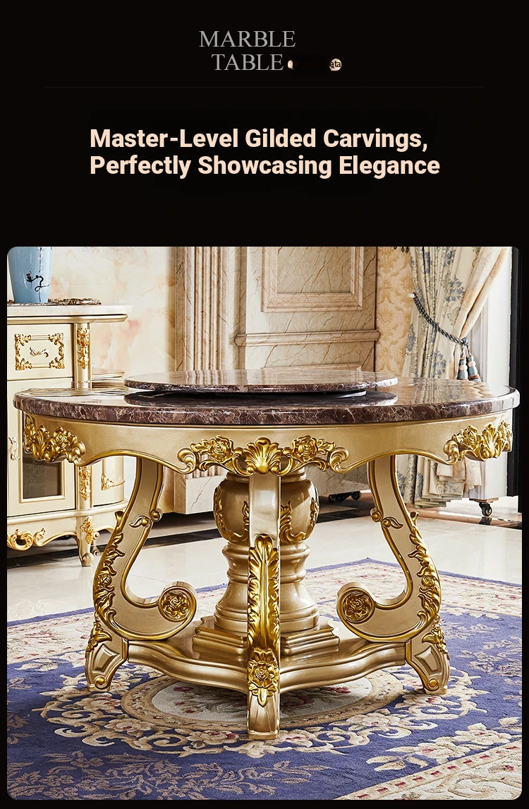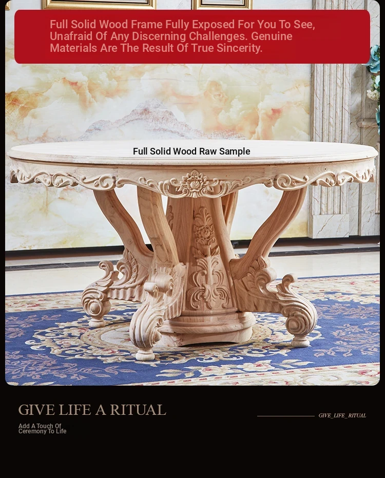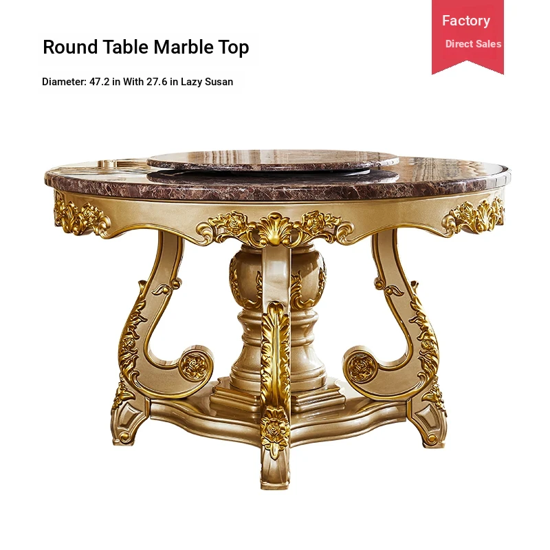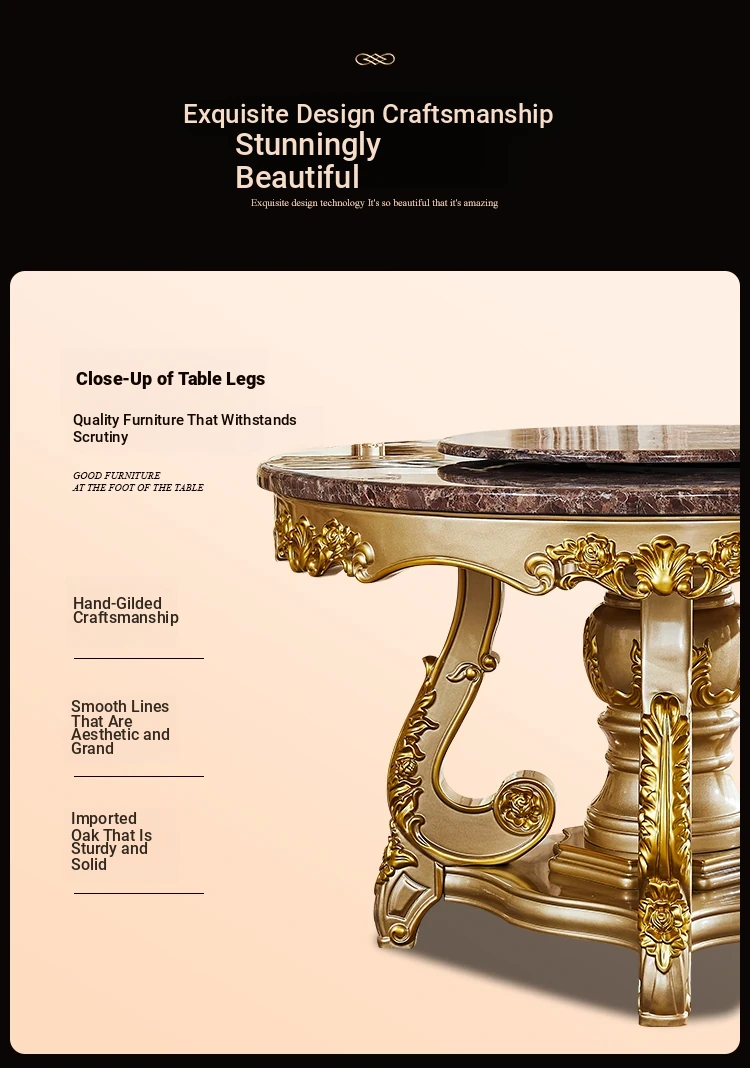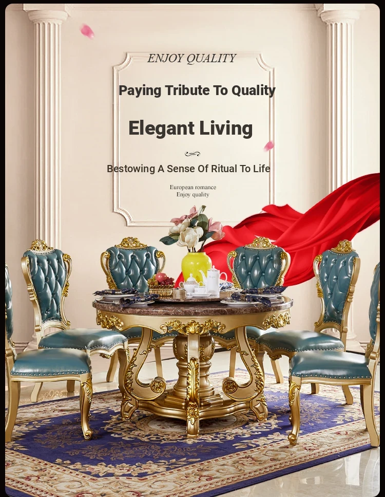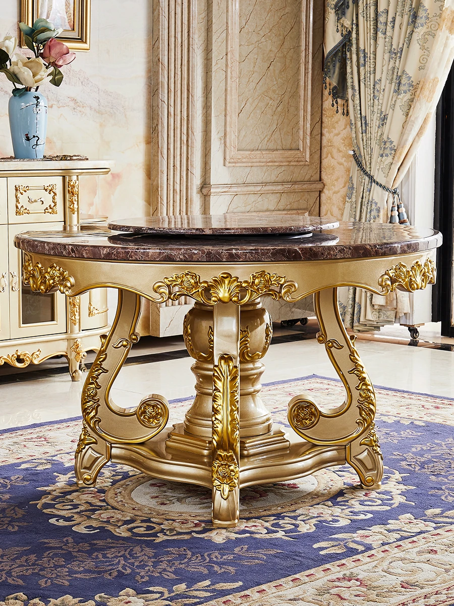Luxurious Champagne-Colored Round Marble Dining Table Set with Solid Oak Wood - Elegant European Style for Your Home