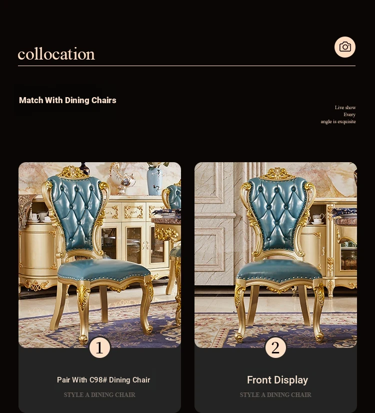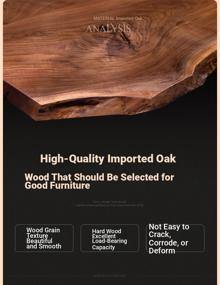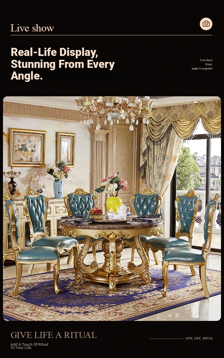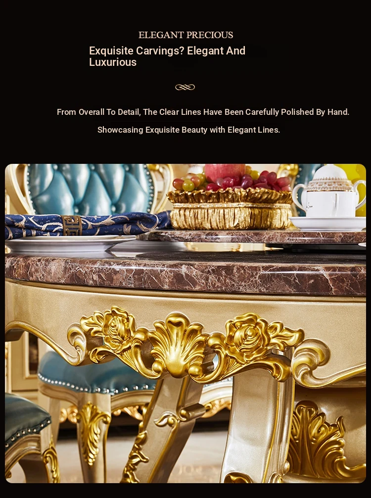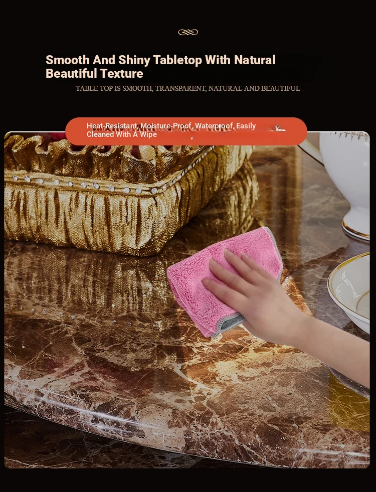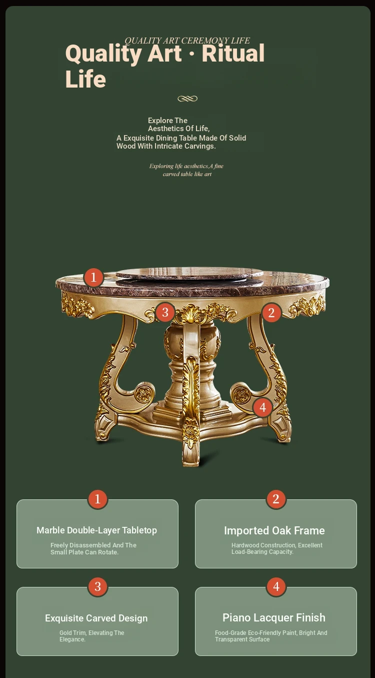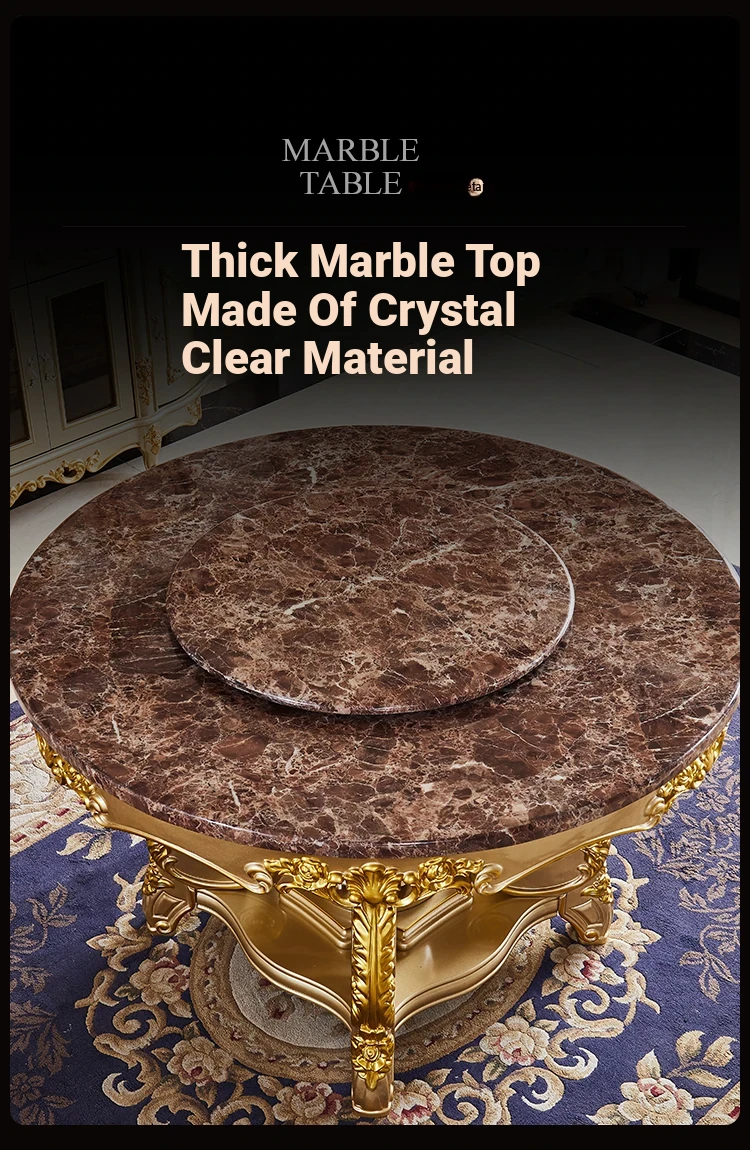 Luxurious Champagne-Colored Round Marble Dining Table Set with Solid Oak Wood - Elegant European Style for Your Home