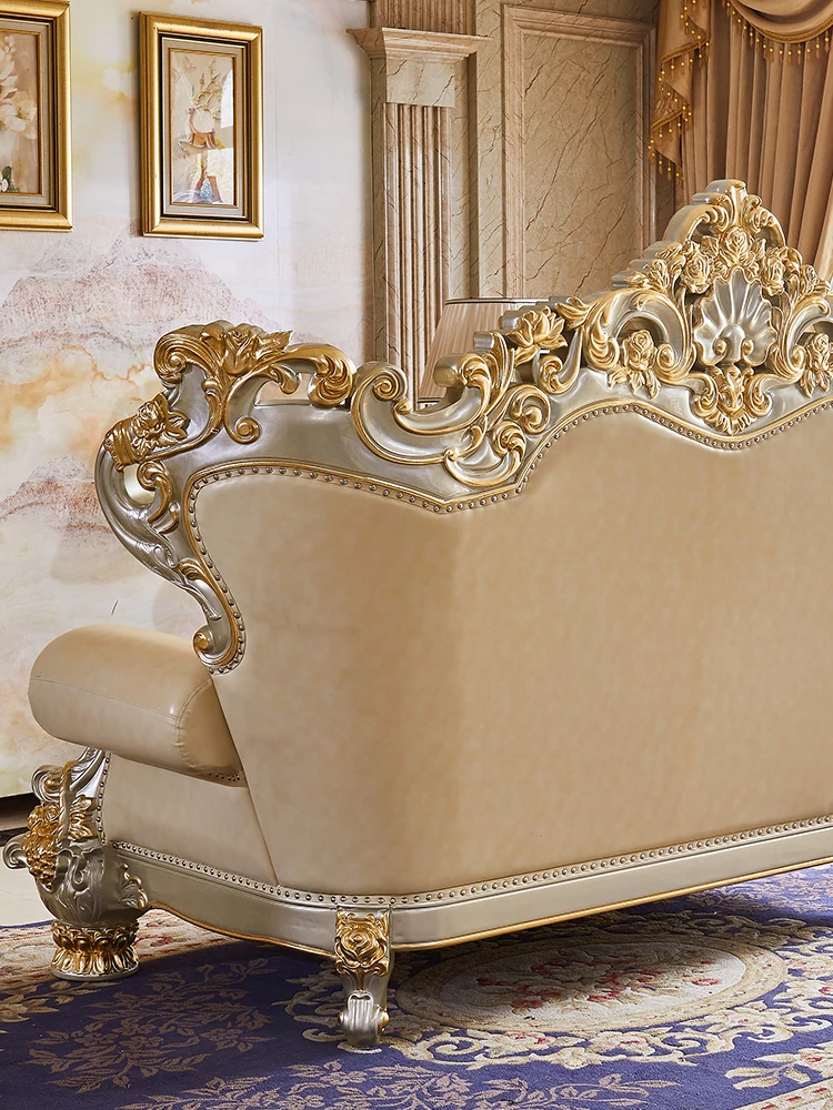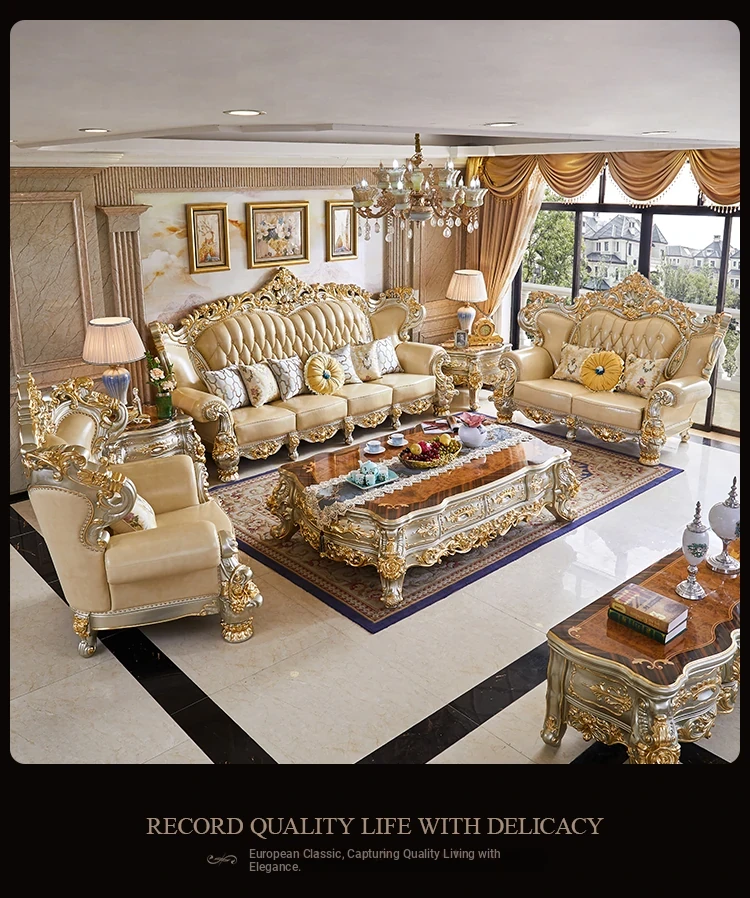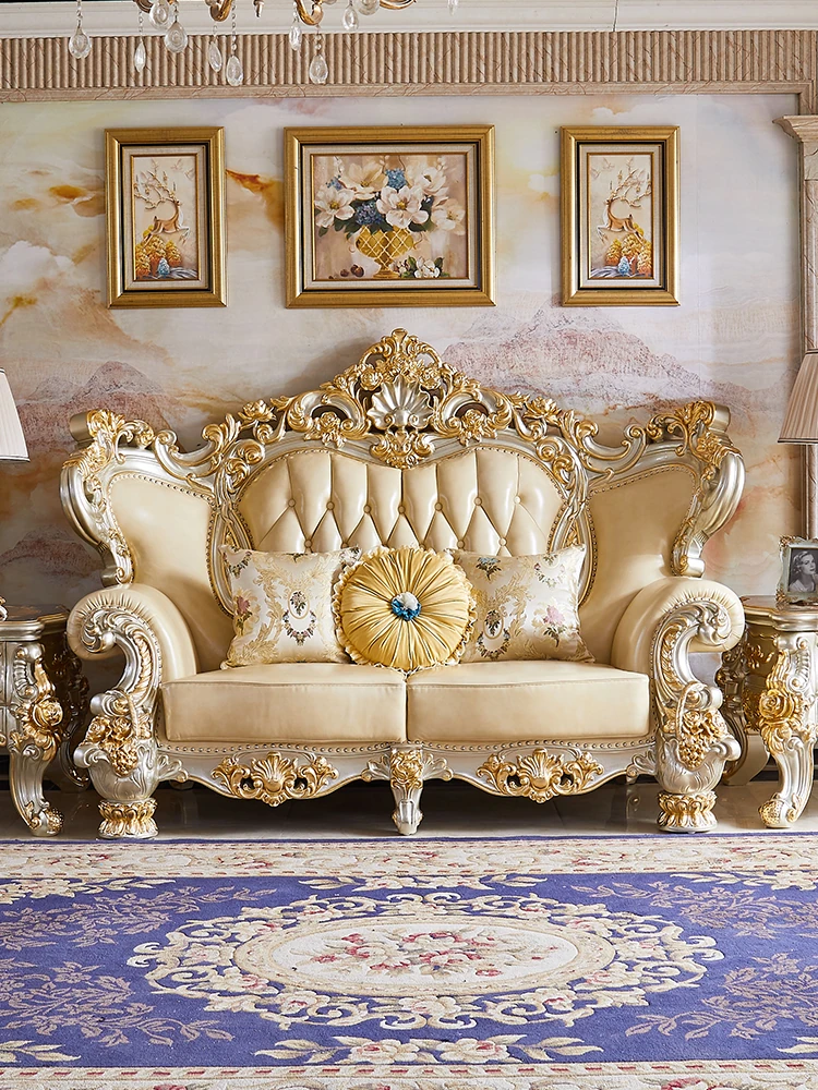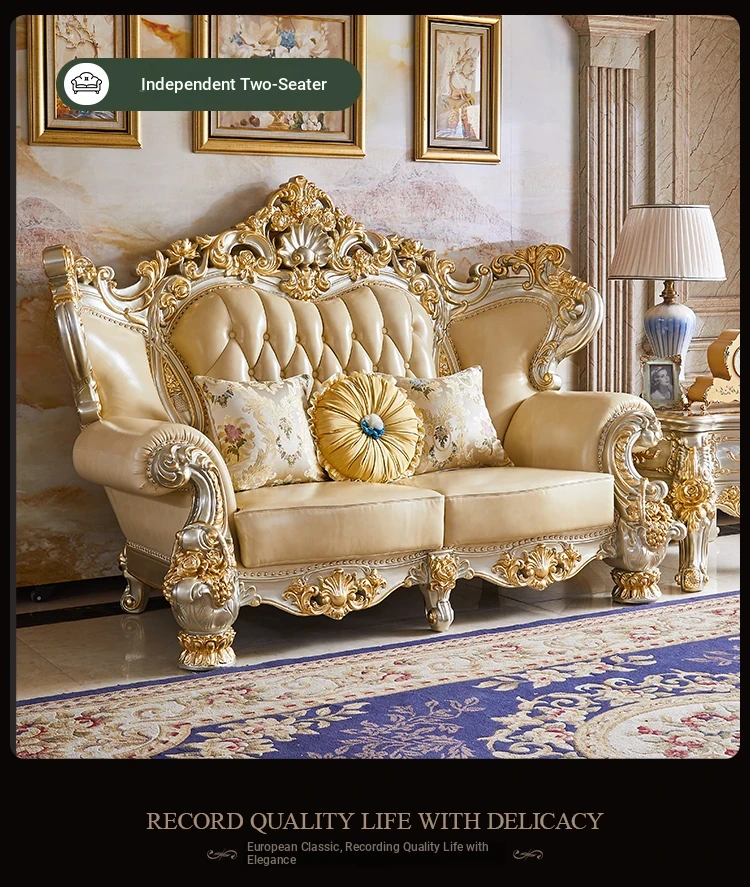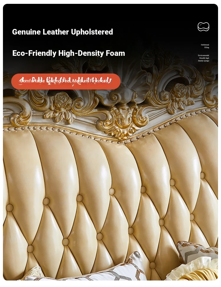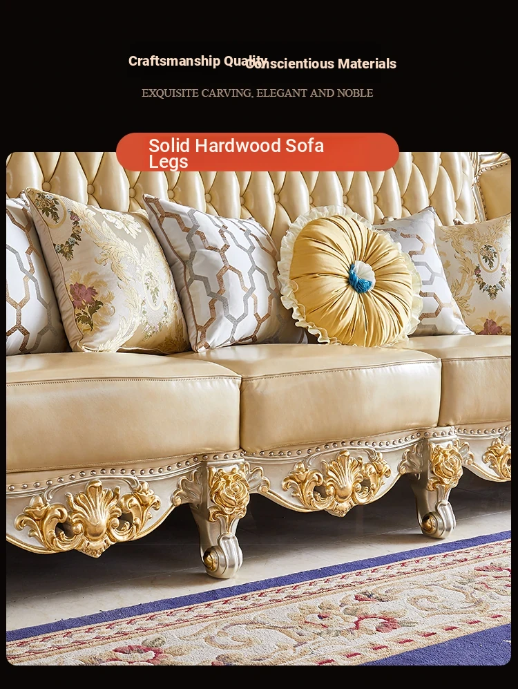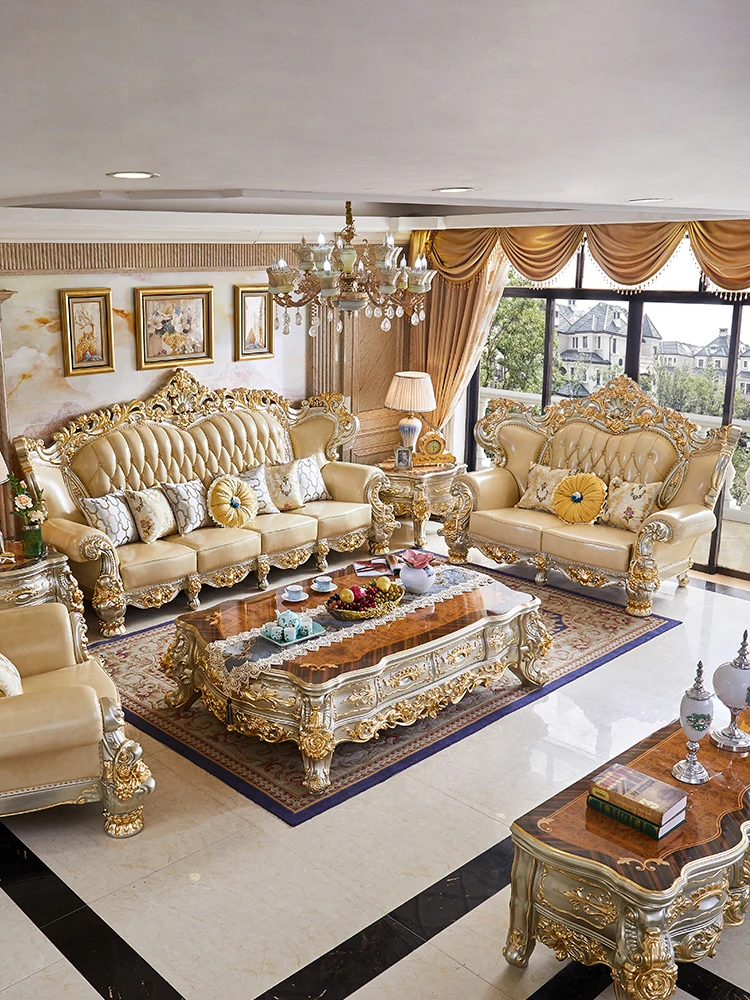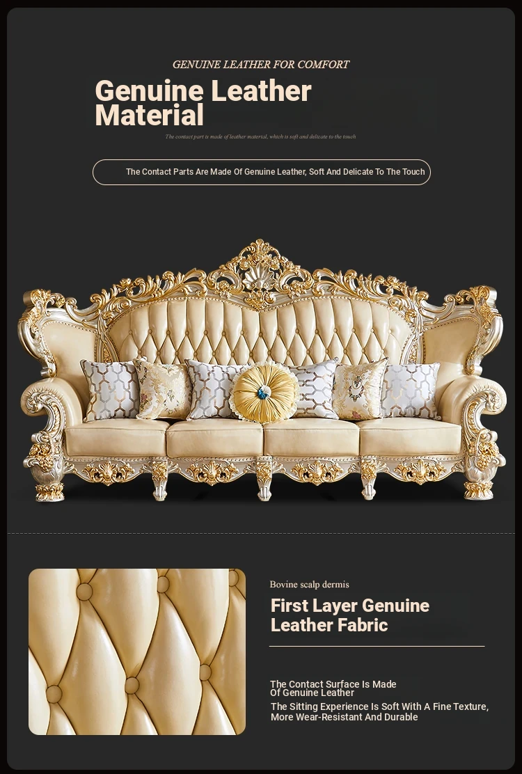 Luxurious European Genuine Leather Sofa Set - 124 Combination, Made with Top-Grade Cowhide, Perfect for Spacious Villas and High-End Living Rooms, Crafted with Solid Wood for Ultimate Comfort and Elegance.