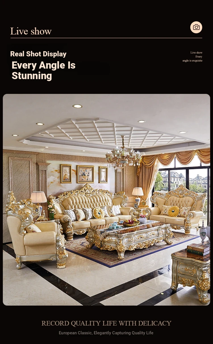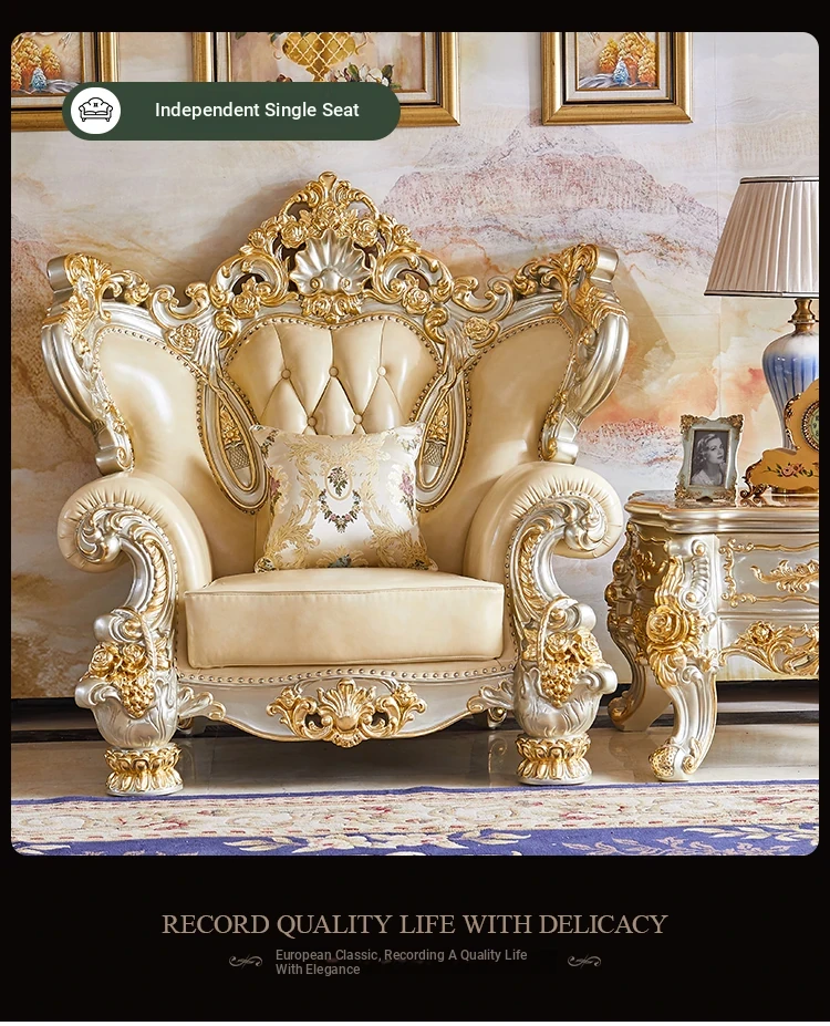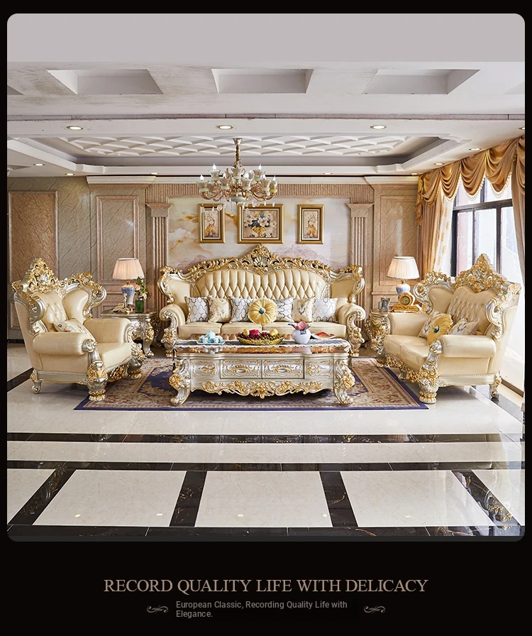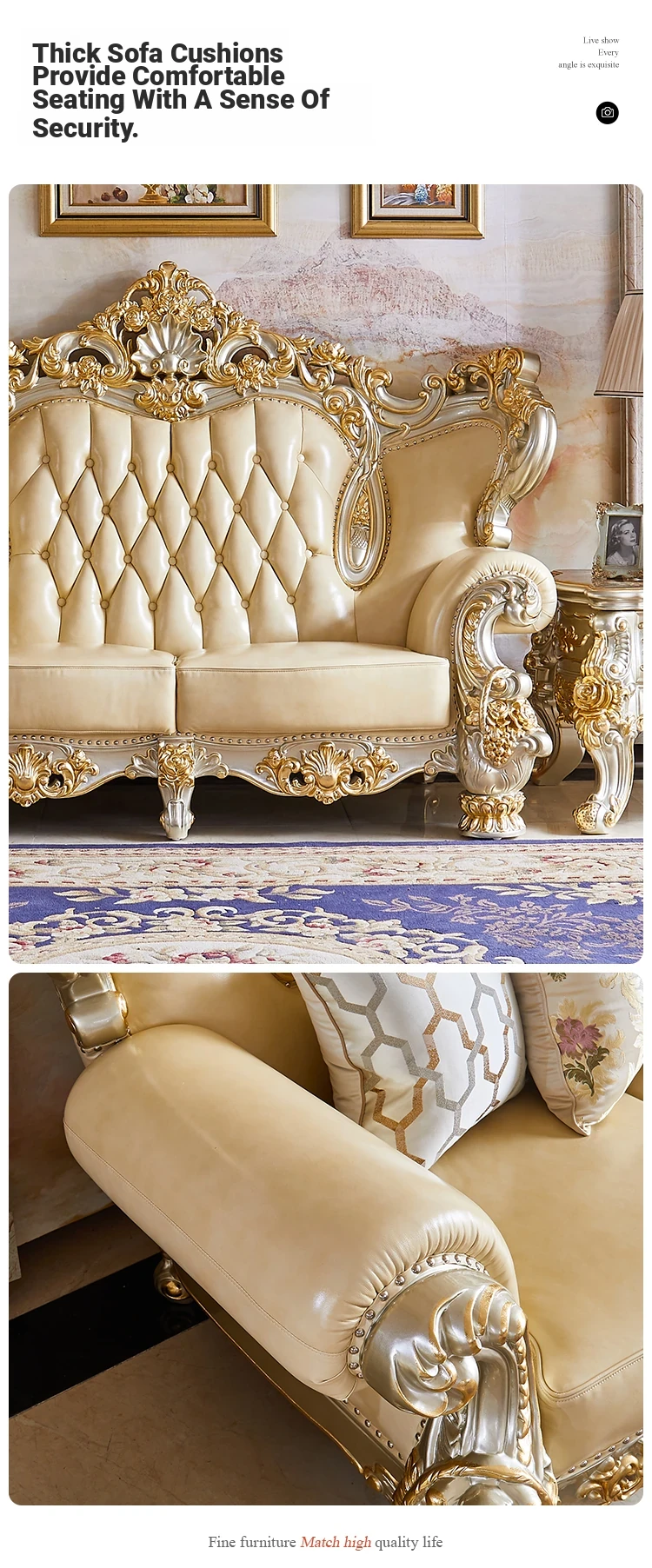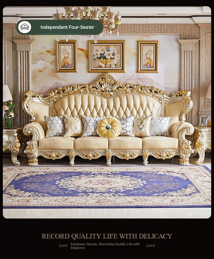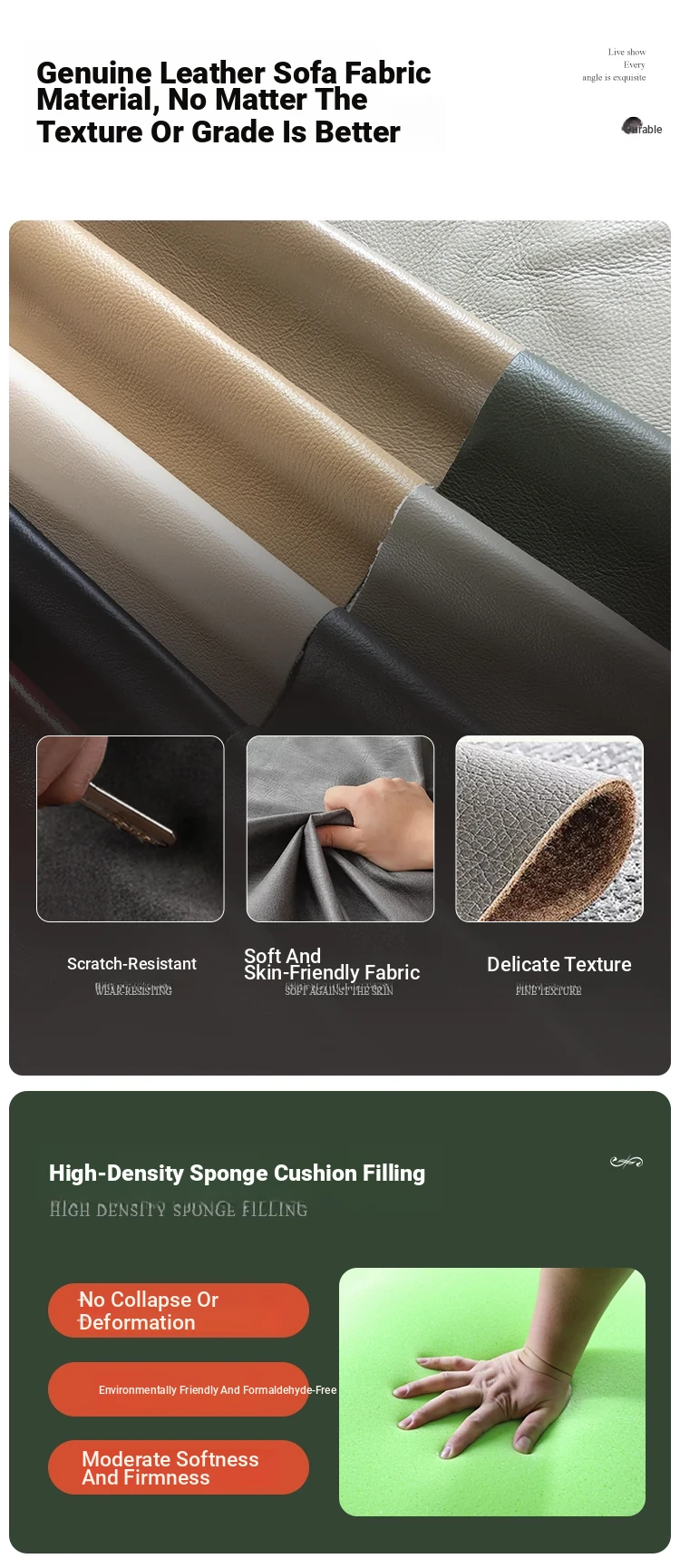 Luxurious European Genuine Leather Sofa Set - 124 Combination, Made with Top-Grade Cowhide, Perfect for Spacious Villas and High-End Living Rooms, Crafted with Solid Wood for Ultimate Comfort and Elegance.