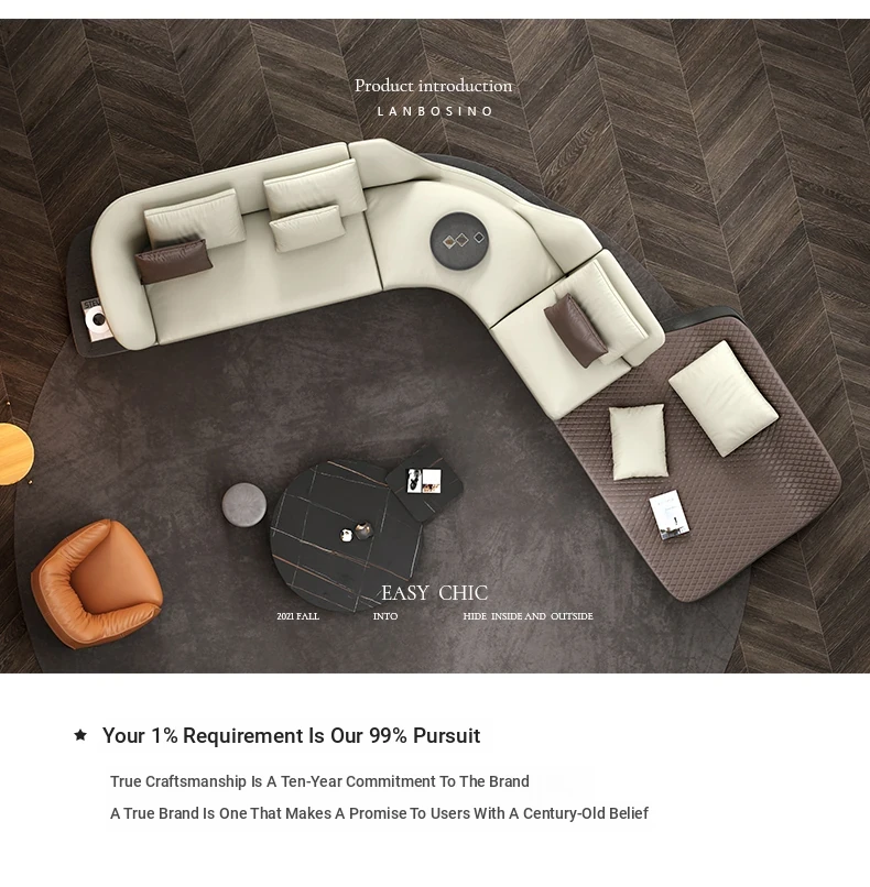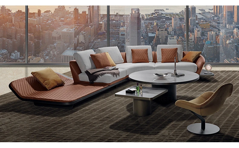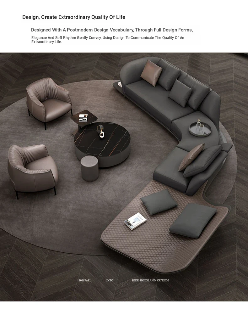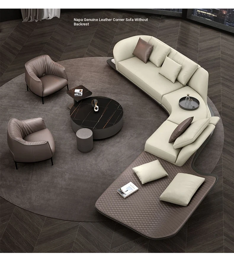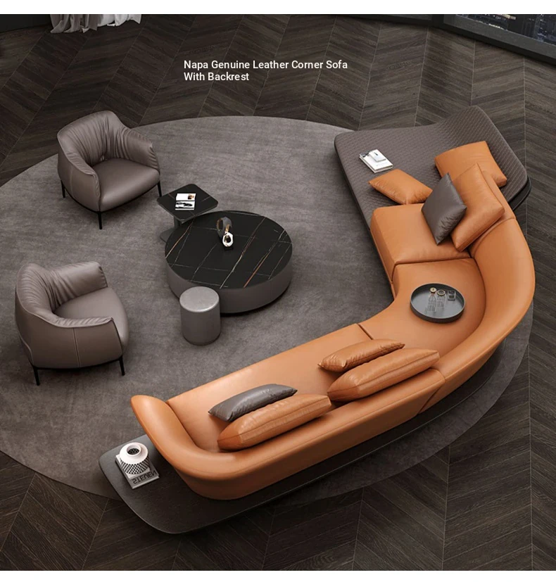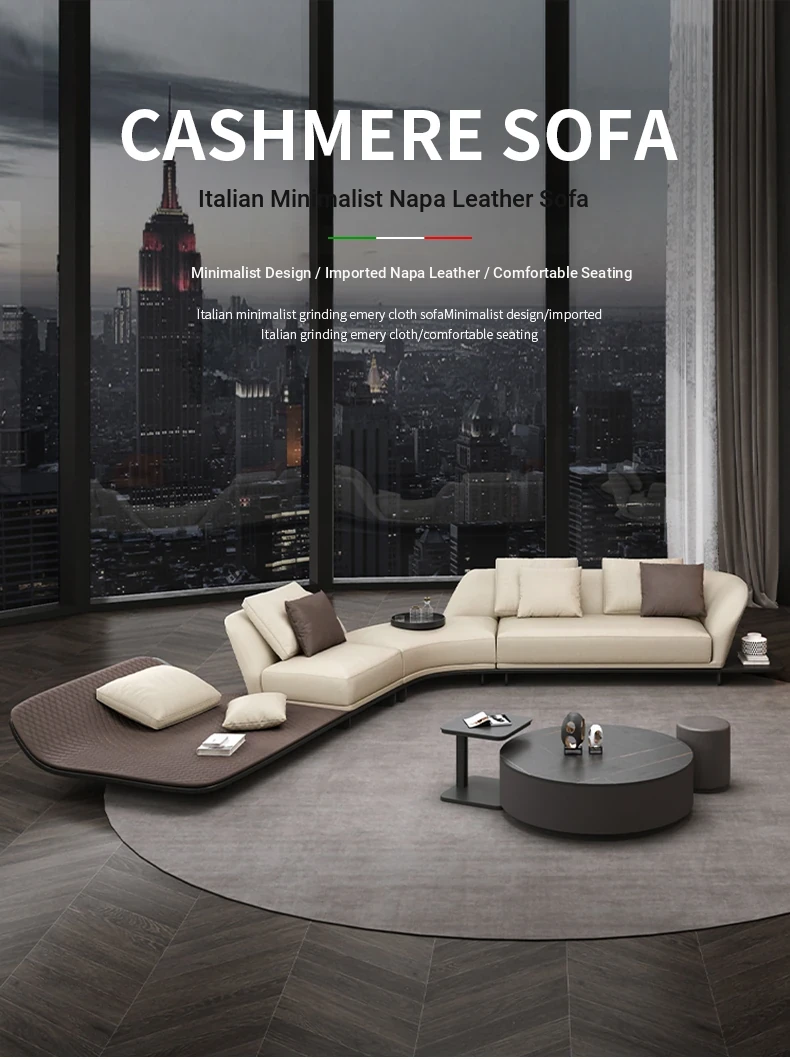 Luxury Italian Leather Sofa - Minimalist Curved Corner Design, Inspired by Dilireba, Unique Ferrari Style, Perfect for Elevating Your Living Space