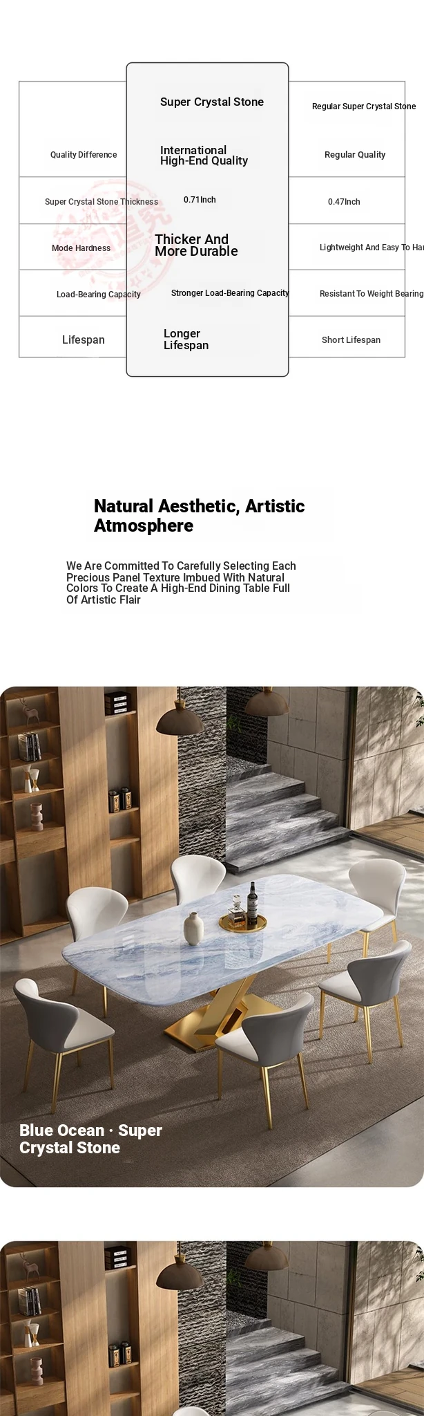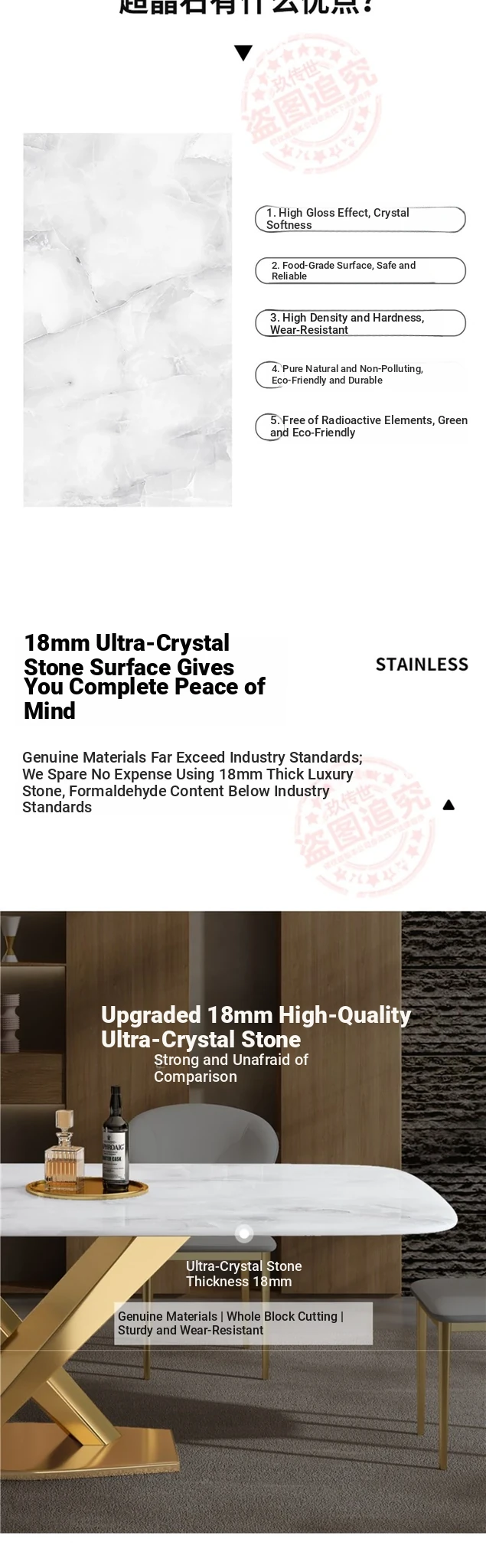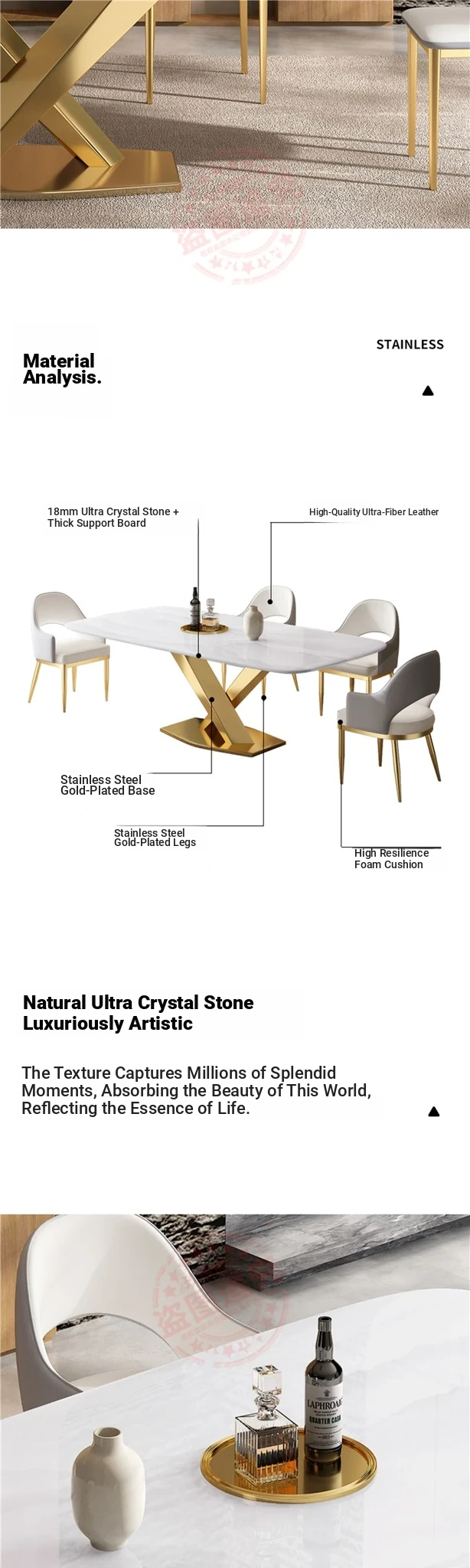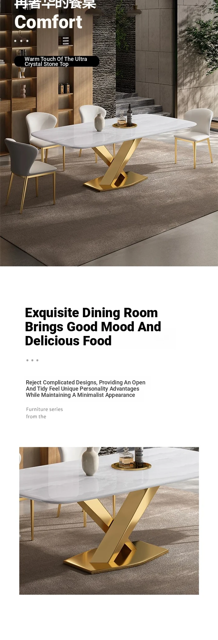 Luxury Rectangular Dining Table for Small Spaces - Ultra-Crystal Stone with Stainless Steel Frame, Ideal for Modern Homes and Dining Rooms, Perfect for Elegant Mealtime Gatherings