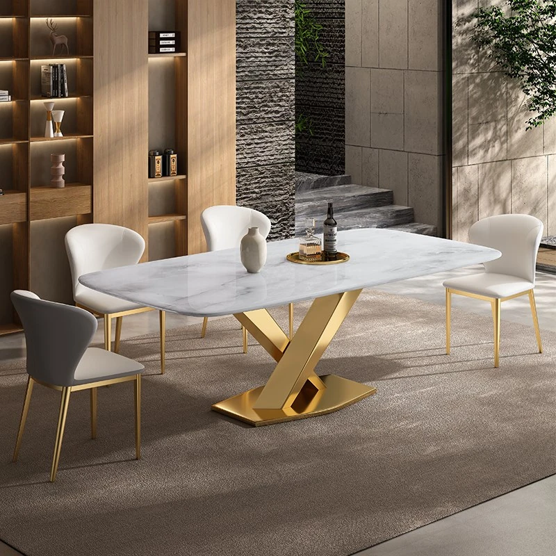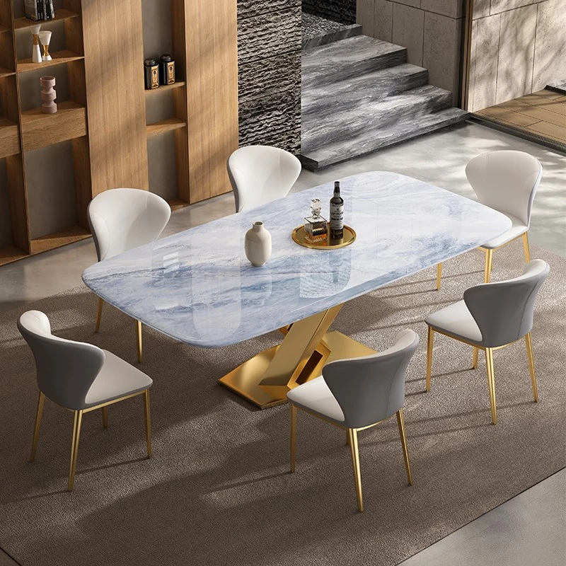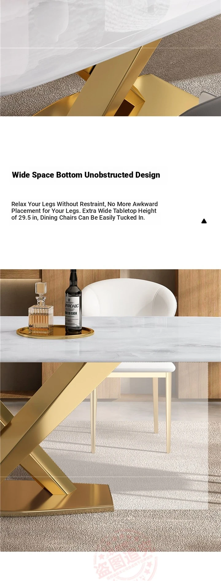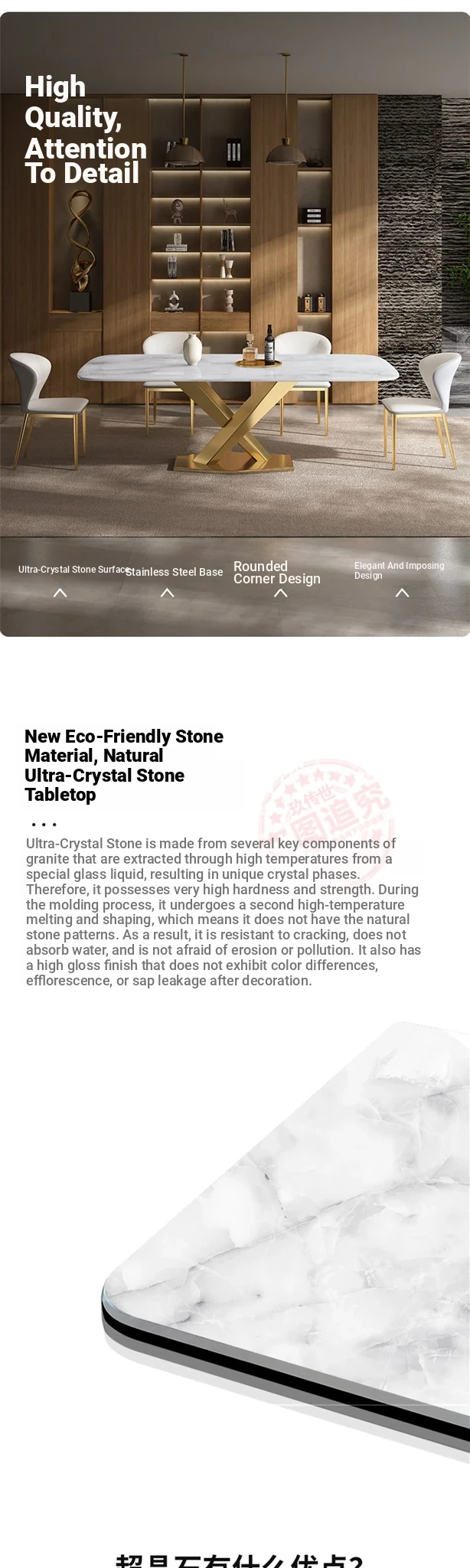 Luxury Rectangular Dining Table for Small Spaces - Ultra-Crystal Stone with Stainless Steel Frame, Ideal for Modern Homes and Dining Rooms, Perfect for Elegant Mealtime Gatherings