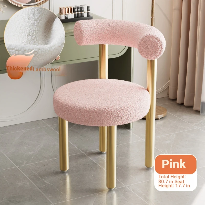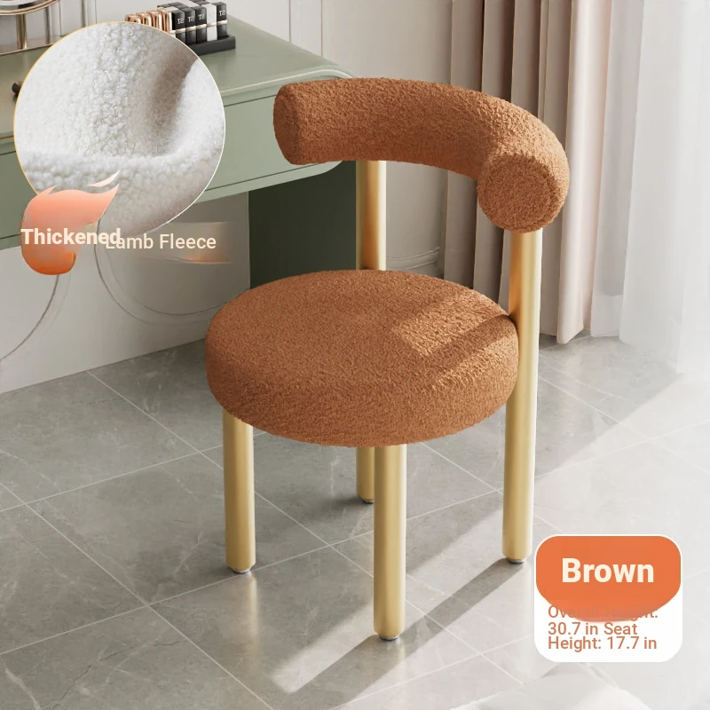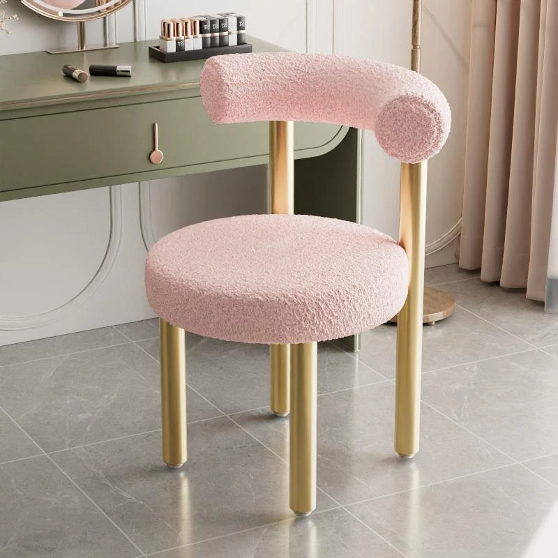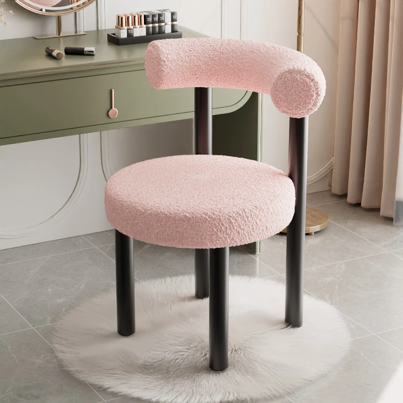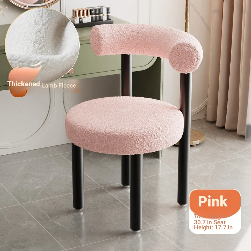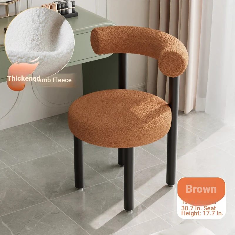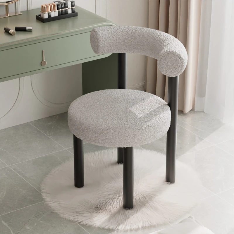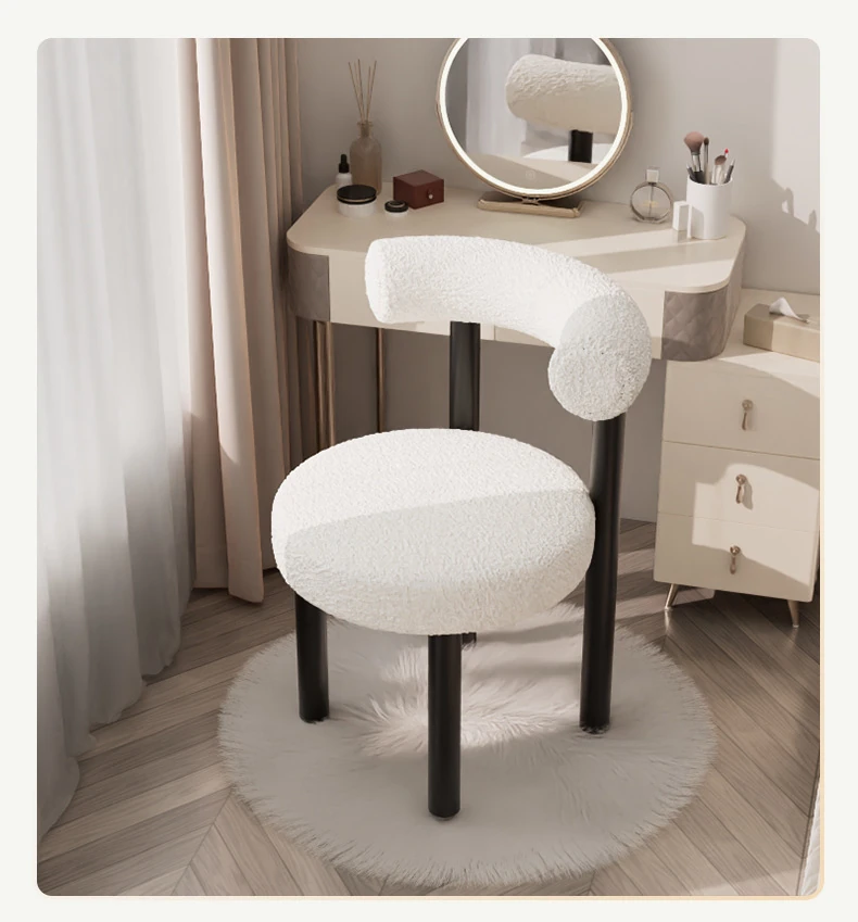 Minimalist Lambswool Plush Leisure Chair - Creamy Aesthetic Backrest, Curved Tube Design, Perfect for Balconies, Bedrooms, and Makeup Vanities - Trendy Home Makeup Chair
