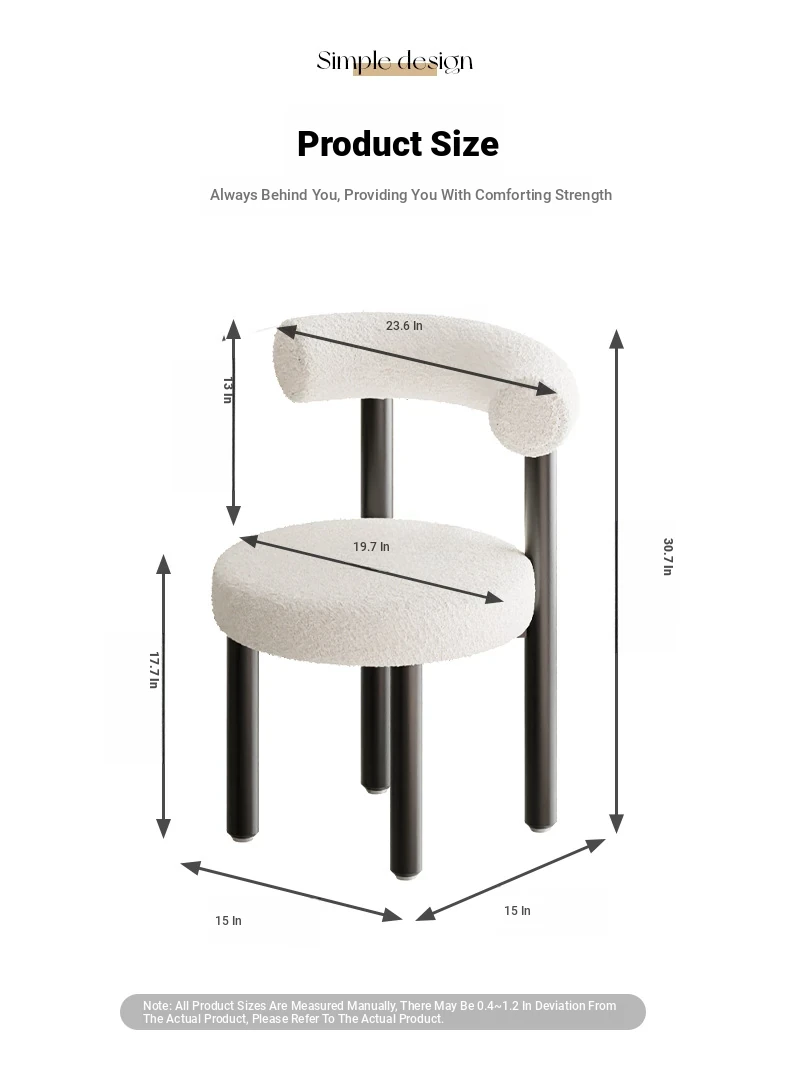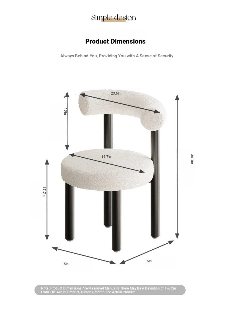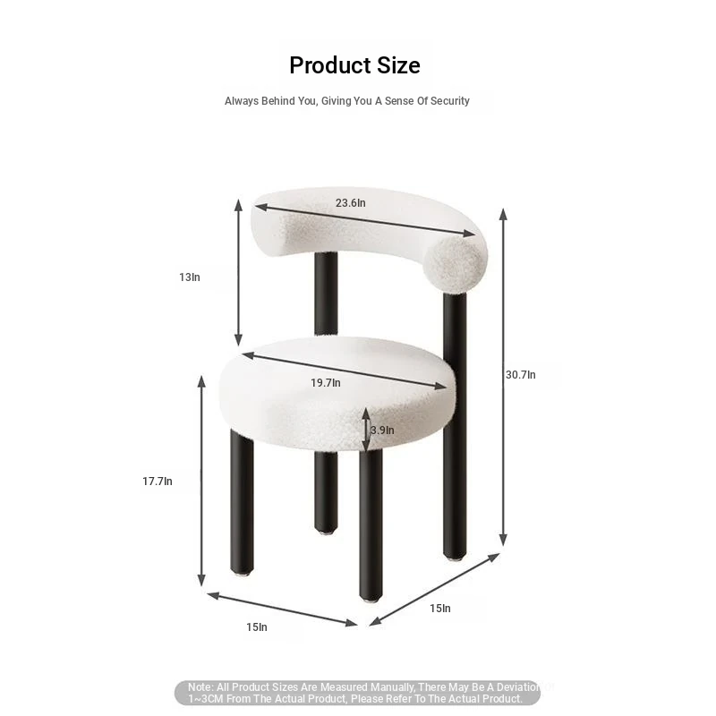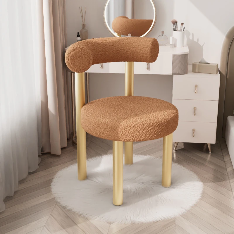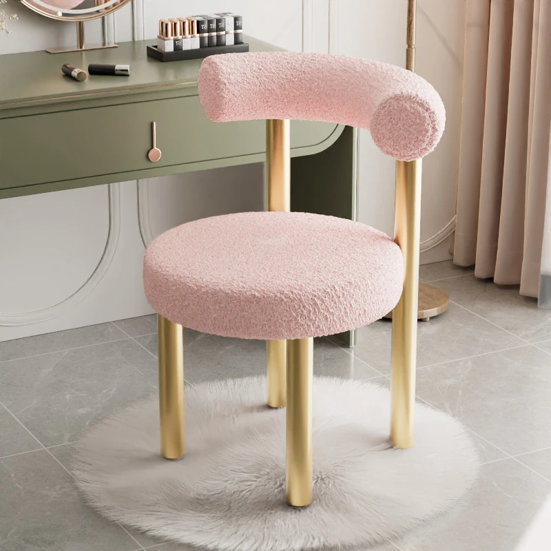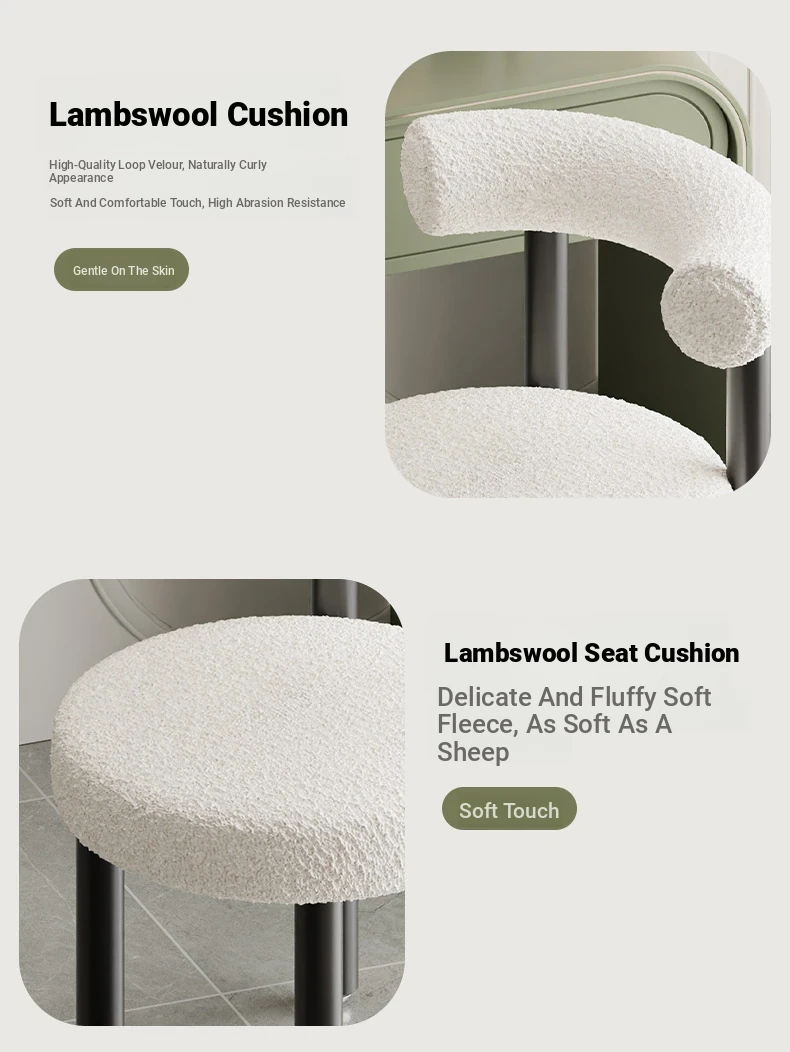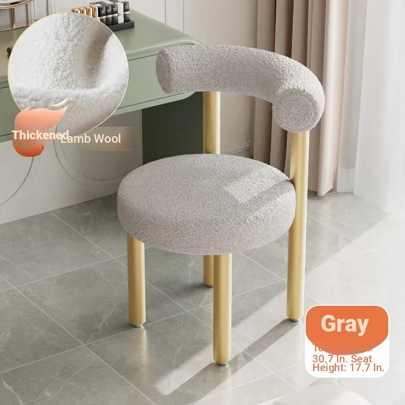 Minimalist Lambswool Plush Leisure Chair - Creamy Aesthetic Backrest, Curved Tube Design, Perfect for Balconies, Bedrooms, and Makeup Vanities - Trendy Home Makeup Chair